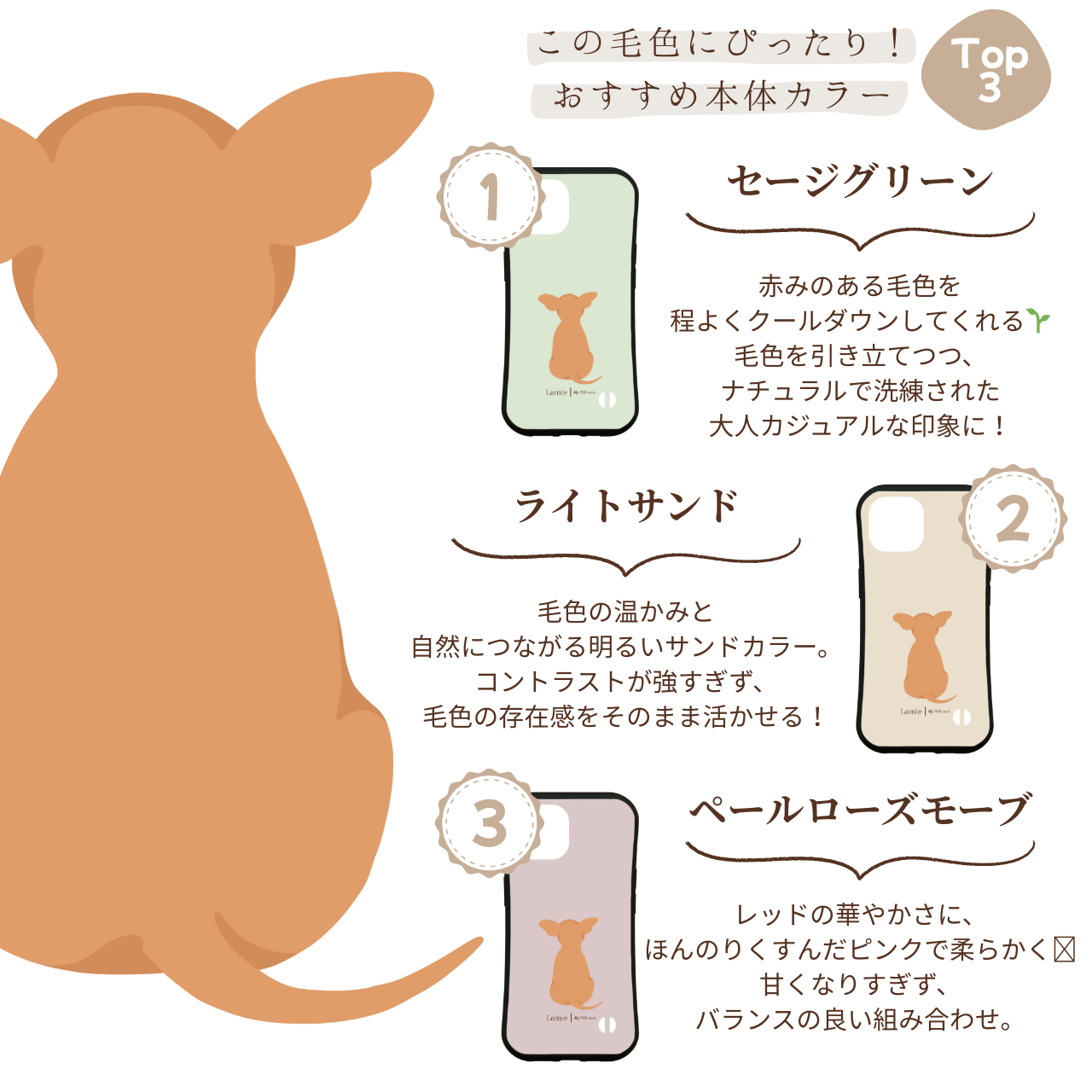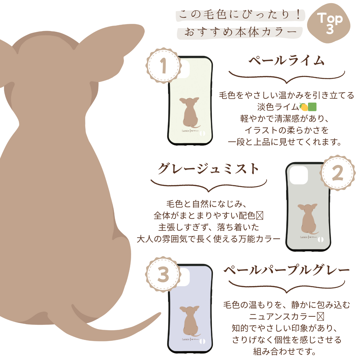 【チワワの後ろ姿を描いた、ナチュラルデザインのスマホケース】