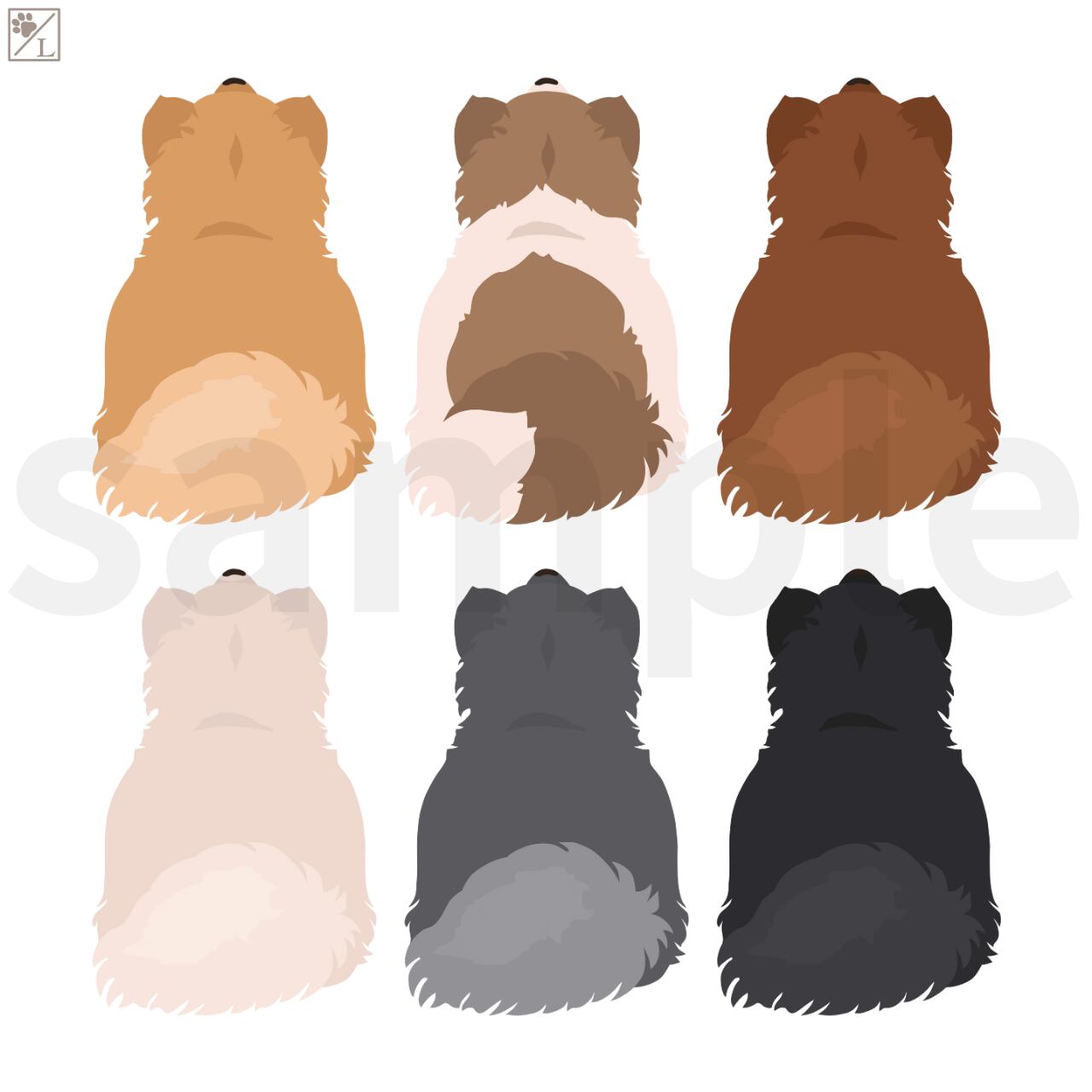 人気犬種「ポメラニアン」のうしろ姿をやさしいタッチでデザイン。