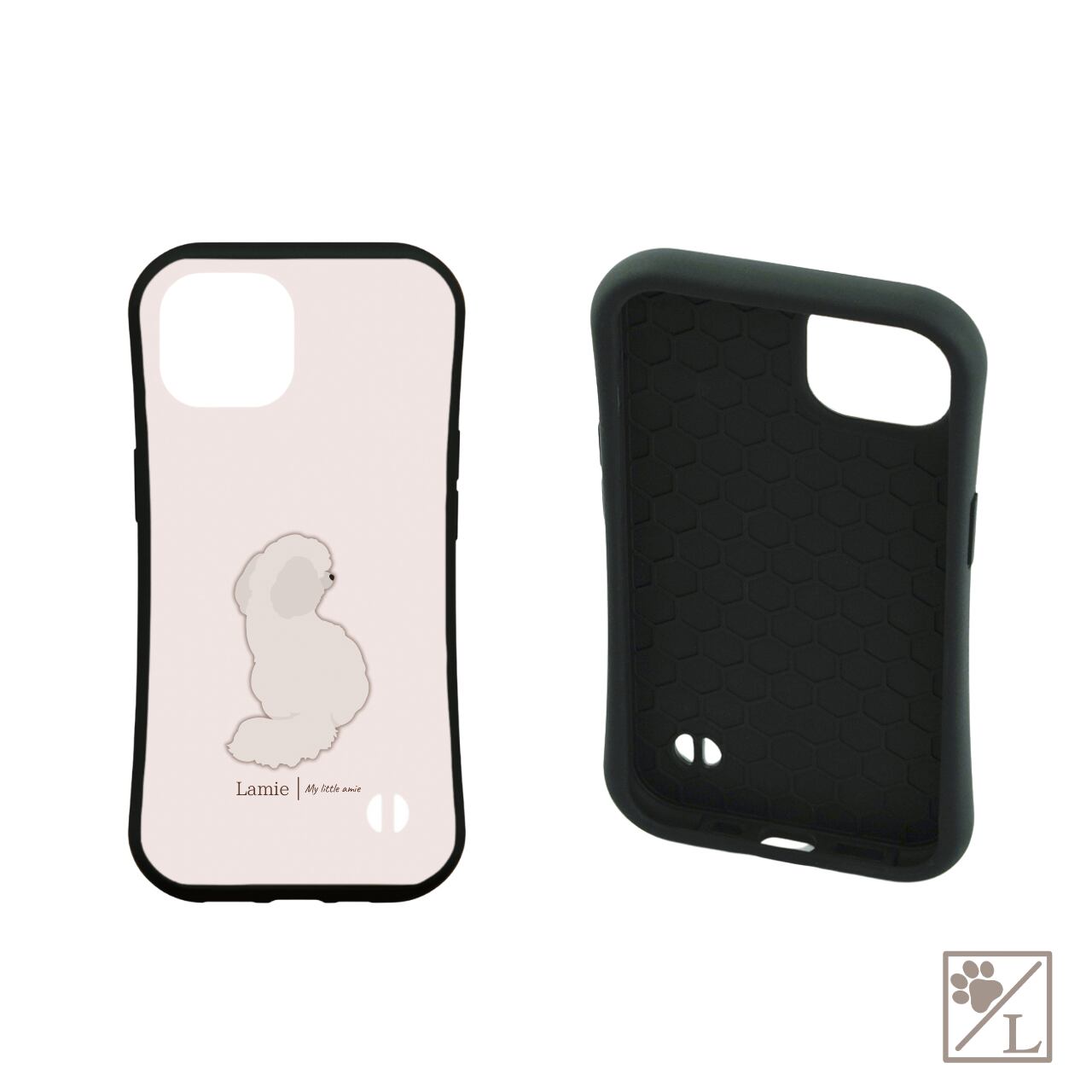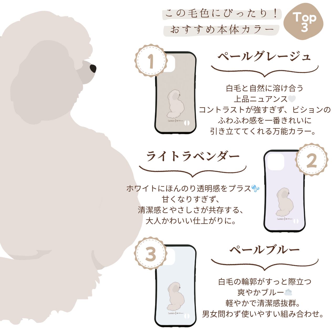 【ビションフリーゼの後ろ姿を描いた、ナチュラルデザインのスマホケース】