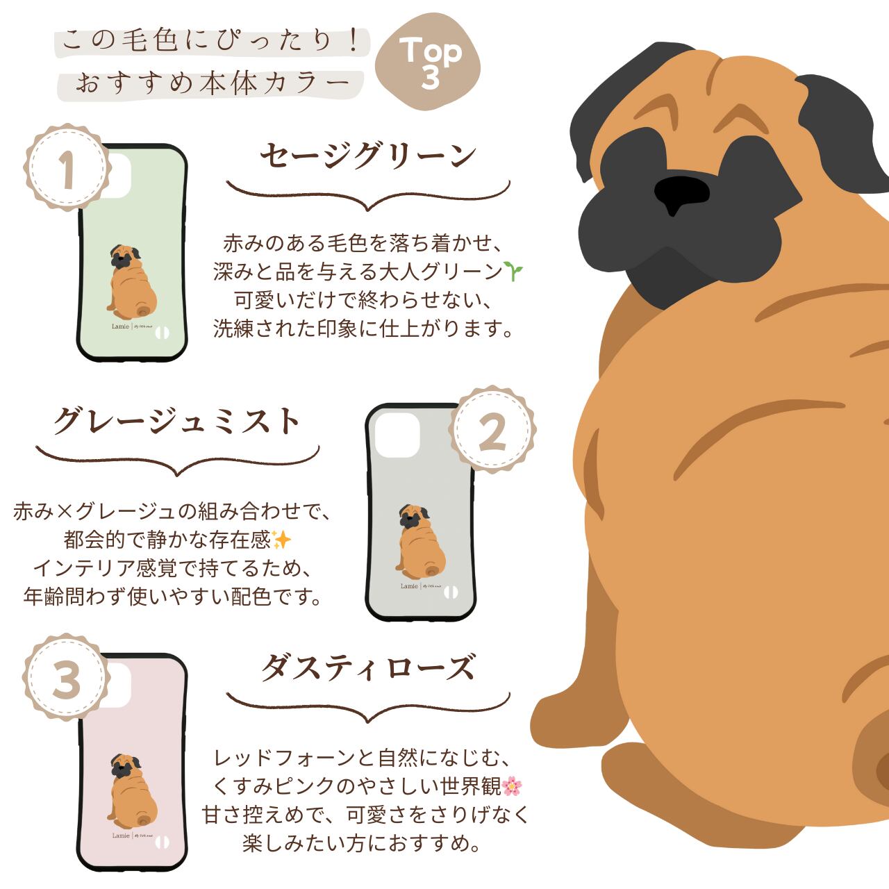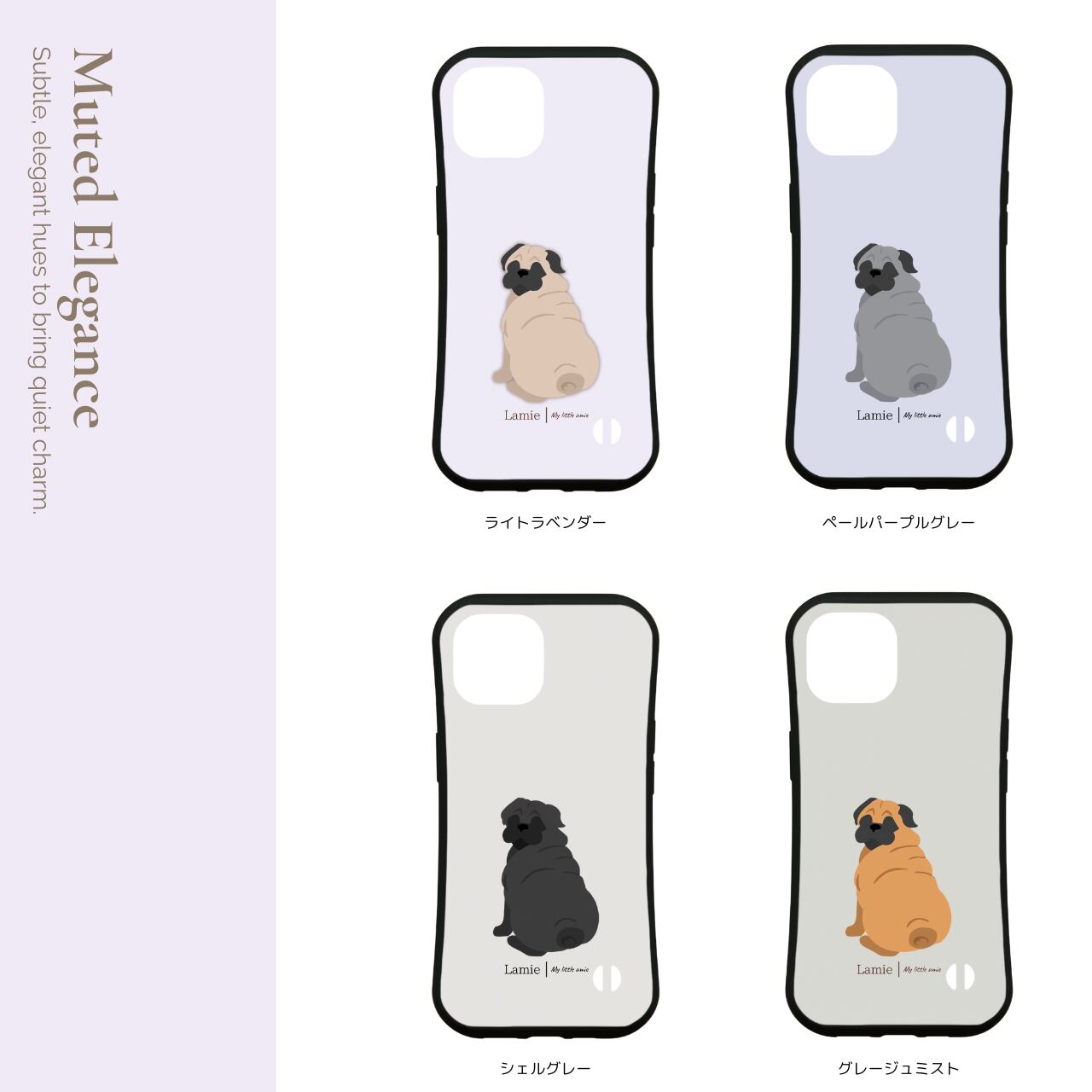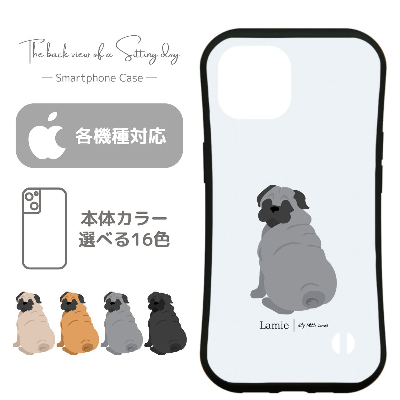 【パグ】 スマホケース|iPhone全機種対応/選べる16色&犬の後ろ姿デザイン