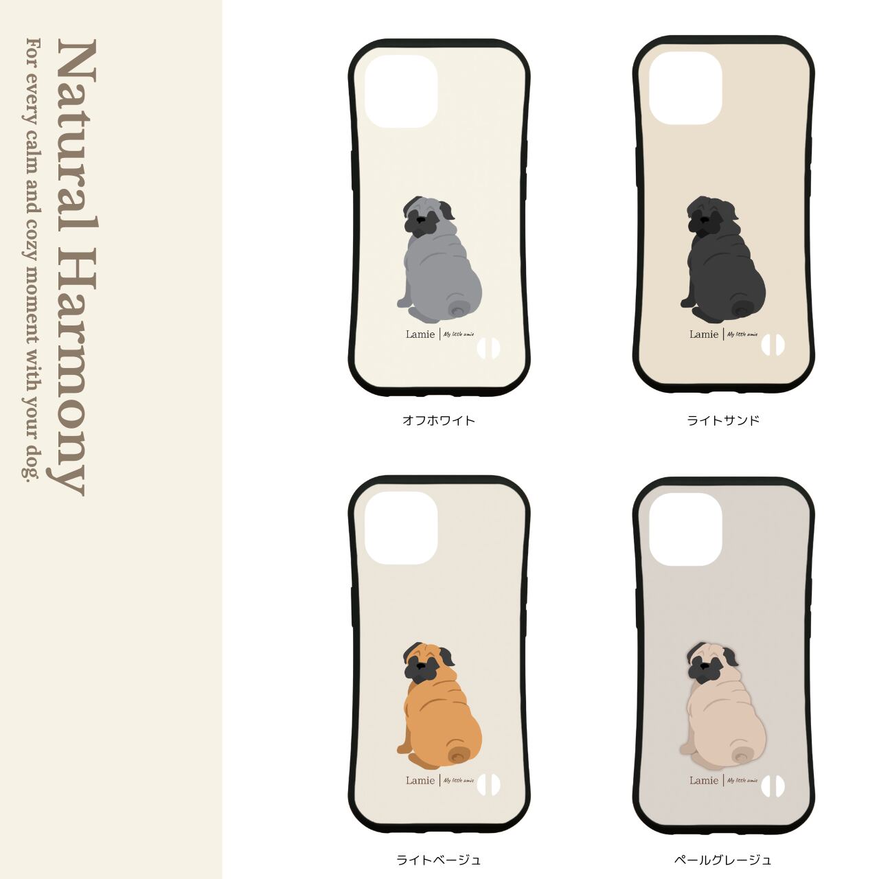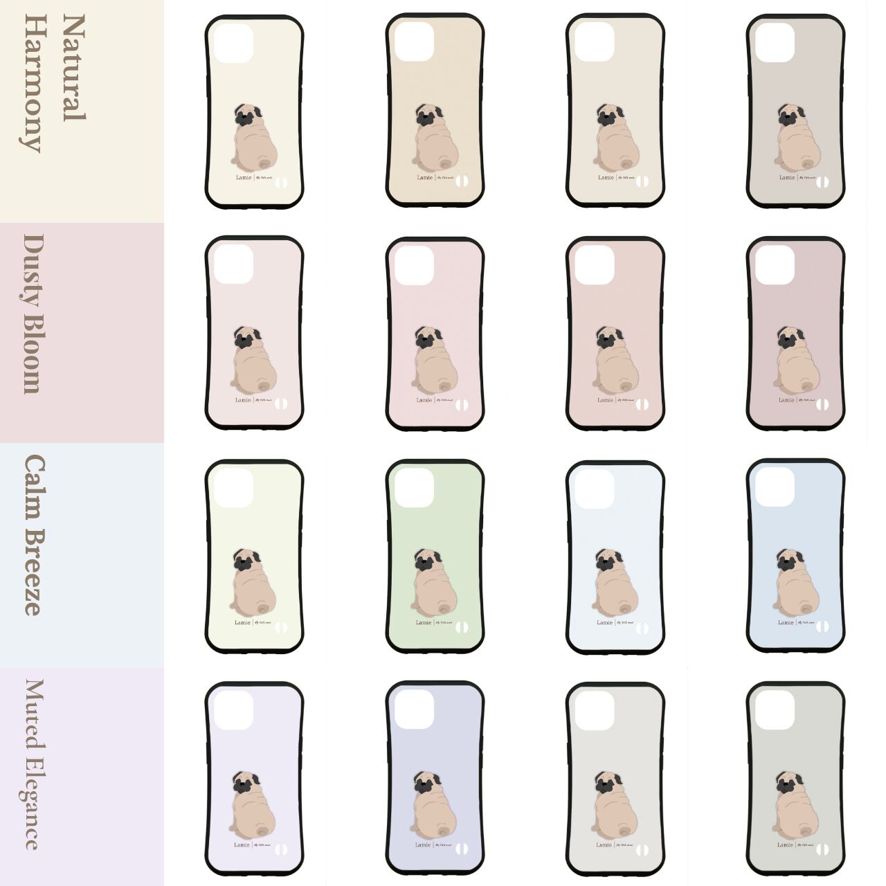 【パグの後ろ姿を描いた、ナチュラルデザインのスマホケース】