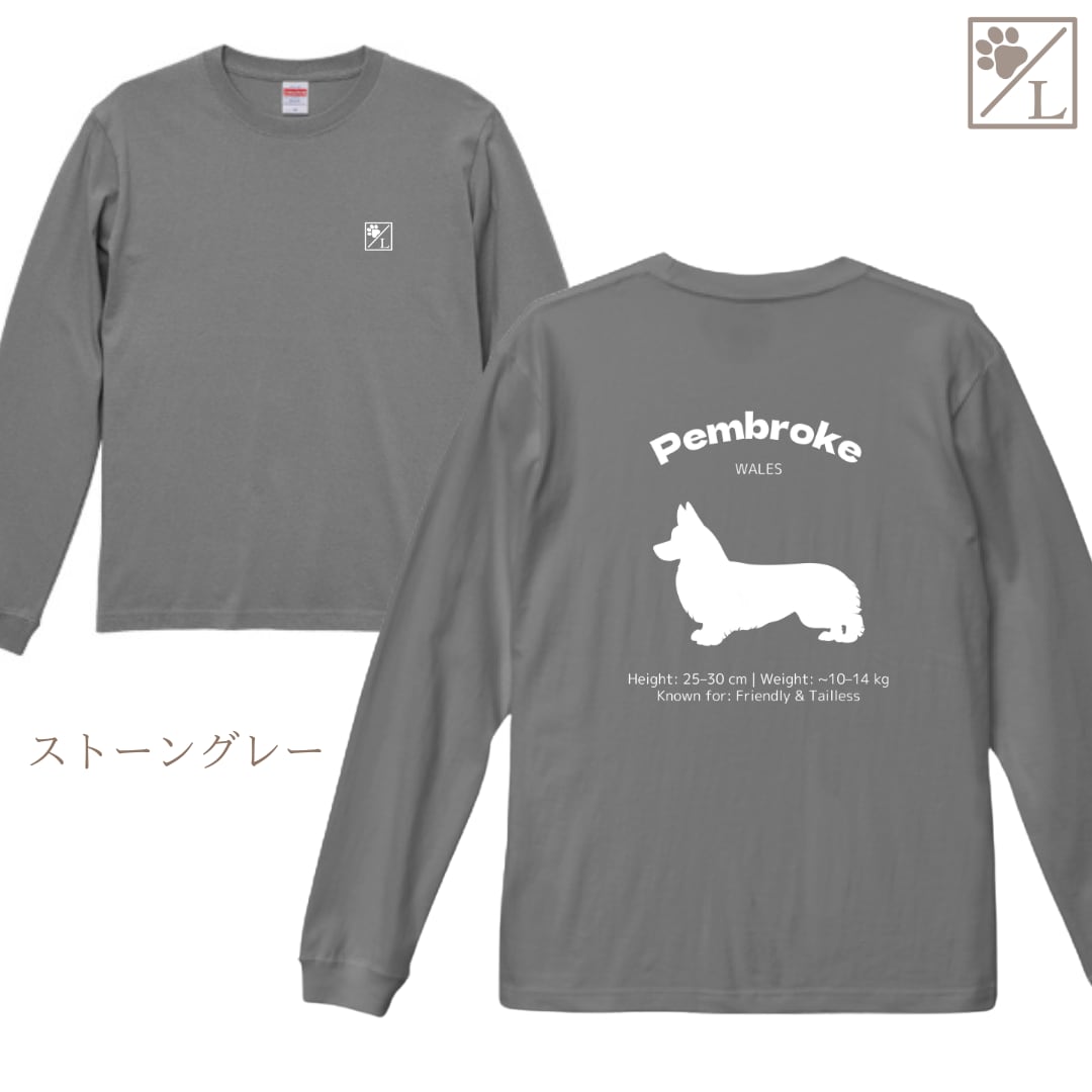 【ウェルシュ・コーギー・ペンブローク】シルエットデザイン ロンT ╱ 長袖 似顔絵 イラスト Tシャツ