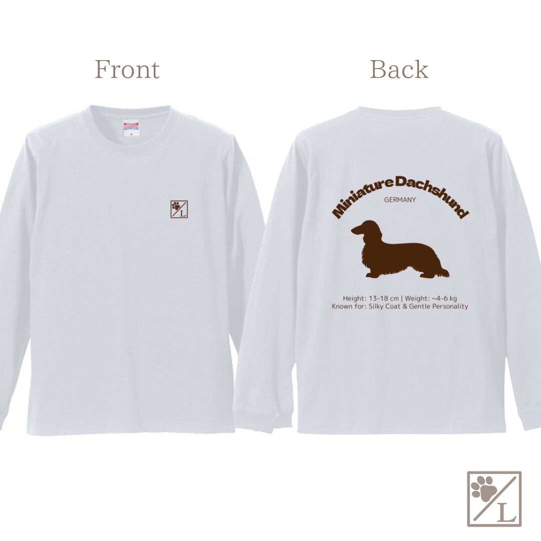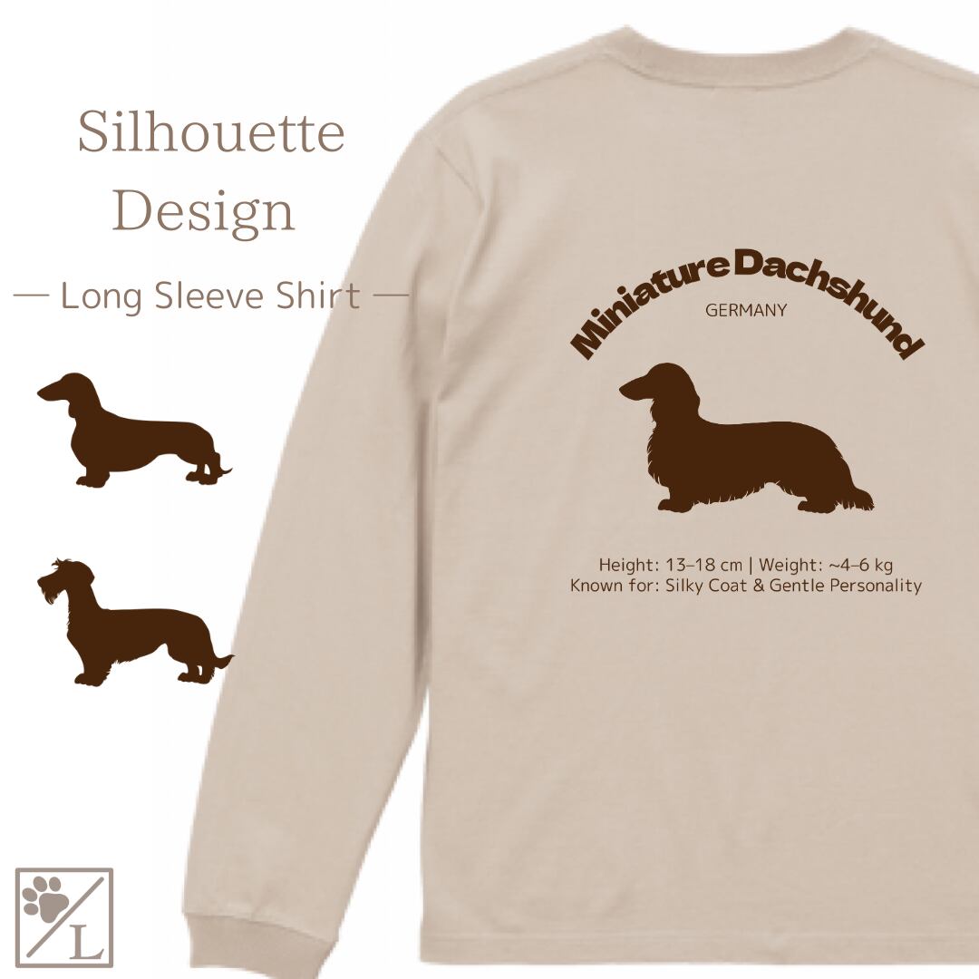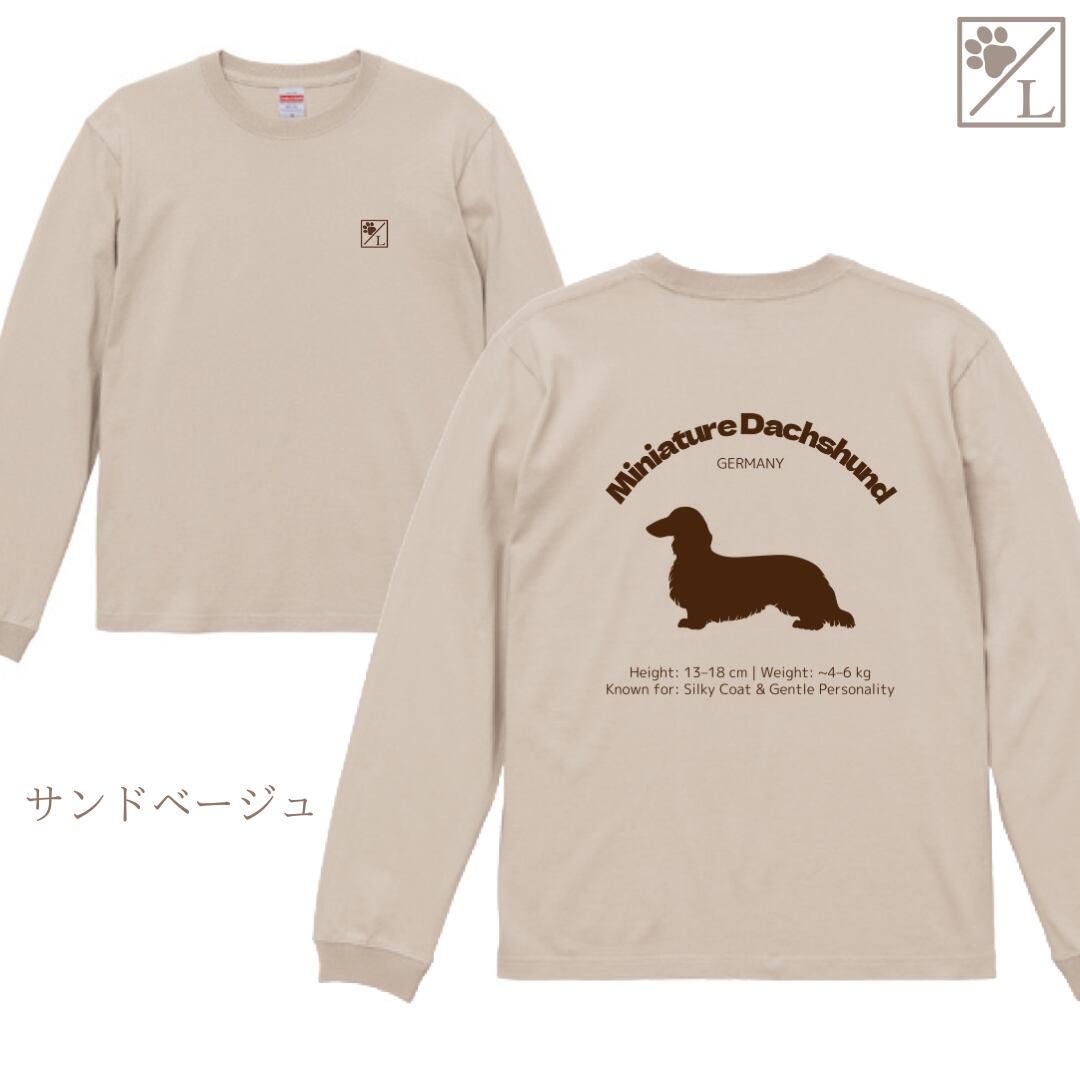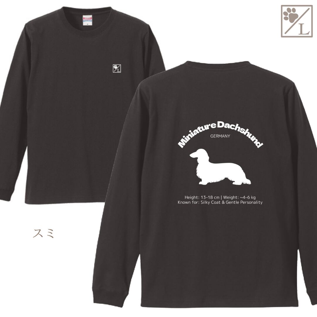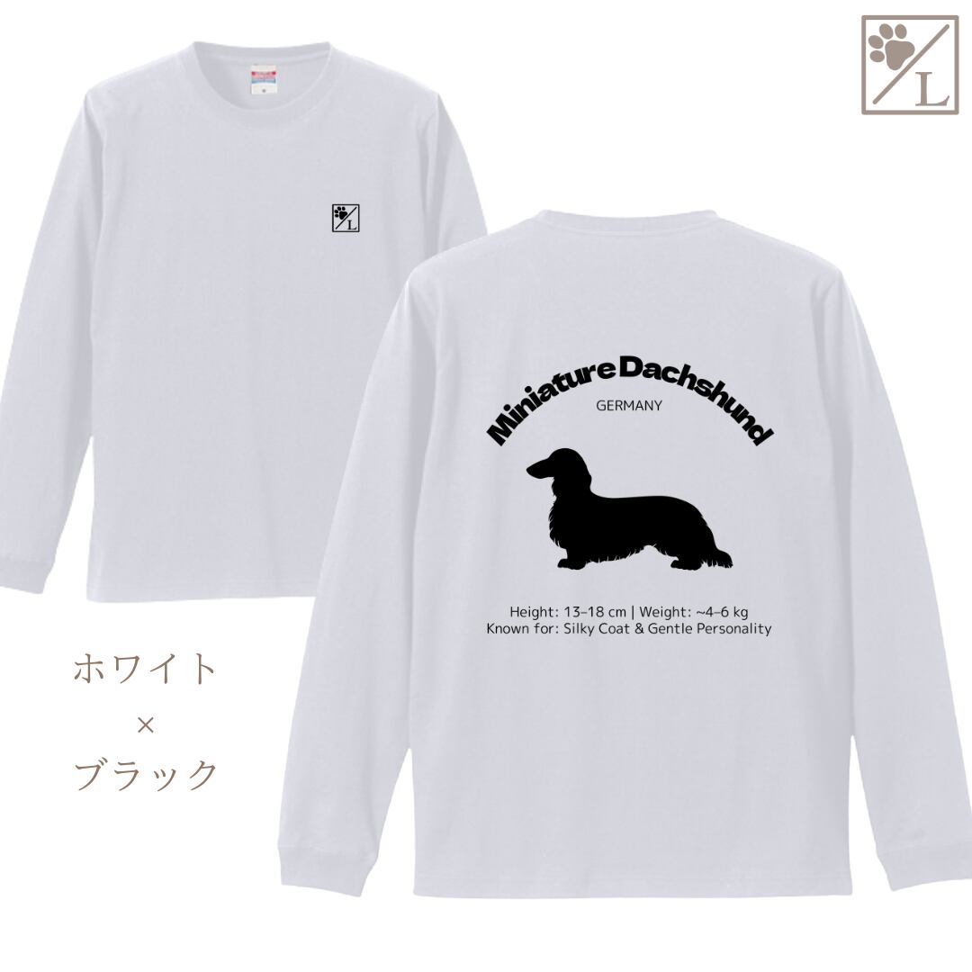【ミニチュアダックスフンド】ダックスフンド シルエットデザイン ロンT ╱ 長袖 似顔絵 イラスト Tシャツ 犬