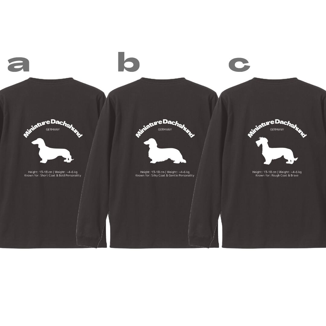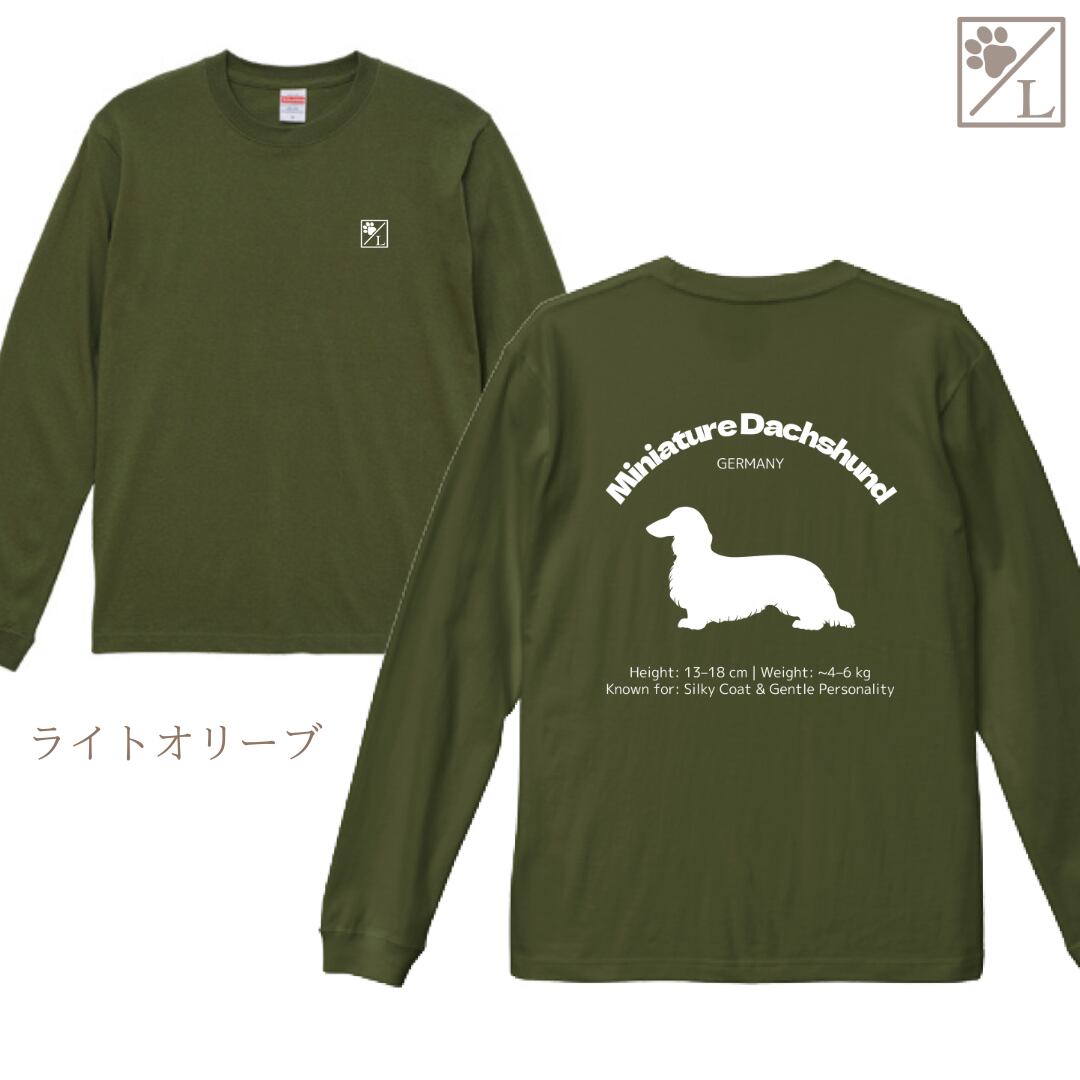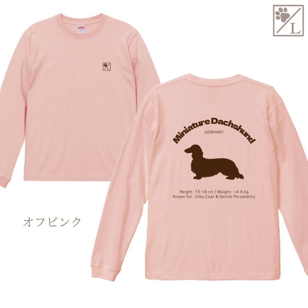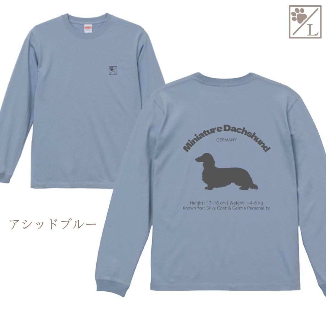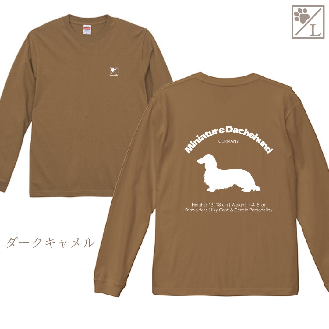 【ミニチュアダックスフンド】ダックスフンド シルエットデザイン ロンT ╱ 長袖 似顔絵 イラスト Tシャツ 犬