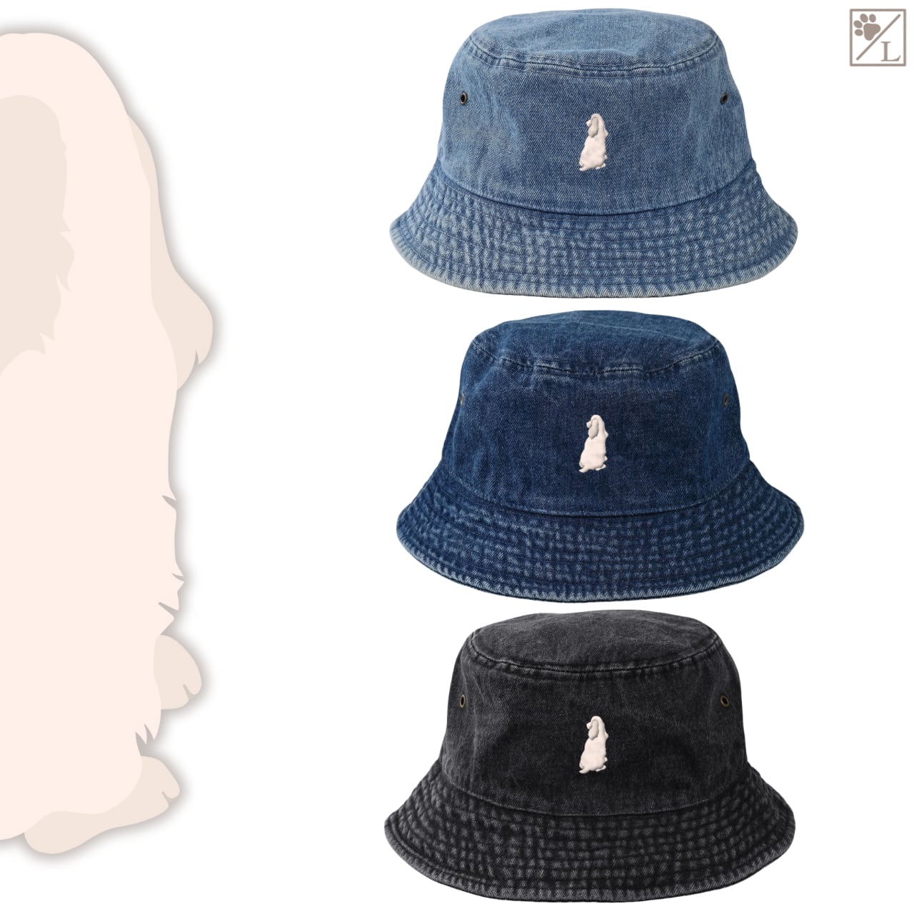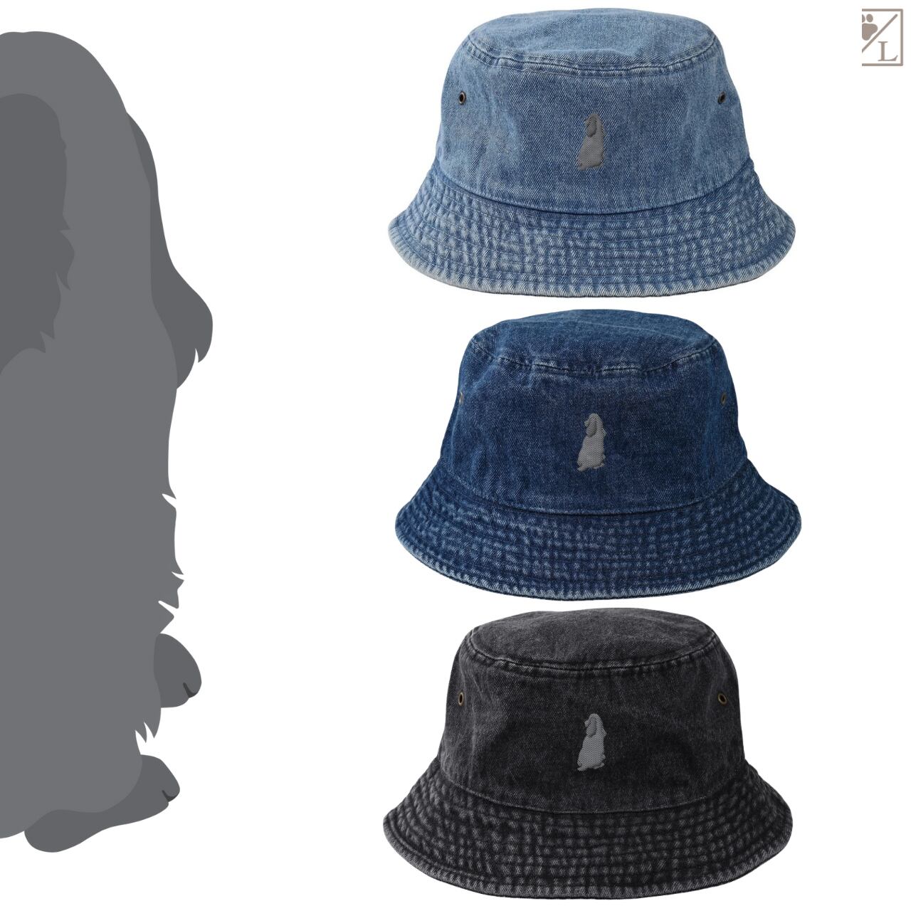 【アメリカンコッカースパニエル】アメコカ 刺繍 犬の後ろ姿デニムキャップ・バケットハット|選べる3色|愛犬家に人気の帽子