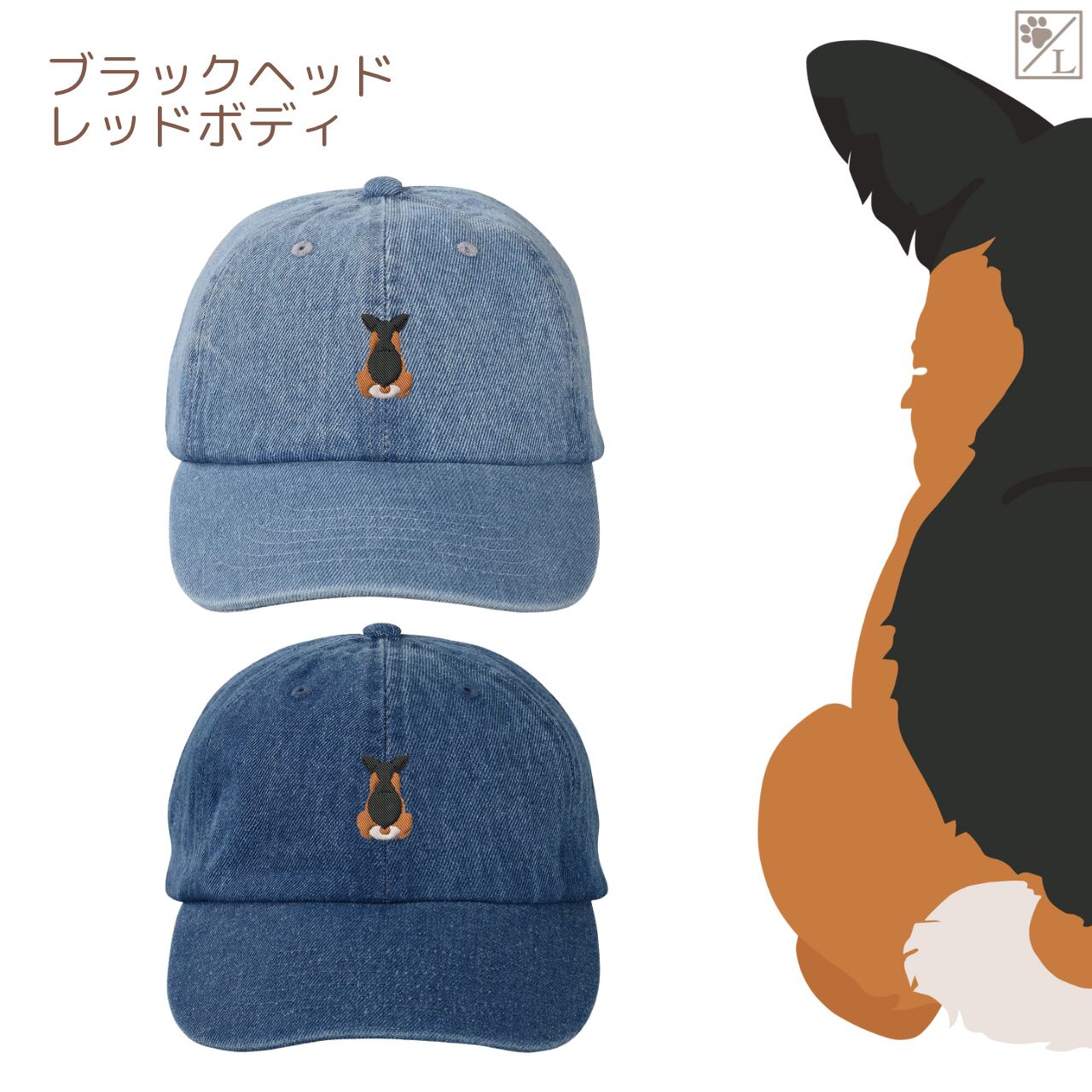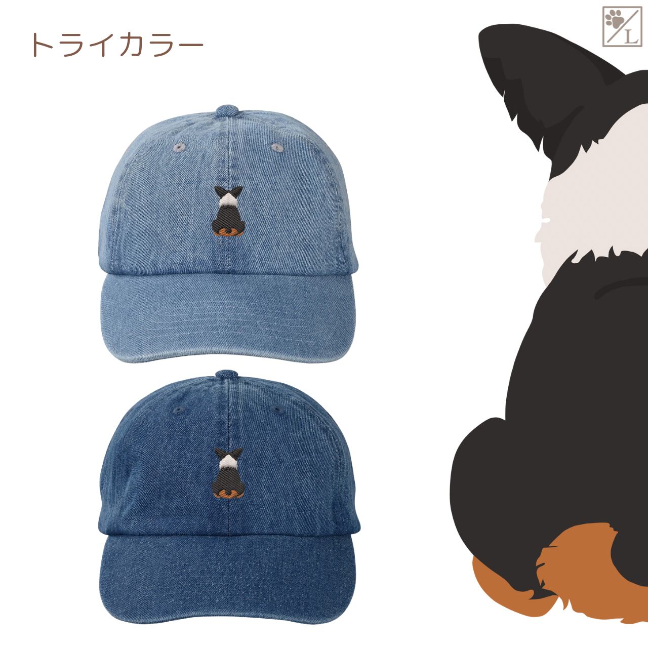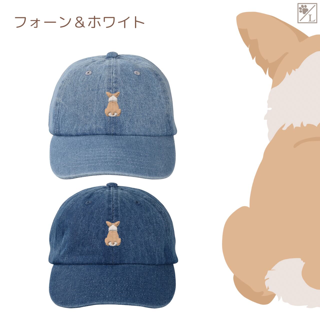 【ウェルシュコーギーペンブローク】 刺繍 犬の後ろ姿デニムキャップ・バケットハット|選べる3色|愛犬家に人気の帽子
