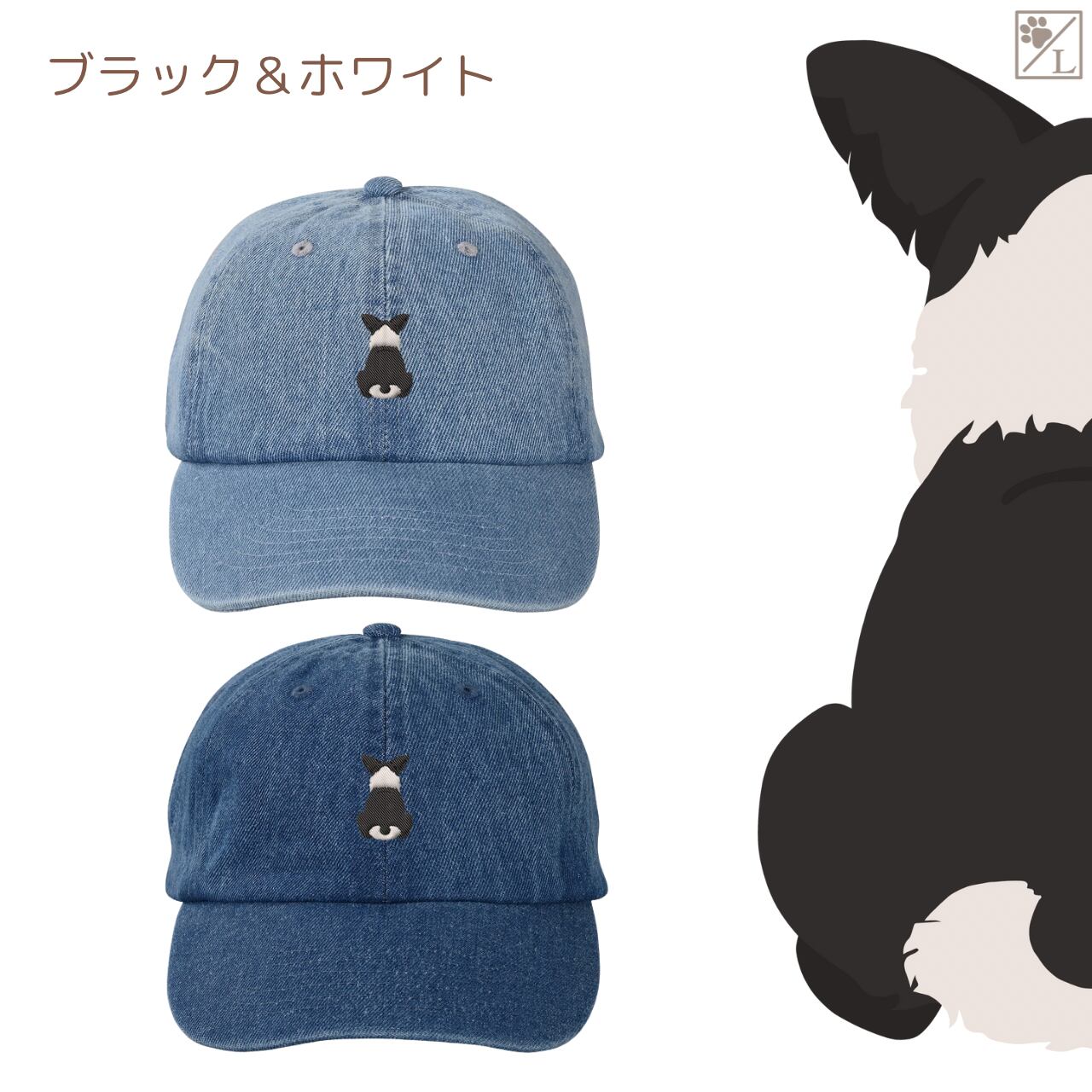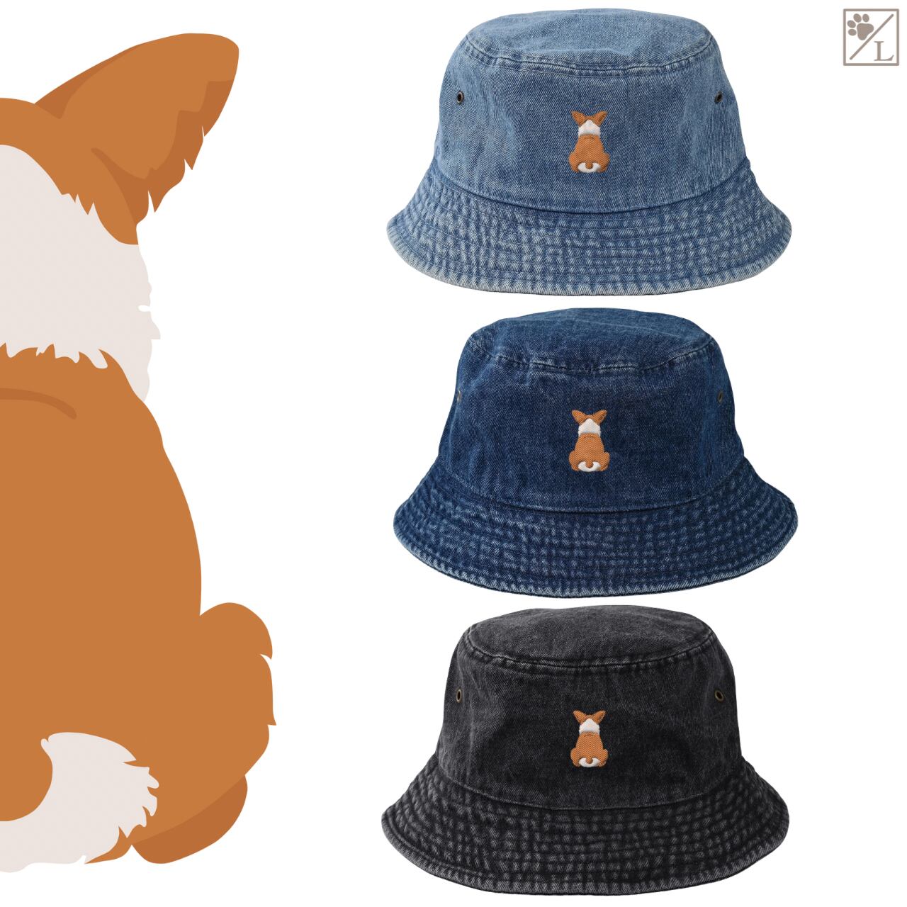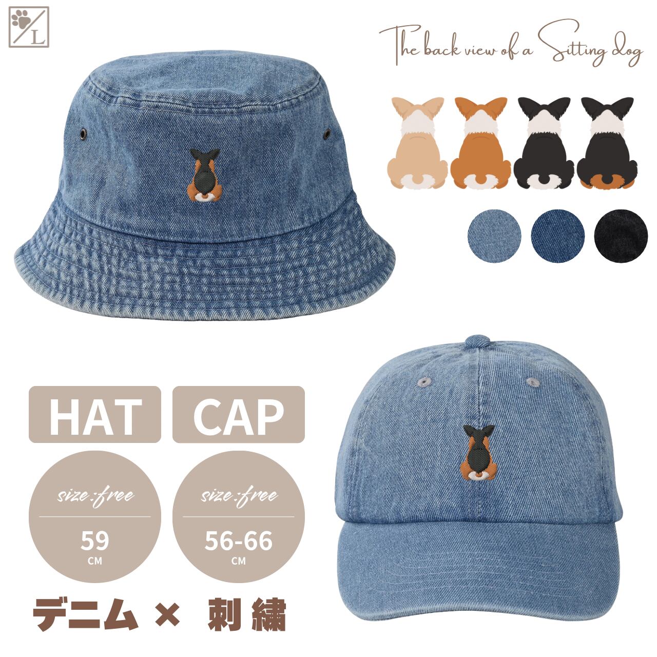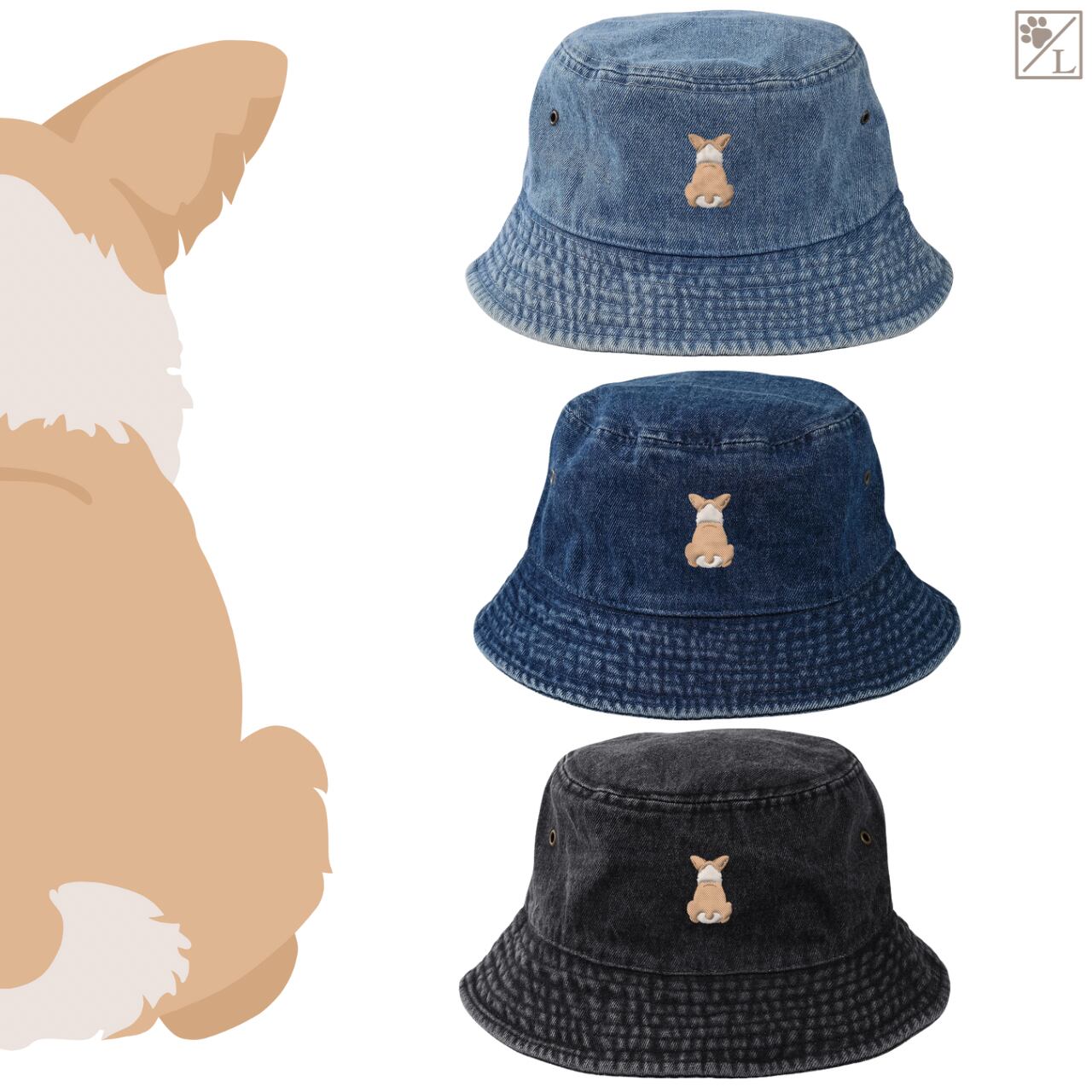 【ウェルシュコーギーペンブローク】 刺繍 犬の後ろ姿デニムキャップ・バケットハット|選べる3色|愛犬家に人気の帽子