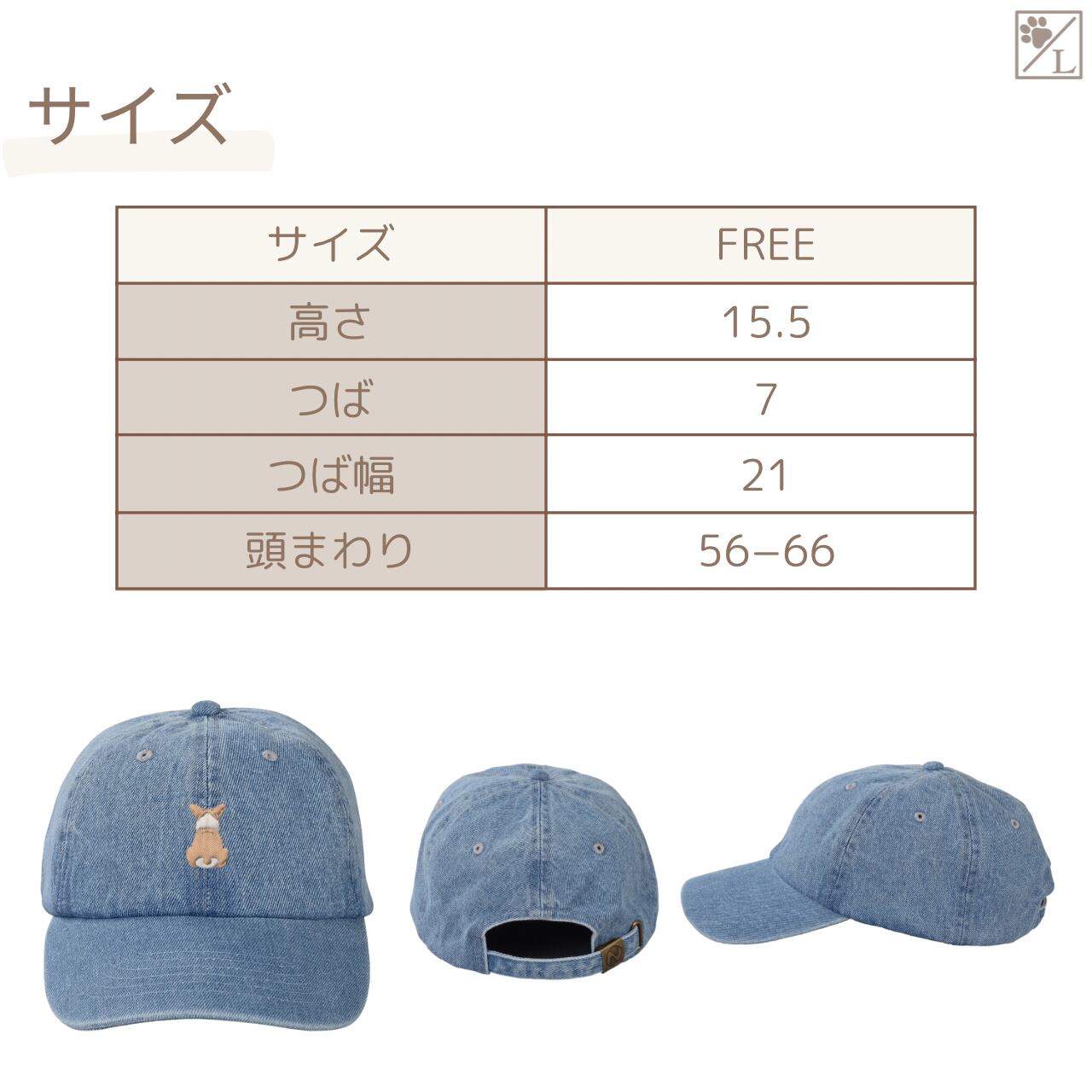 犬のおすわり後ろ姿を刺繍であしらった、シンプルで使いやすいデニムキャップ&ハットです。