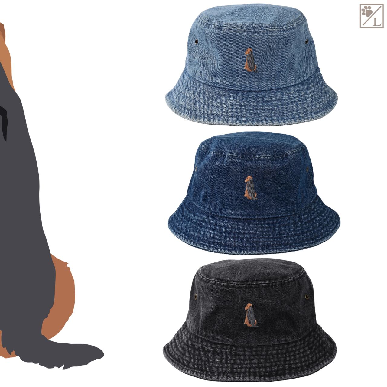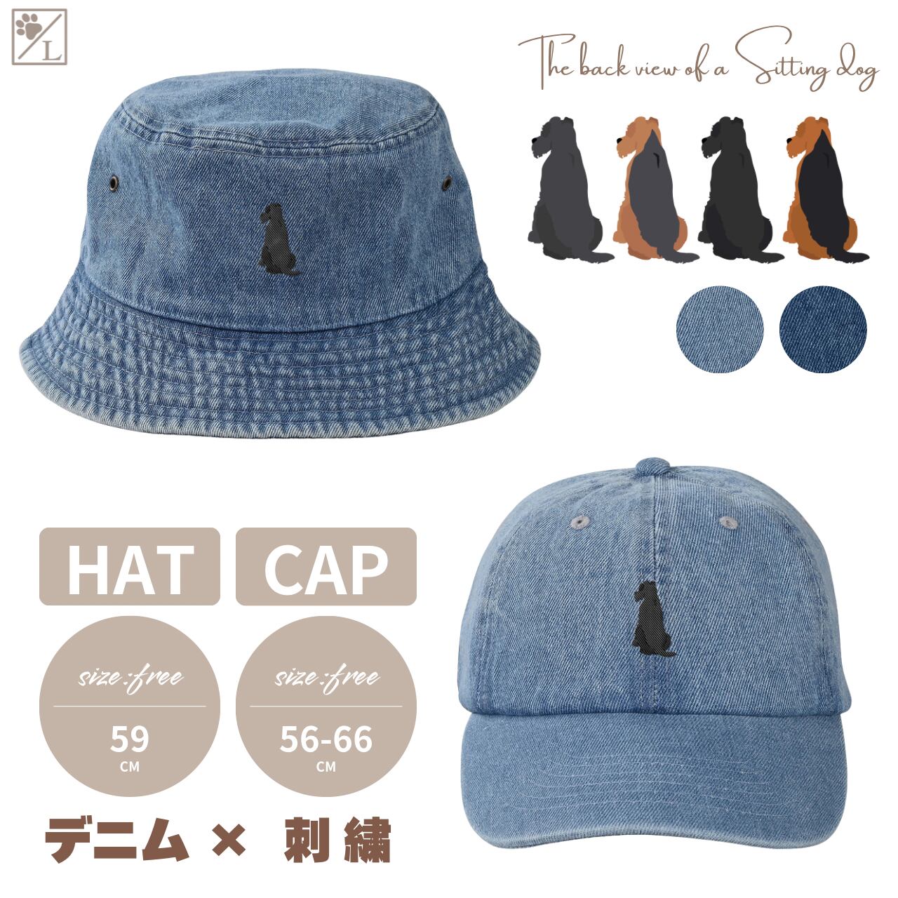 【エアデールテリア】 刺繍 犬の後ろ姿デニムキャップ・バケットハット|選べる3色|愛犬家に人気の帽子