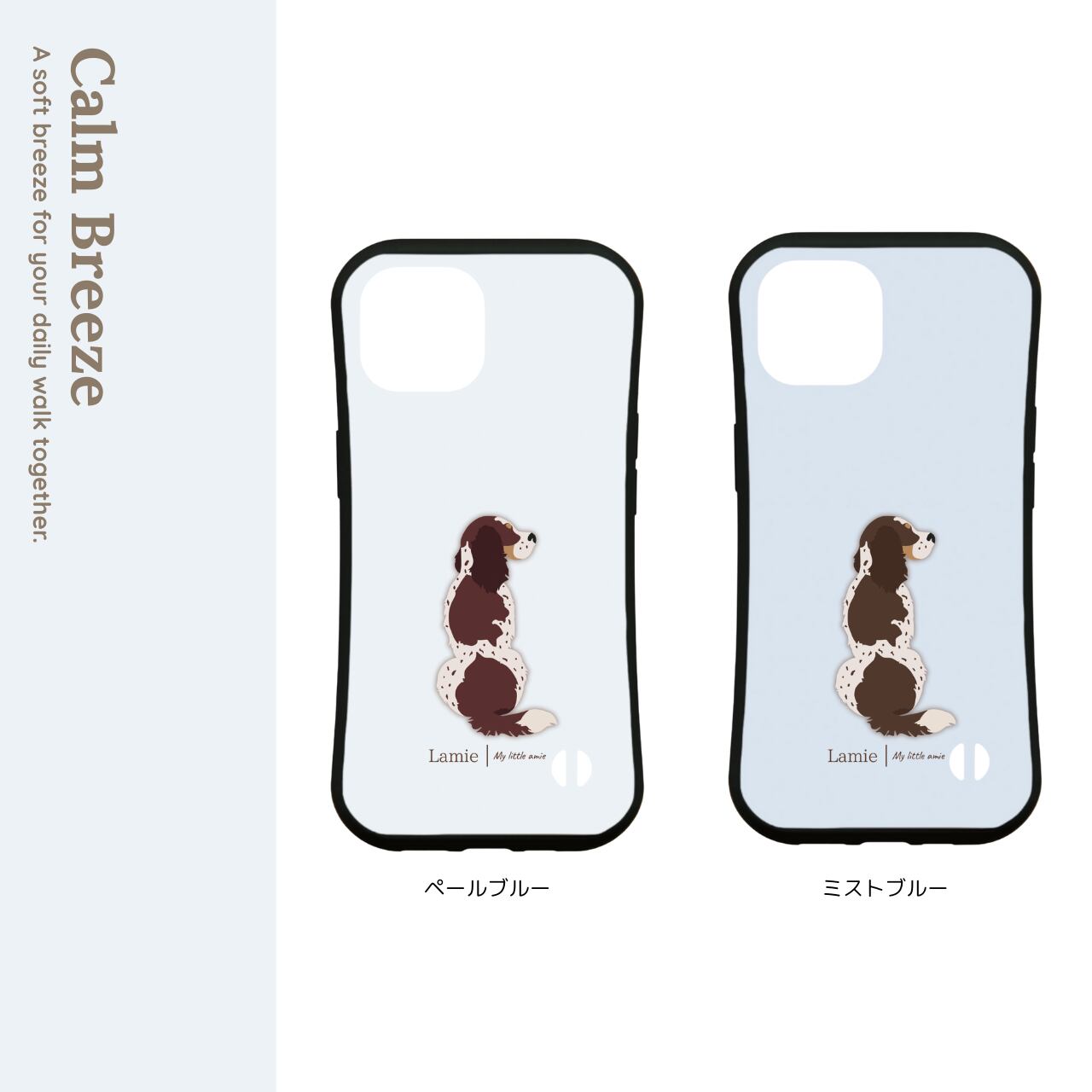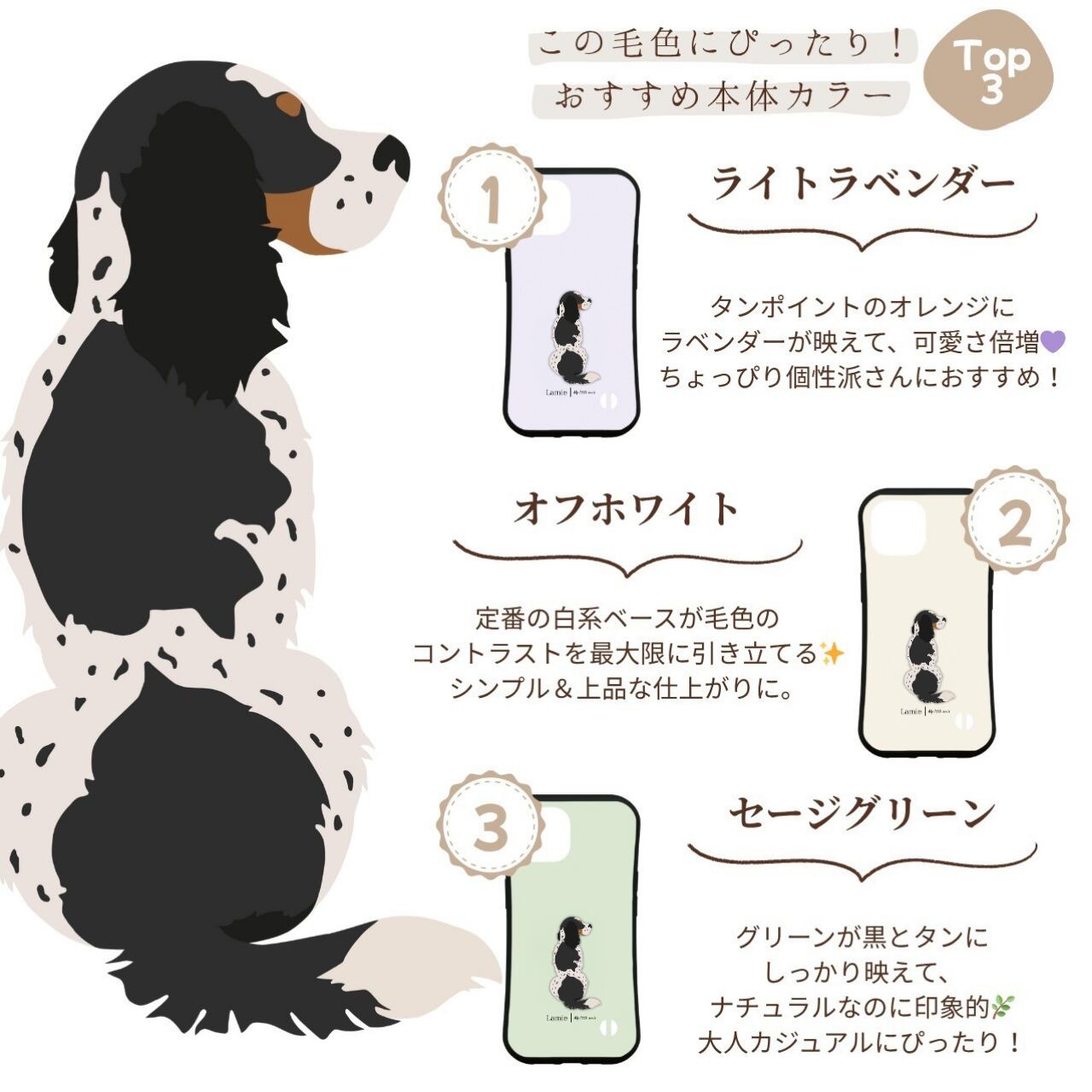 イングリッシュスプリンガーの後ろ姿を描いた、ナチュラルデザインのスマホケース
