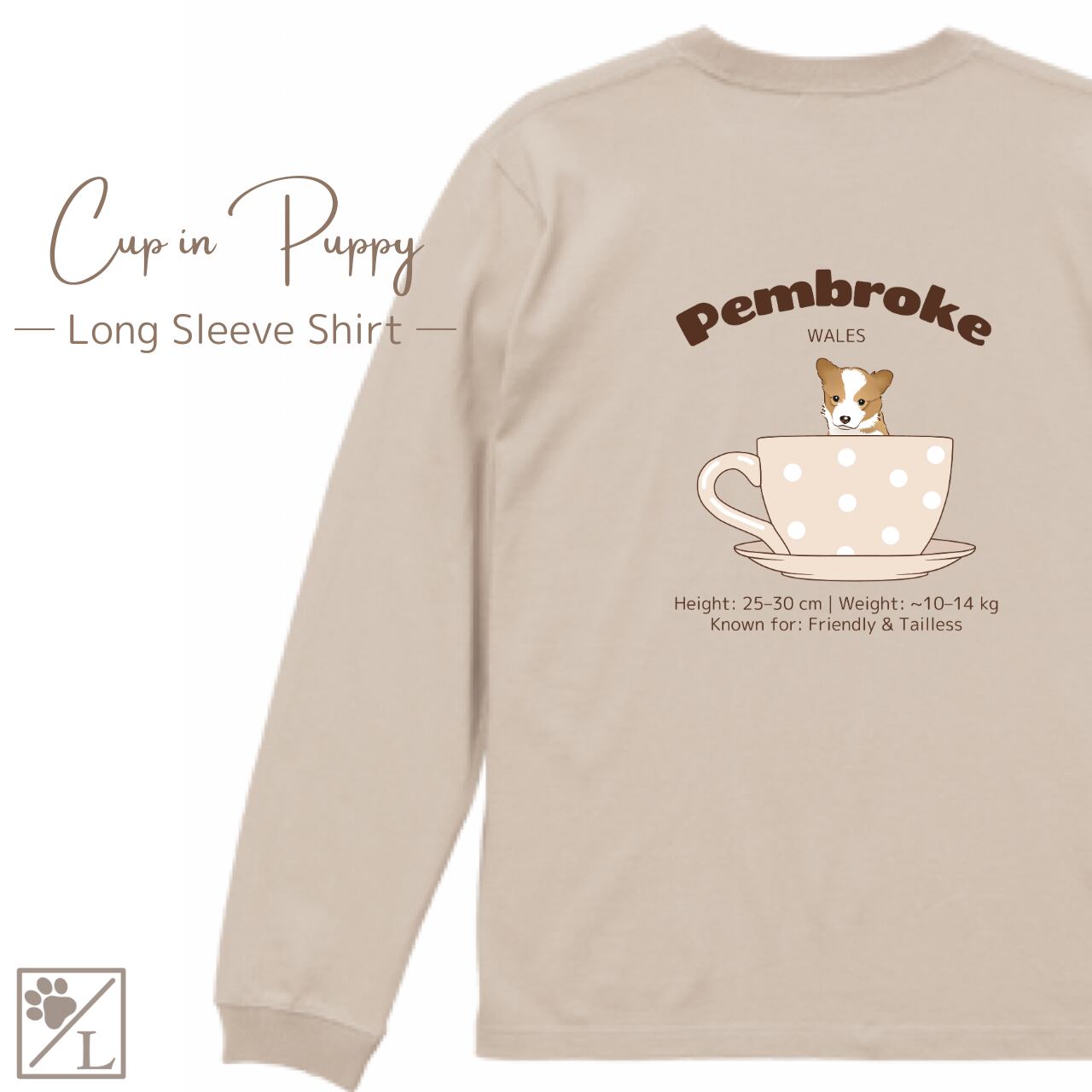 【ウェルシュコーギーペンブローク】コーギー Cup in PUPPY ╱ ロングTシャツ 長袖 似顔絵 イラスト Tシャツ