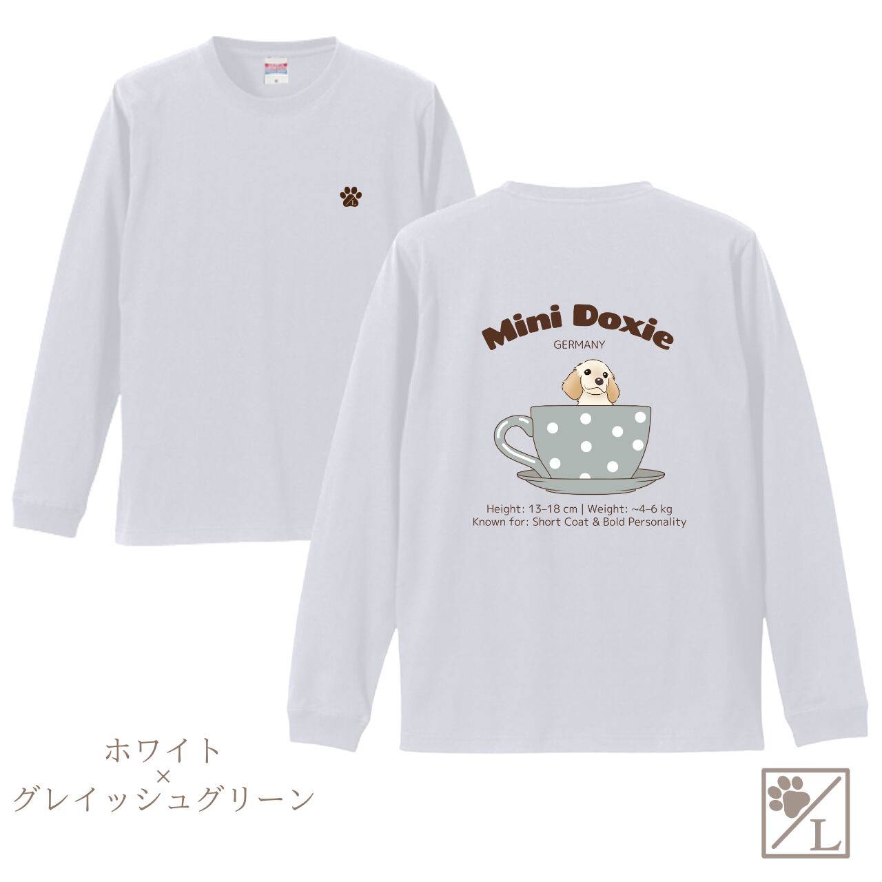 このロンTには、愛らしい子犬の似顔絵がデザインされています。