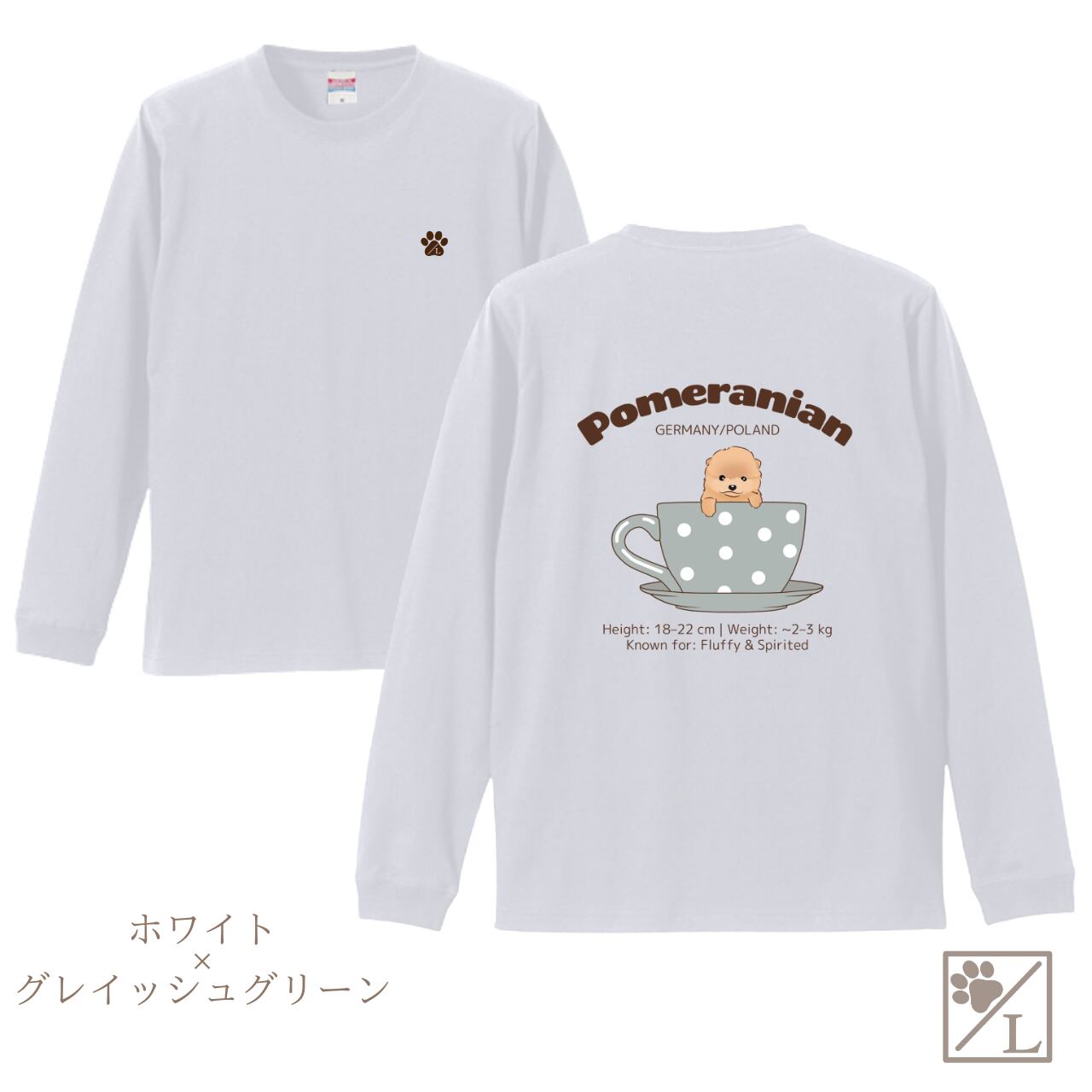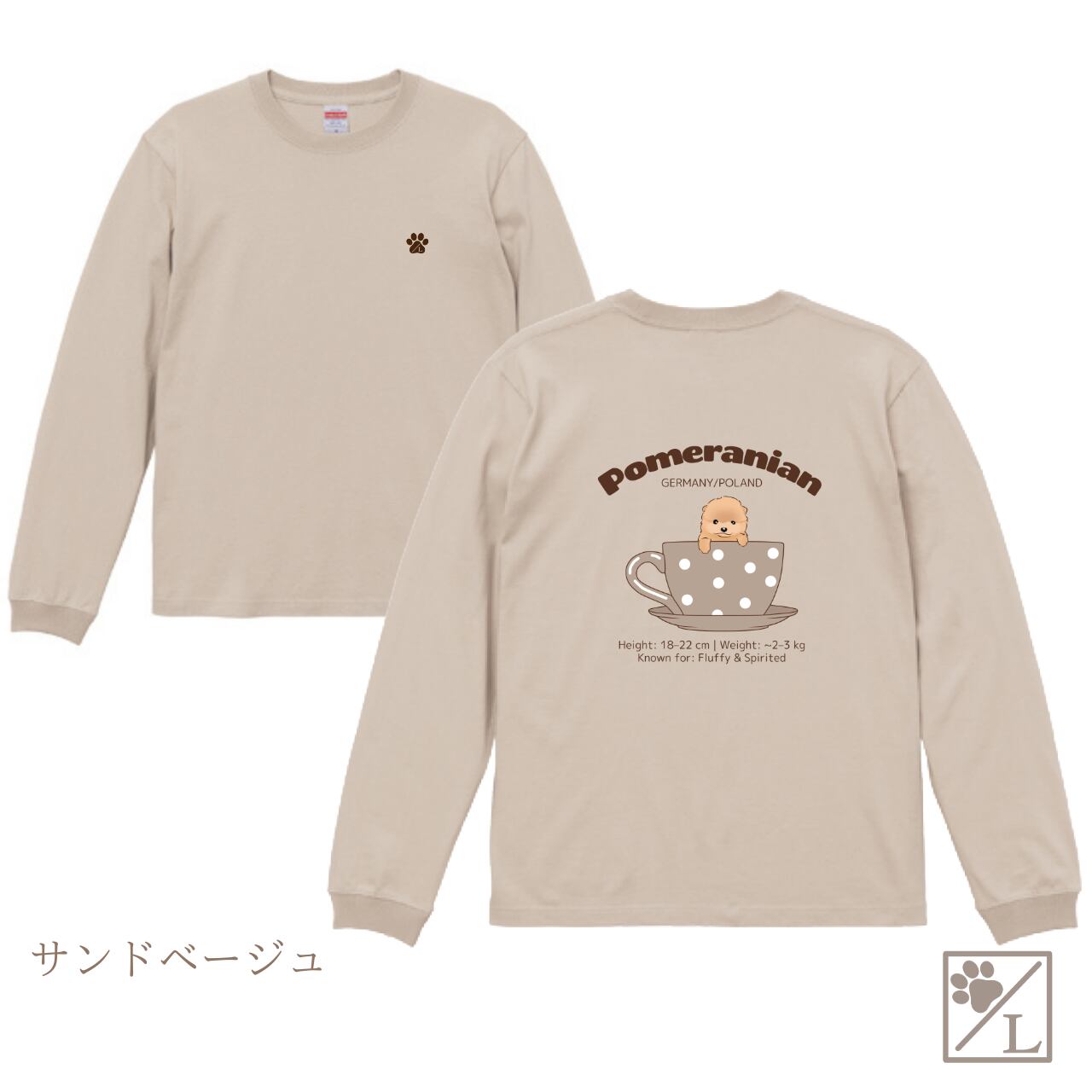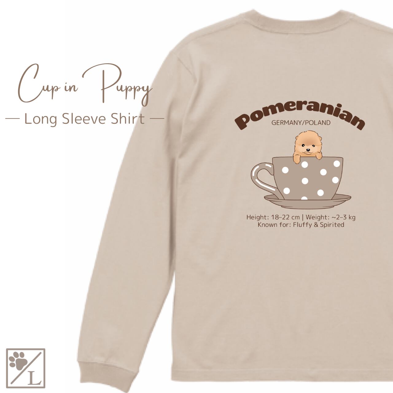 【ポメラニアン】Cup in PUPPY ╱ ロングTシャツ 長袖 似顔絵 イラスト Tシャツ