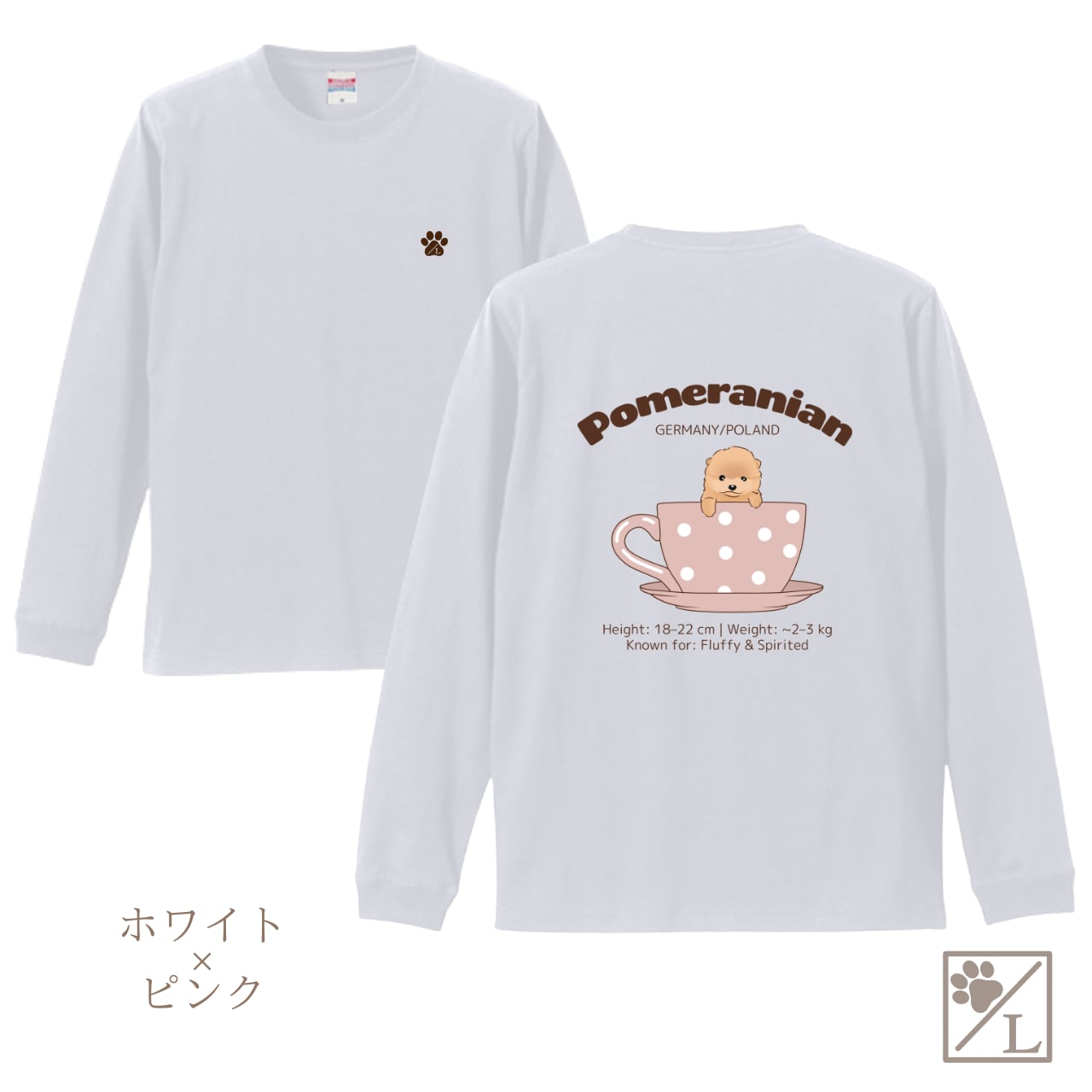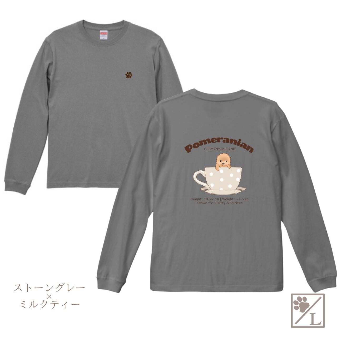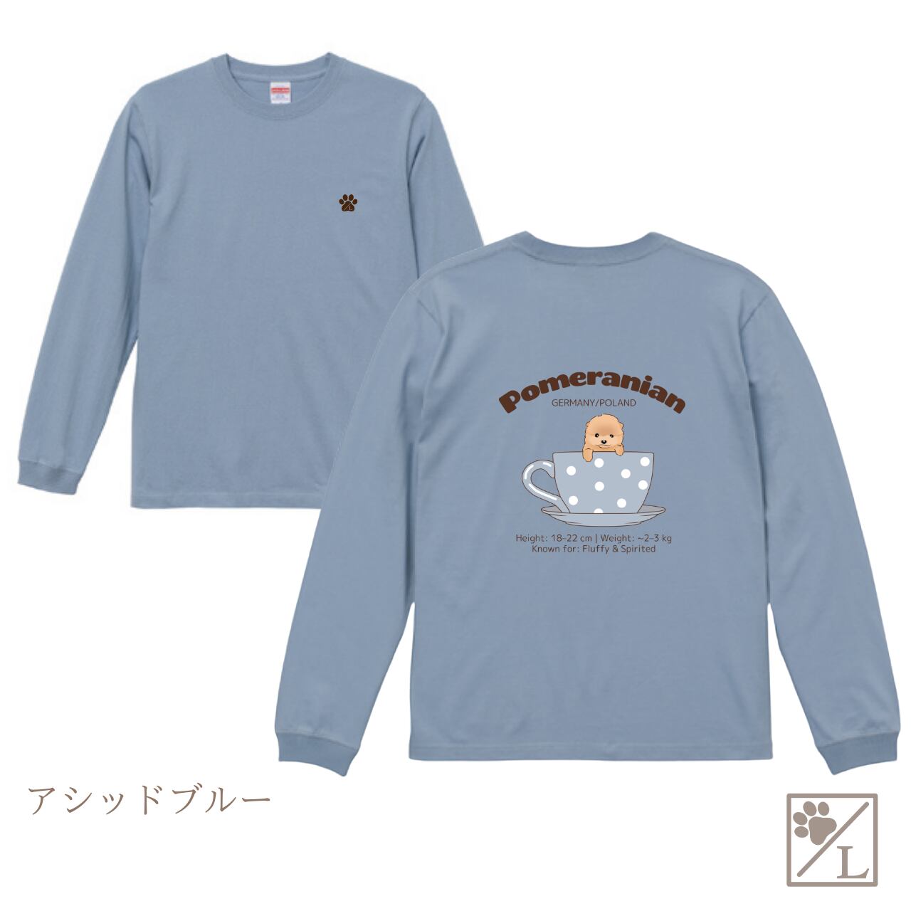 【ポメラニアン】Cup in PUPPY ╱ ロングTシャツ 長袖 似顔絵 イラスト Tシャツ