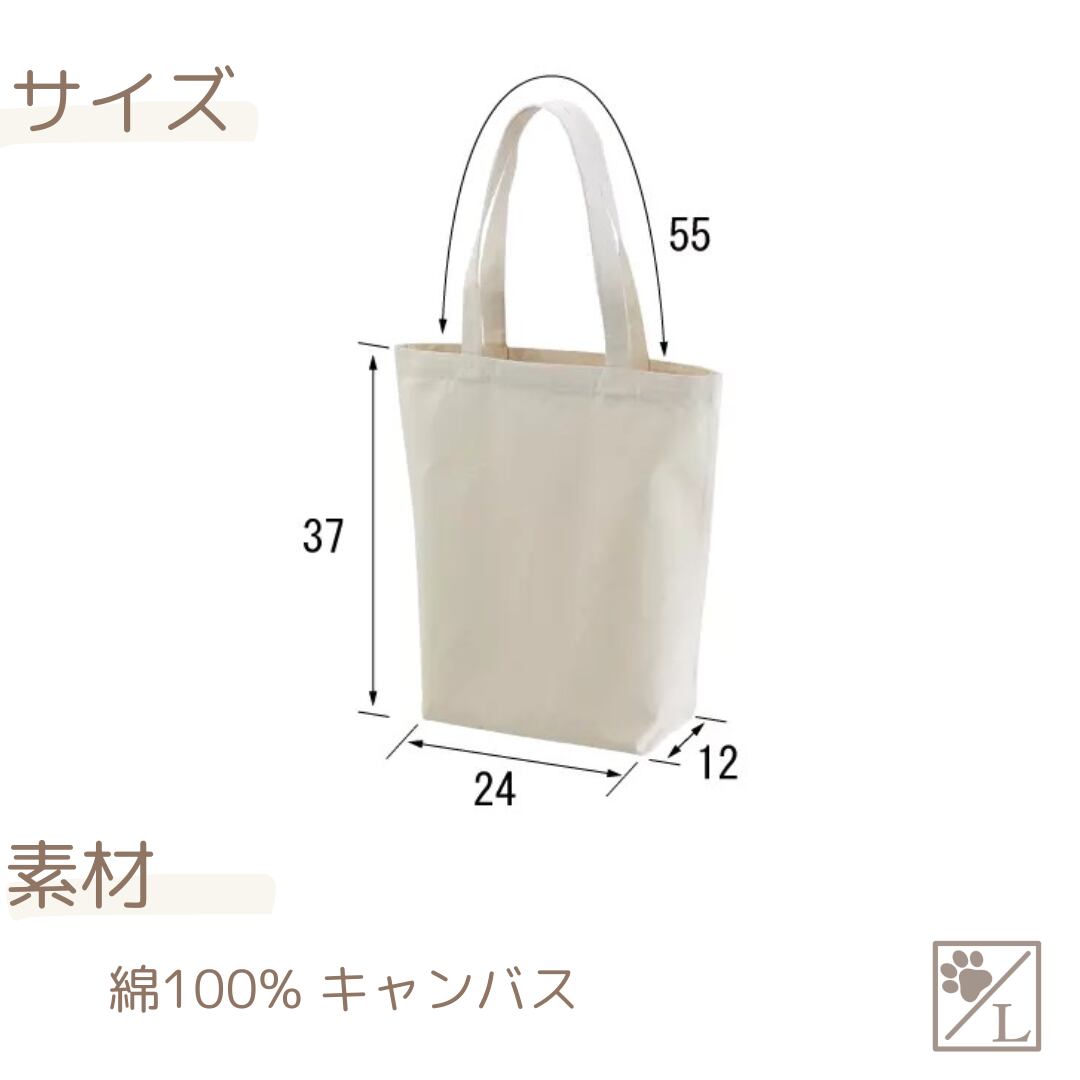 100%キャンバス生地でしっかり丈夫、A4サイズもすっぽり入ります。
