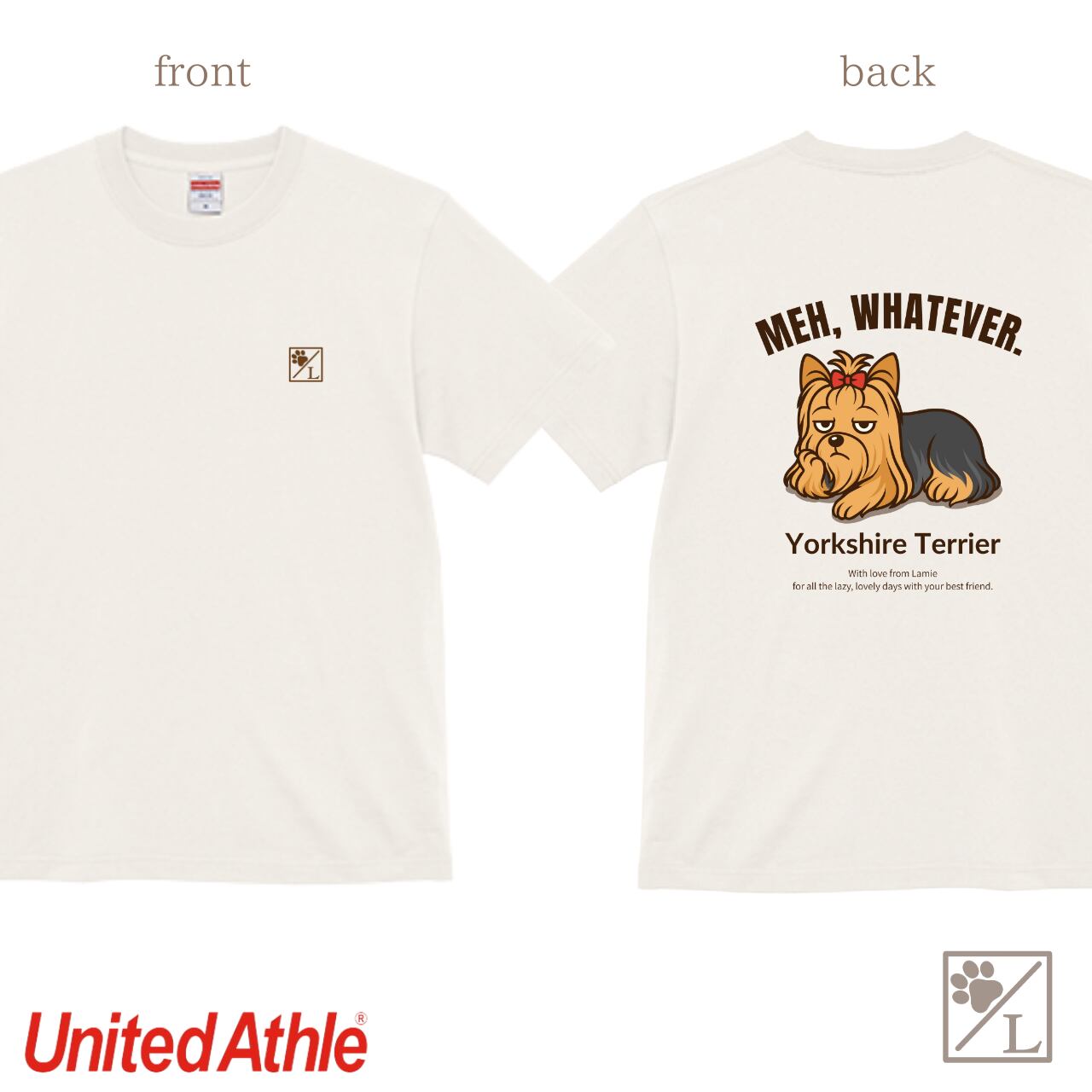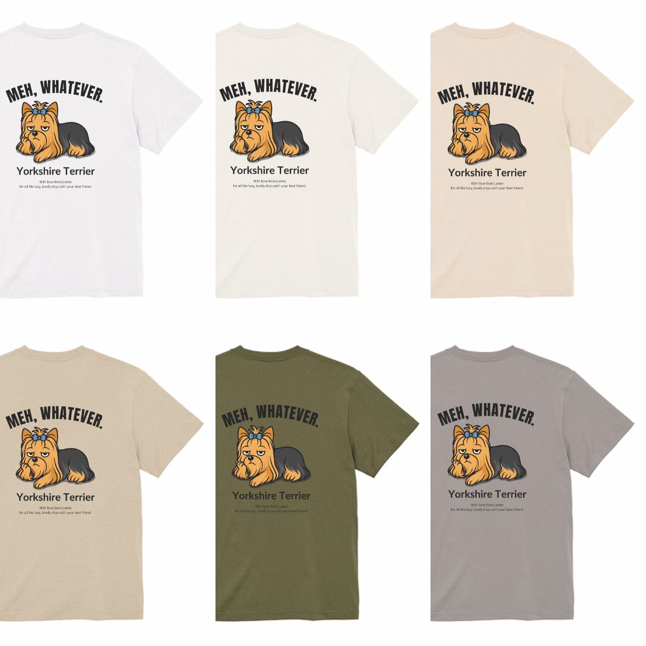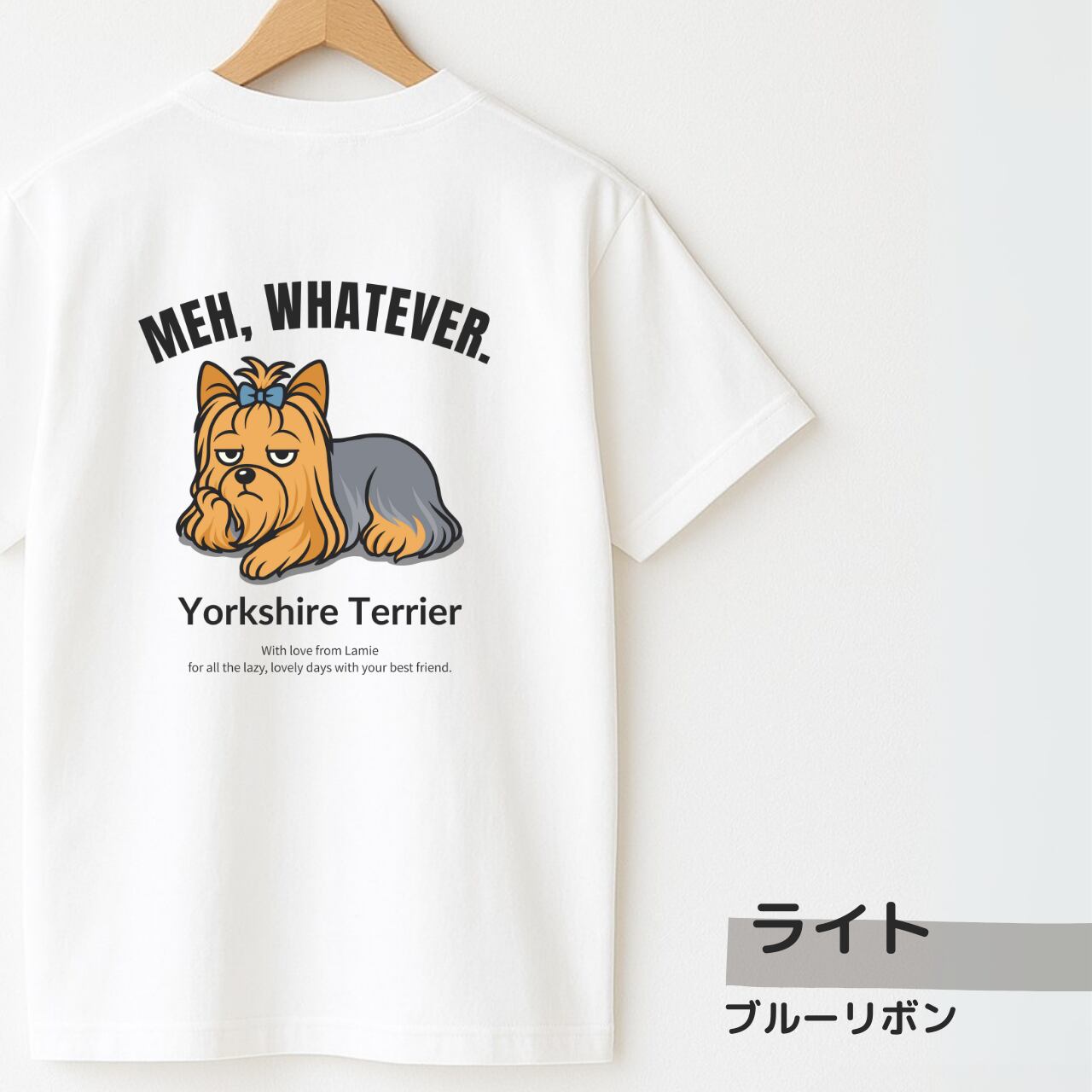 【ヨークシャーテリア】犬 イラスト Tシャツ / MEH, WHATEVER. / ペアルック対応 名入れOK メンズ レディース 6色展開