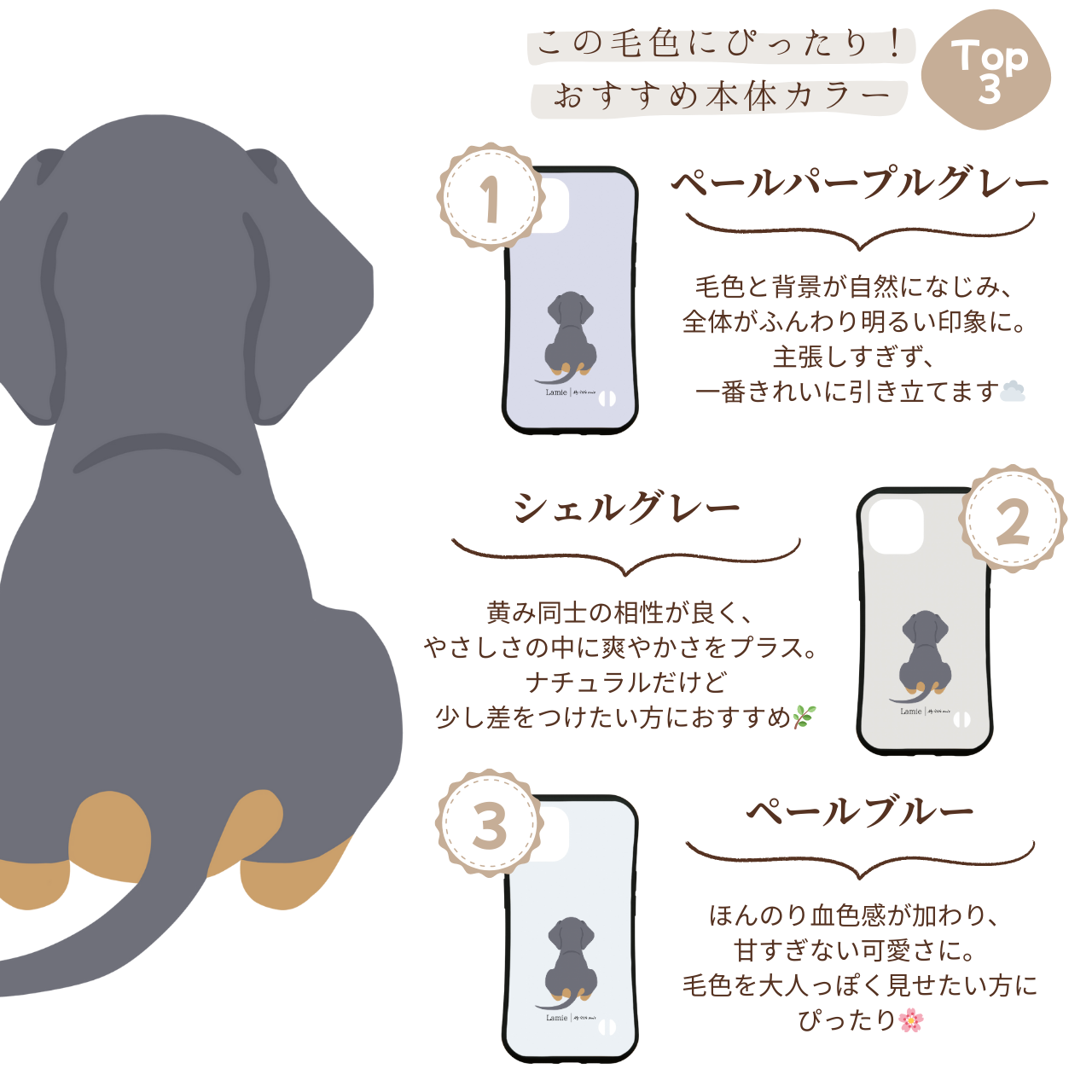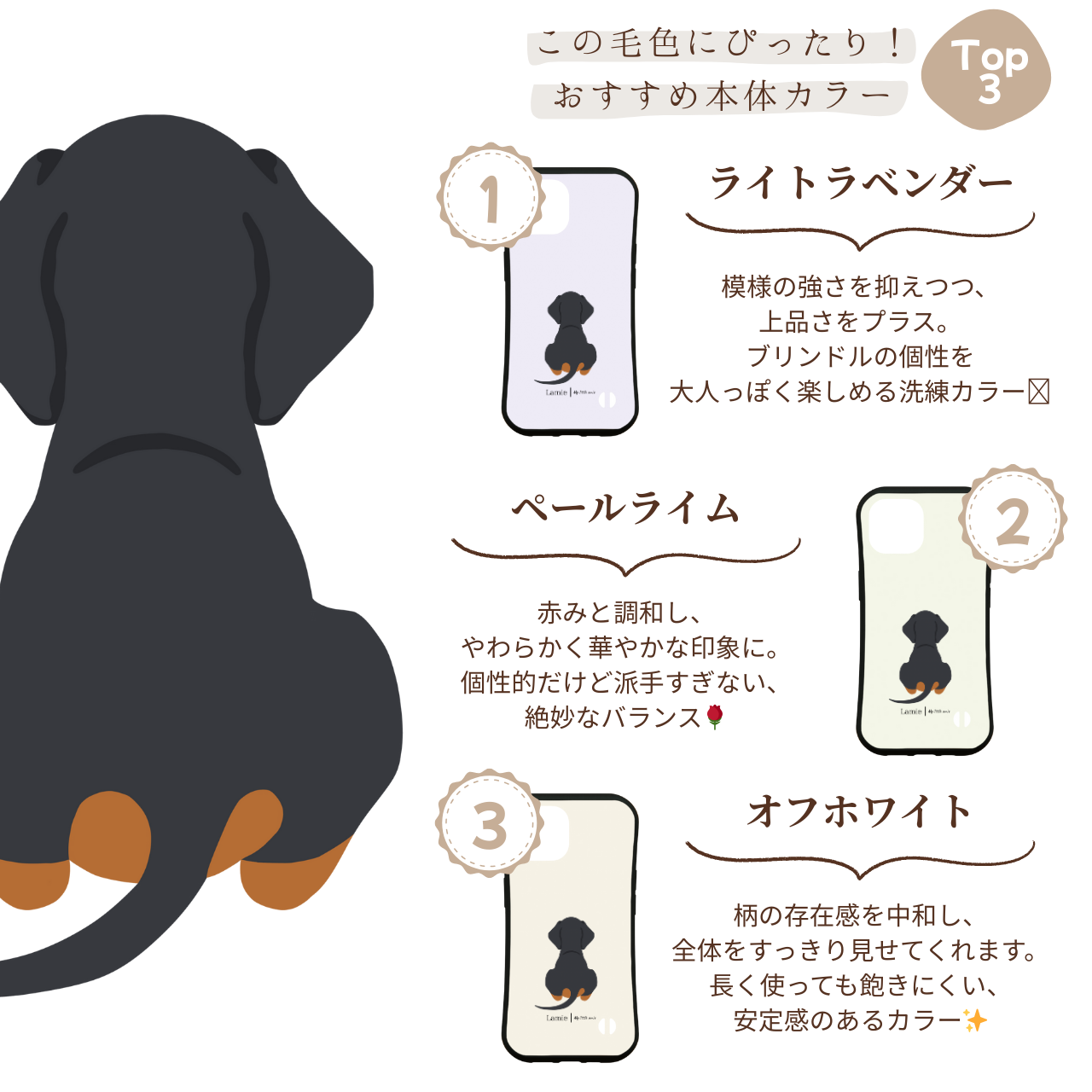 【ダックスフンドの後ろ姿を描いた、ナチュラルデザインのスマホケース】