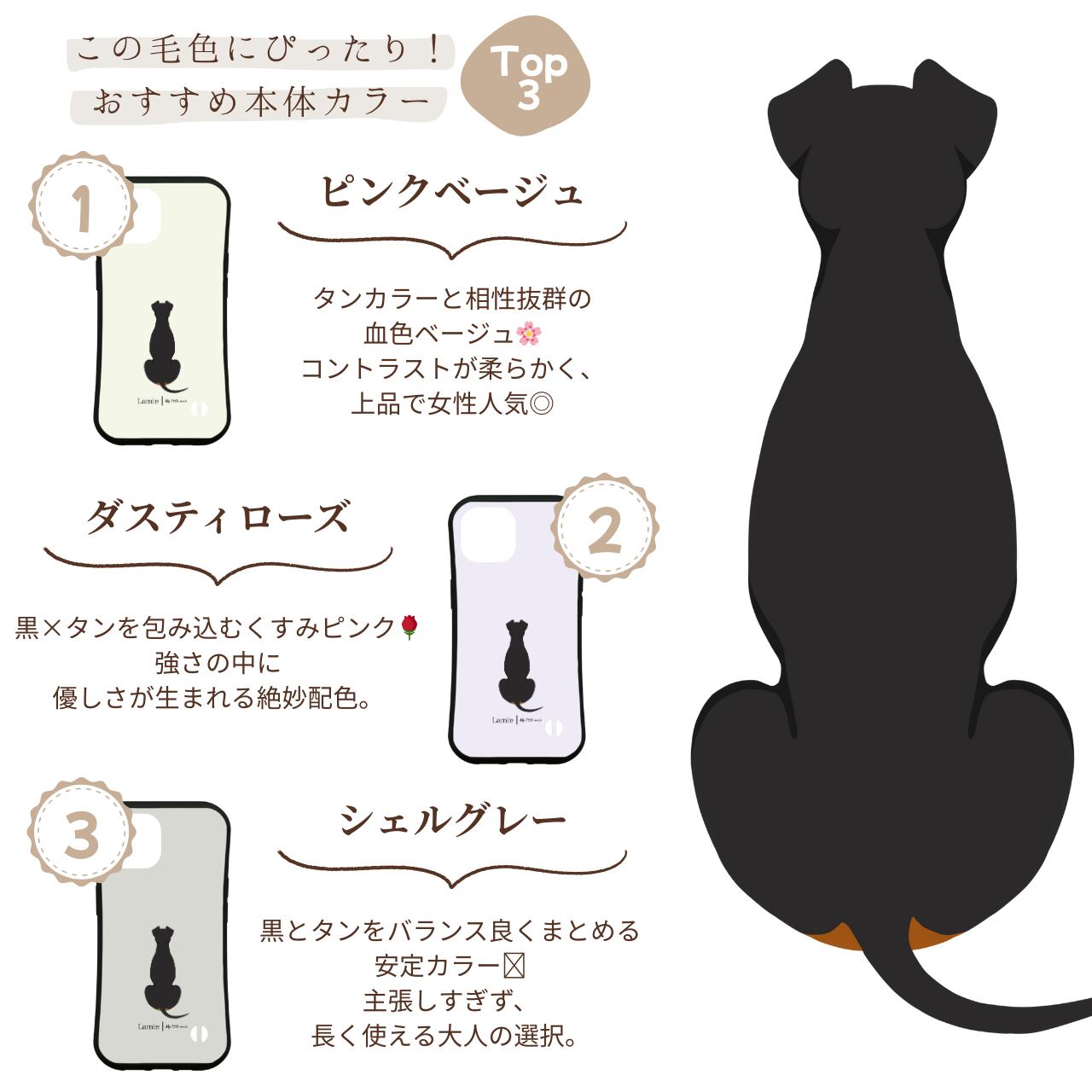 【ドーベルマン / ナチュラルイヤー&ナチュラルテイル(垂れ耳&長い尾)の後ろ姿を描いた、ナチュラルデザインのスマホケース】