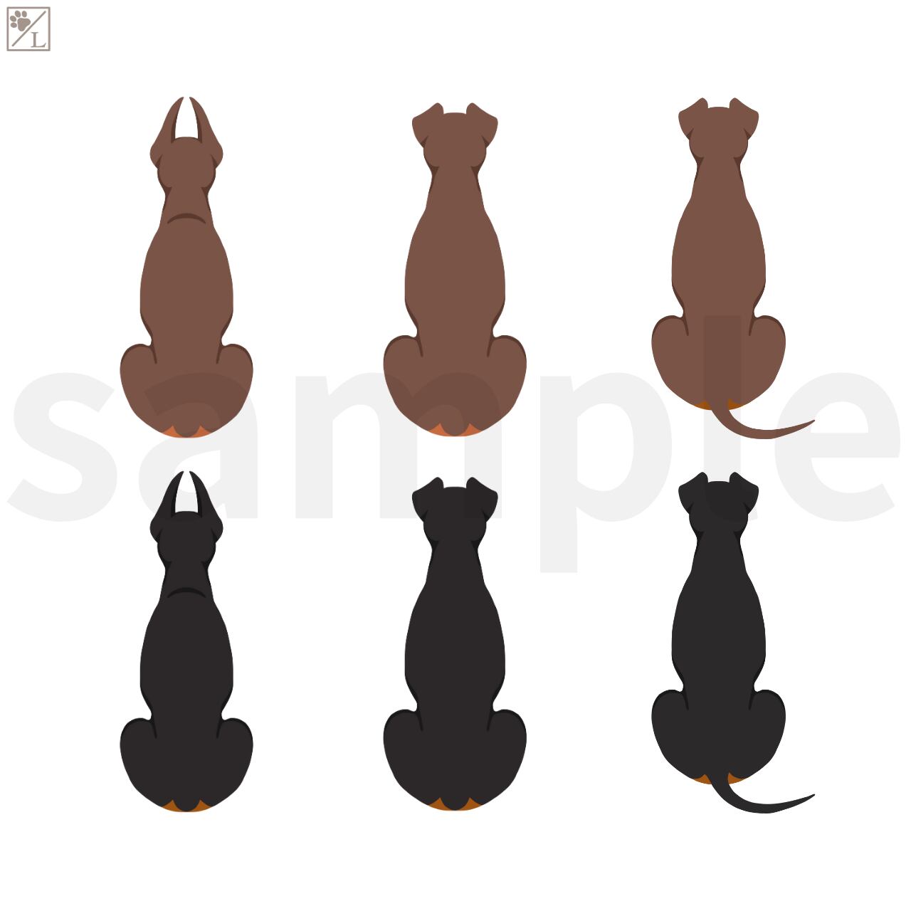人気犬種「ドーベルマン」のうしろ姿をやさしいタッチでデザイン。