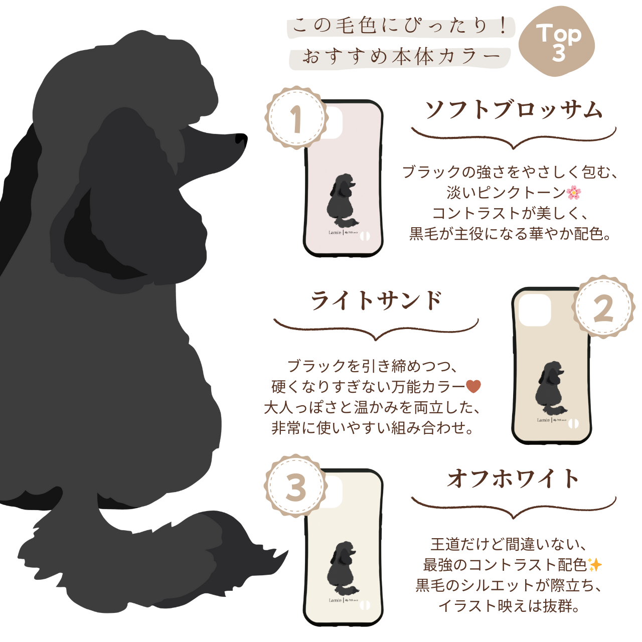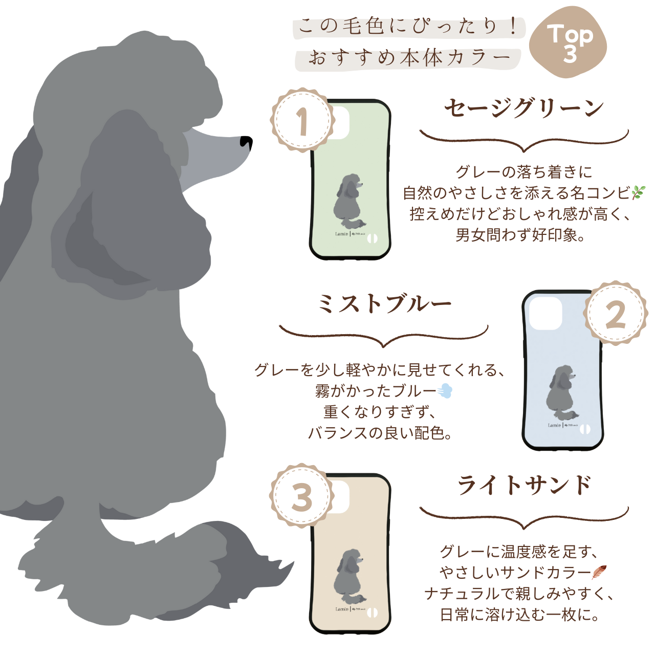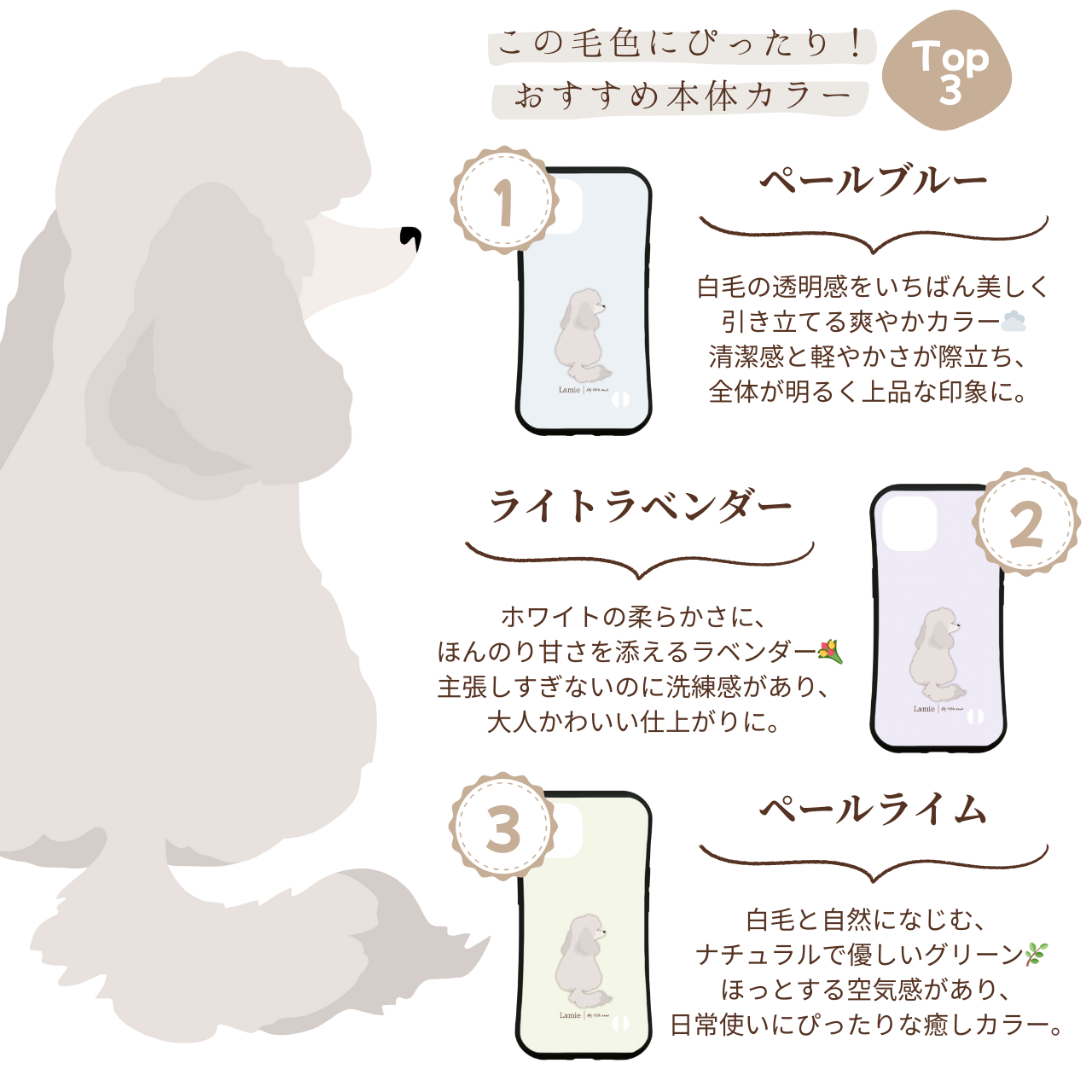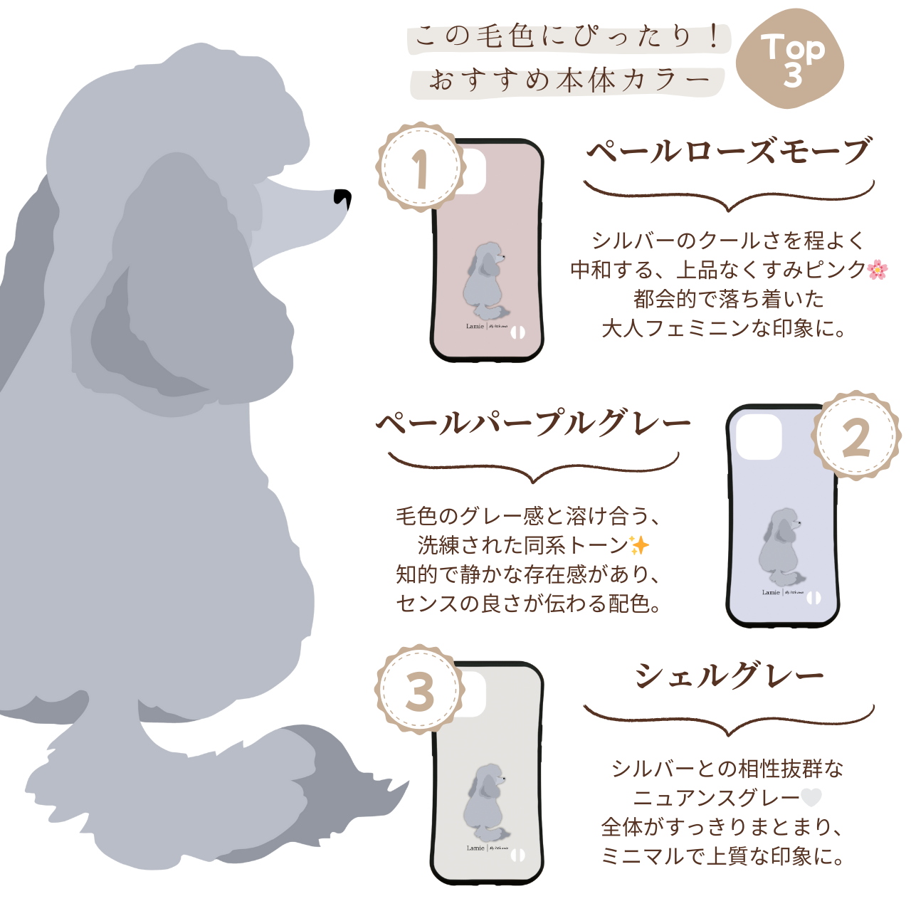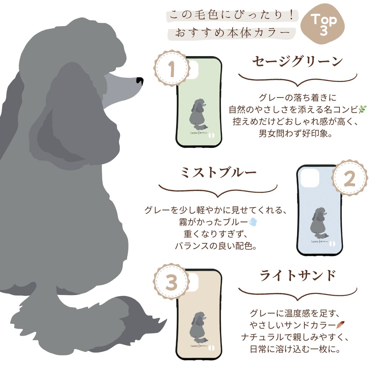 【プードル】トイプードル ミニチュアプードル ミディアムプードル スタンダードプードル スマホケース|iPhone全機種対応/選べる16色&犬の後ろ姿デザイン