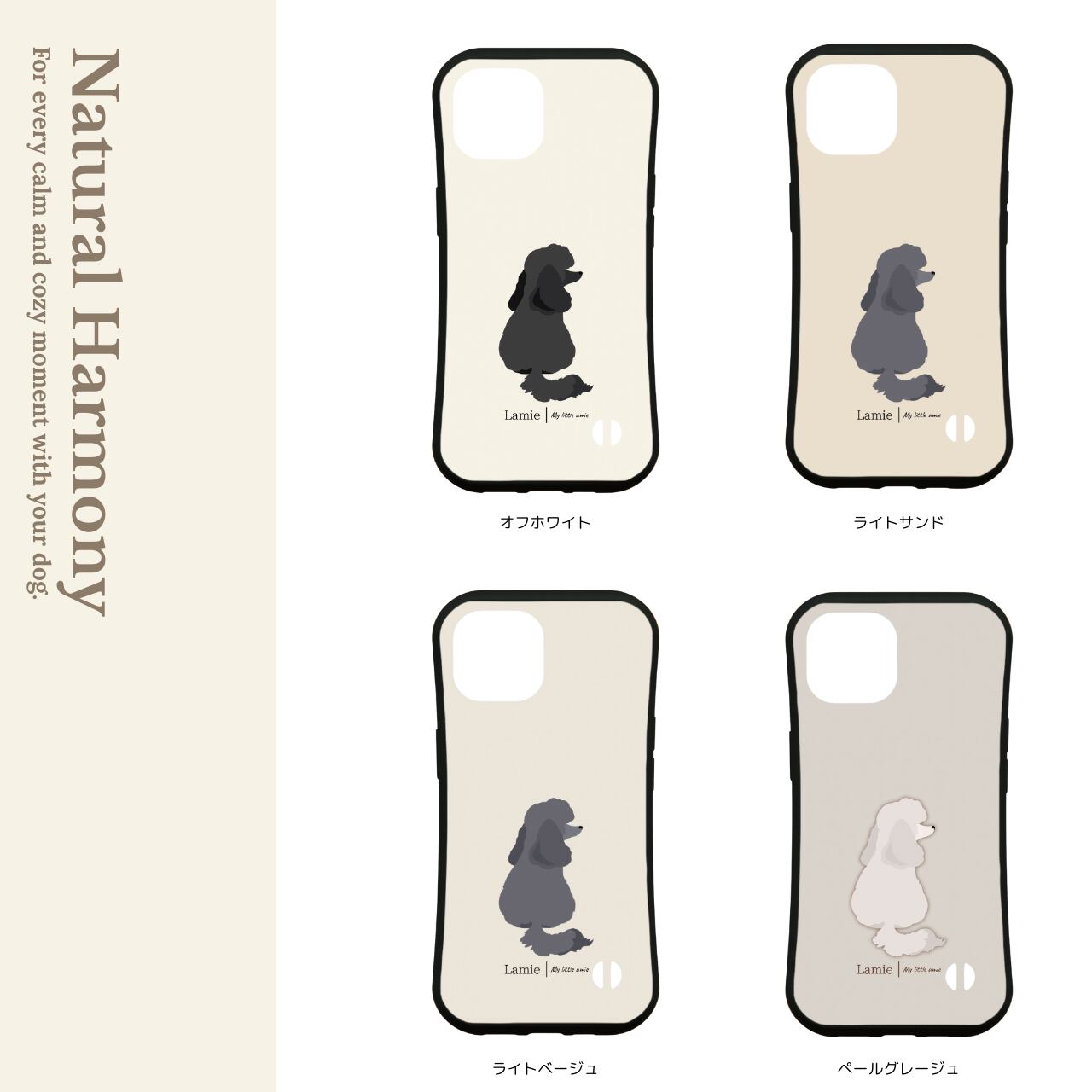 【プードルの後ろ姿を描いた、ナチュラルデザインのスマホケース】