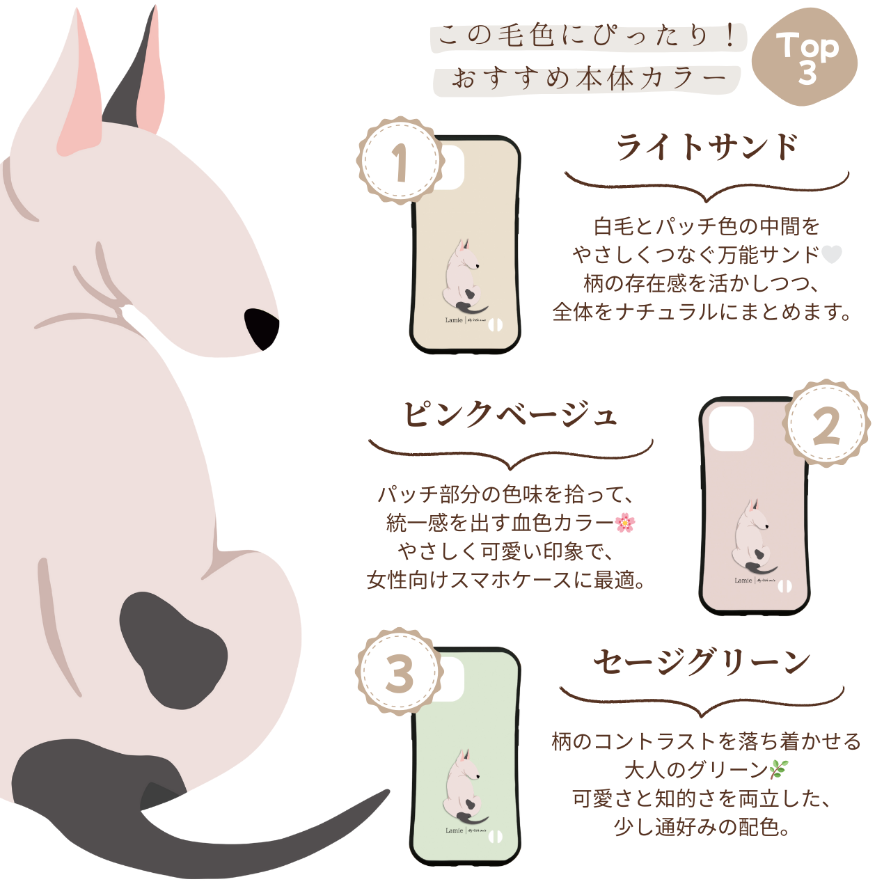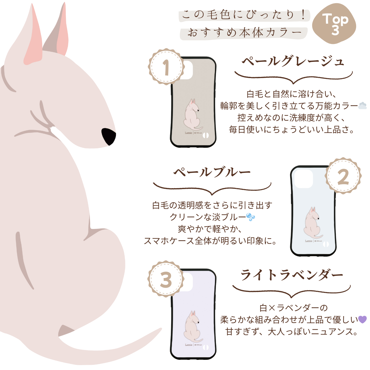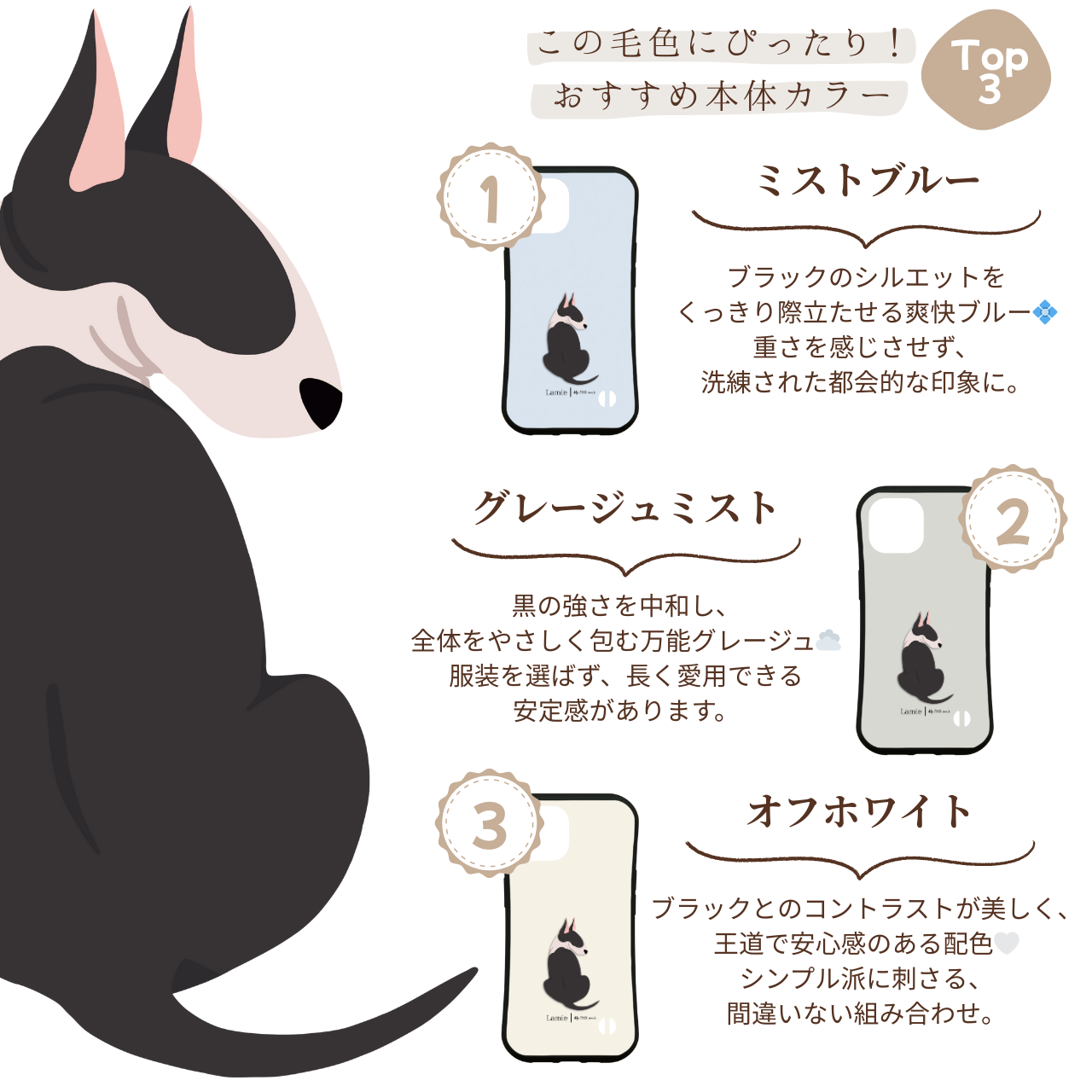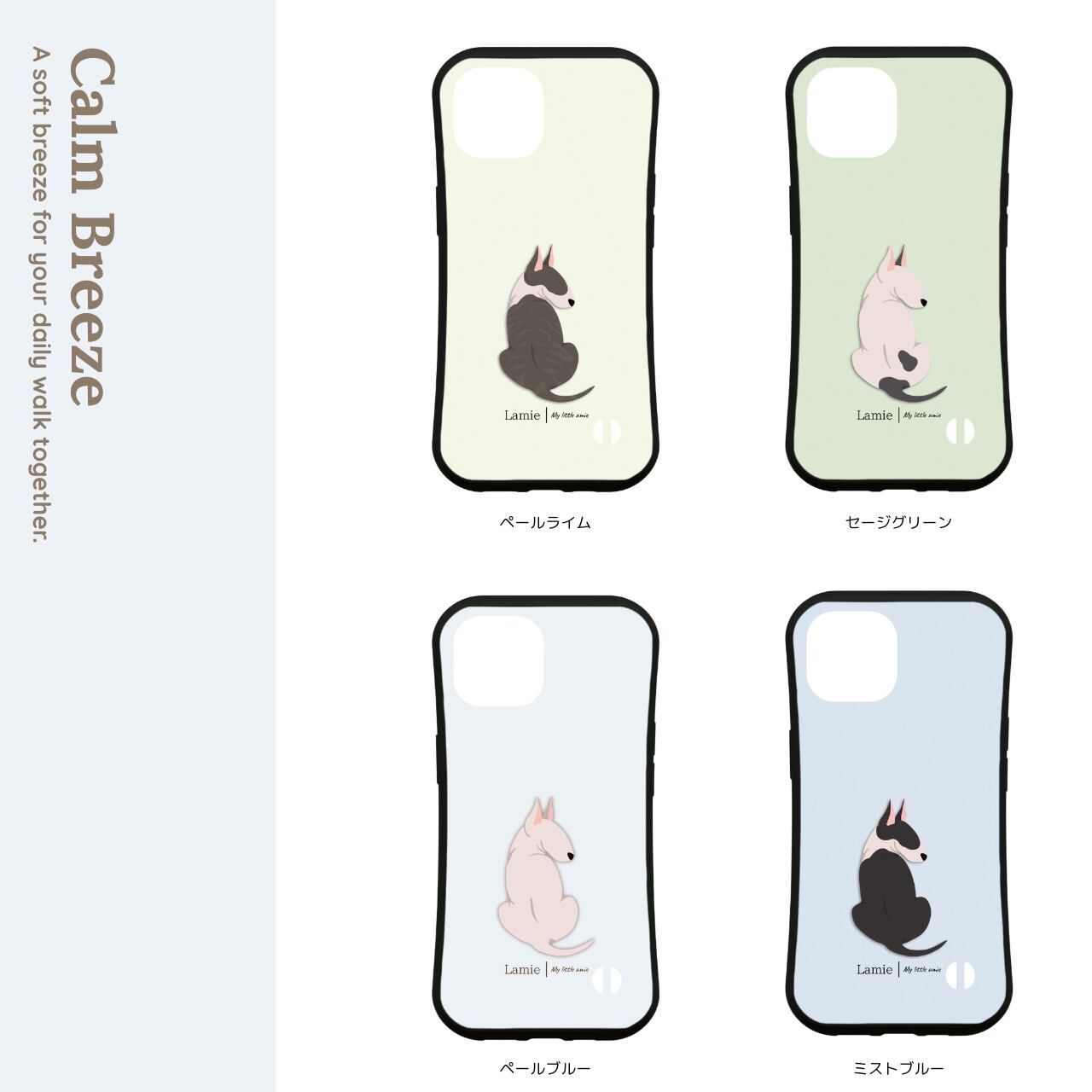「ブルテリア」のうしろ姿をやさしいタッチでデザイン。