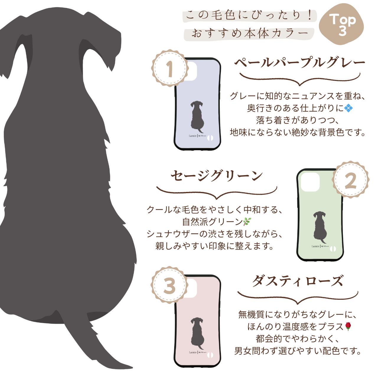 【ミニチュアシュナウザー】シュナウザー スマホケース|iPhone全機種対応/選べる16色&犬の後ろ姿デザイン