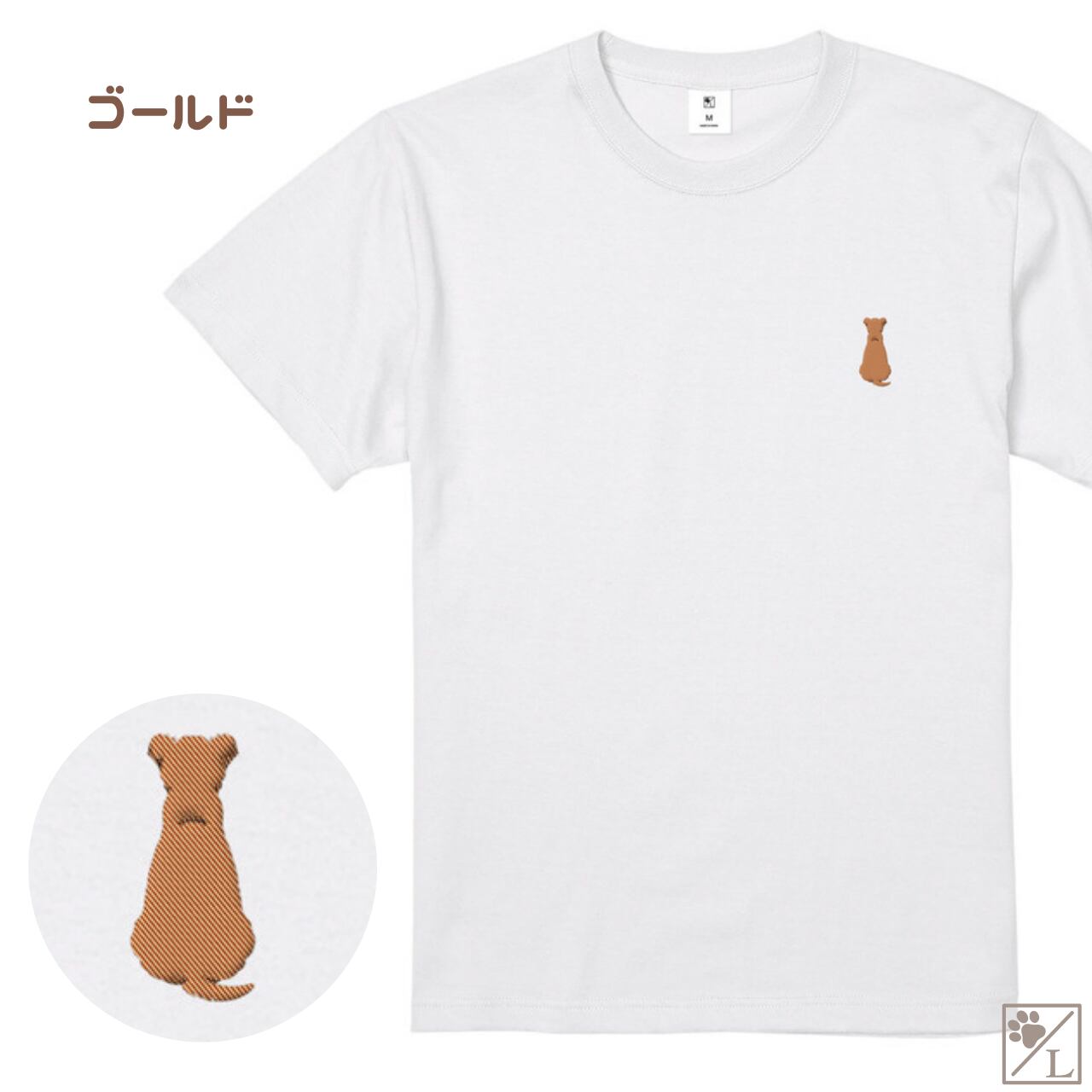 【アイリッシュソフトコーテッドウィートンテリア】ウィートン おすわり犬の後ろ姿 刺繍ワンポイントTシャツ|ユニセックス|オリジナルデザイン