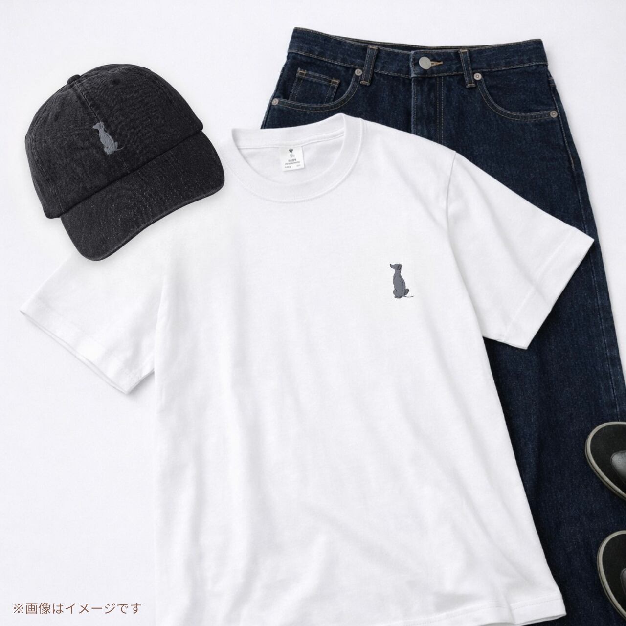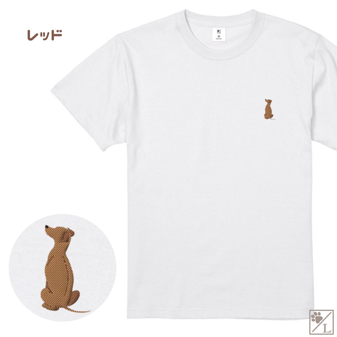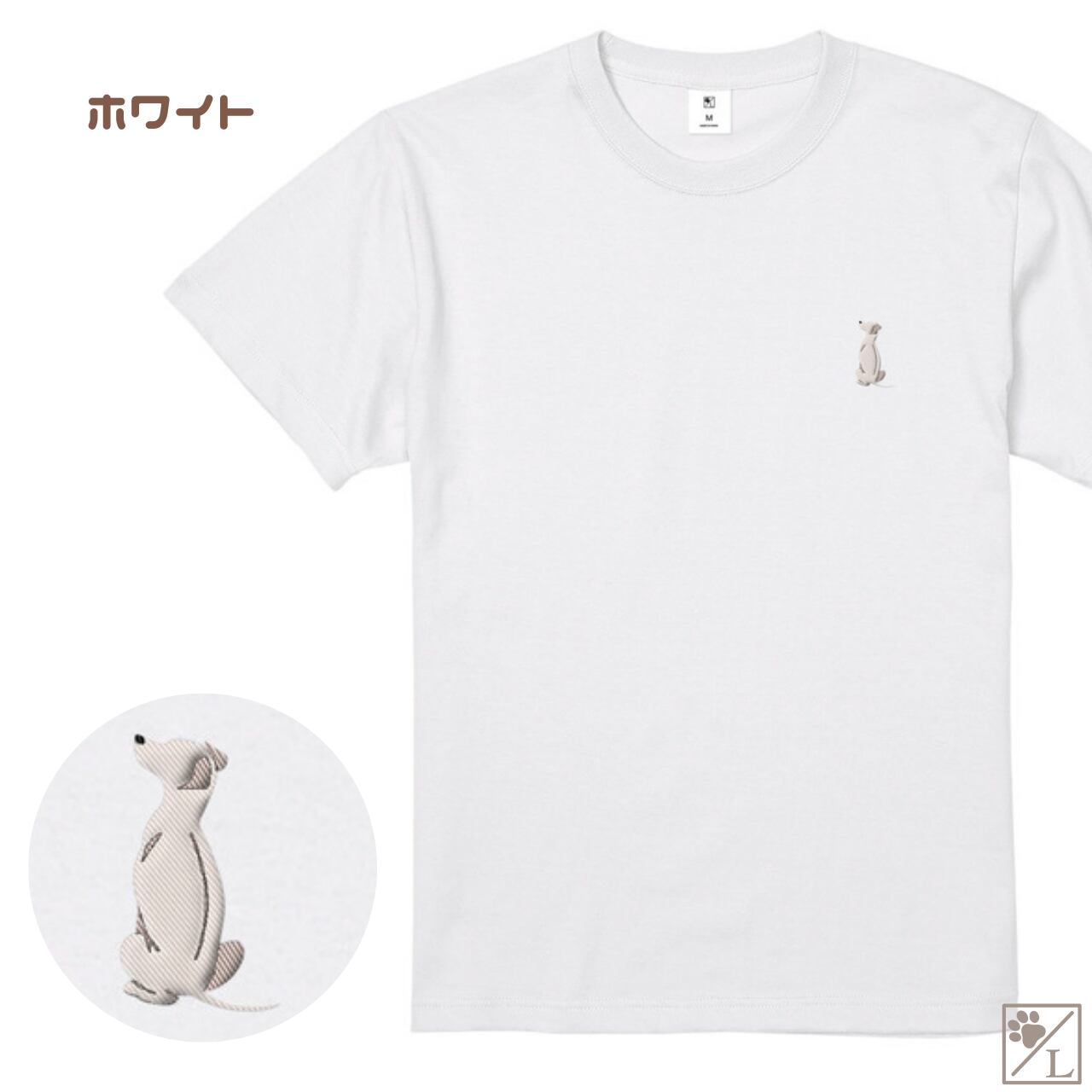 【イタリアングレーハウンド】イタグレ おすわり犬の後ろ姿 刺繍ワンポイントTシャツ|ユニセックス|オリジナルデザイン