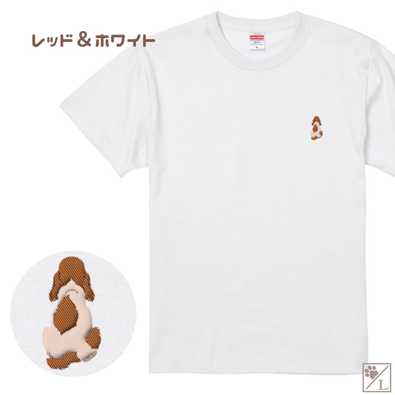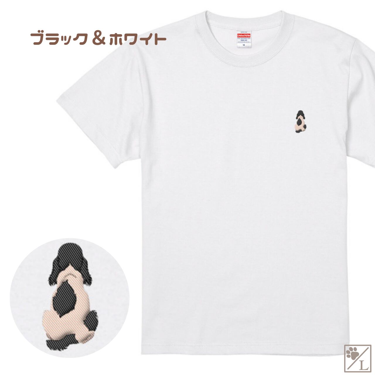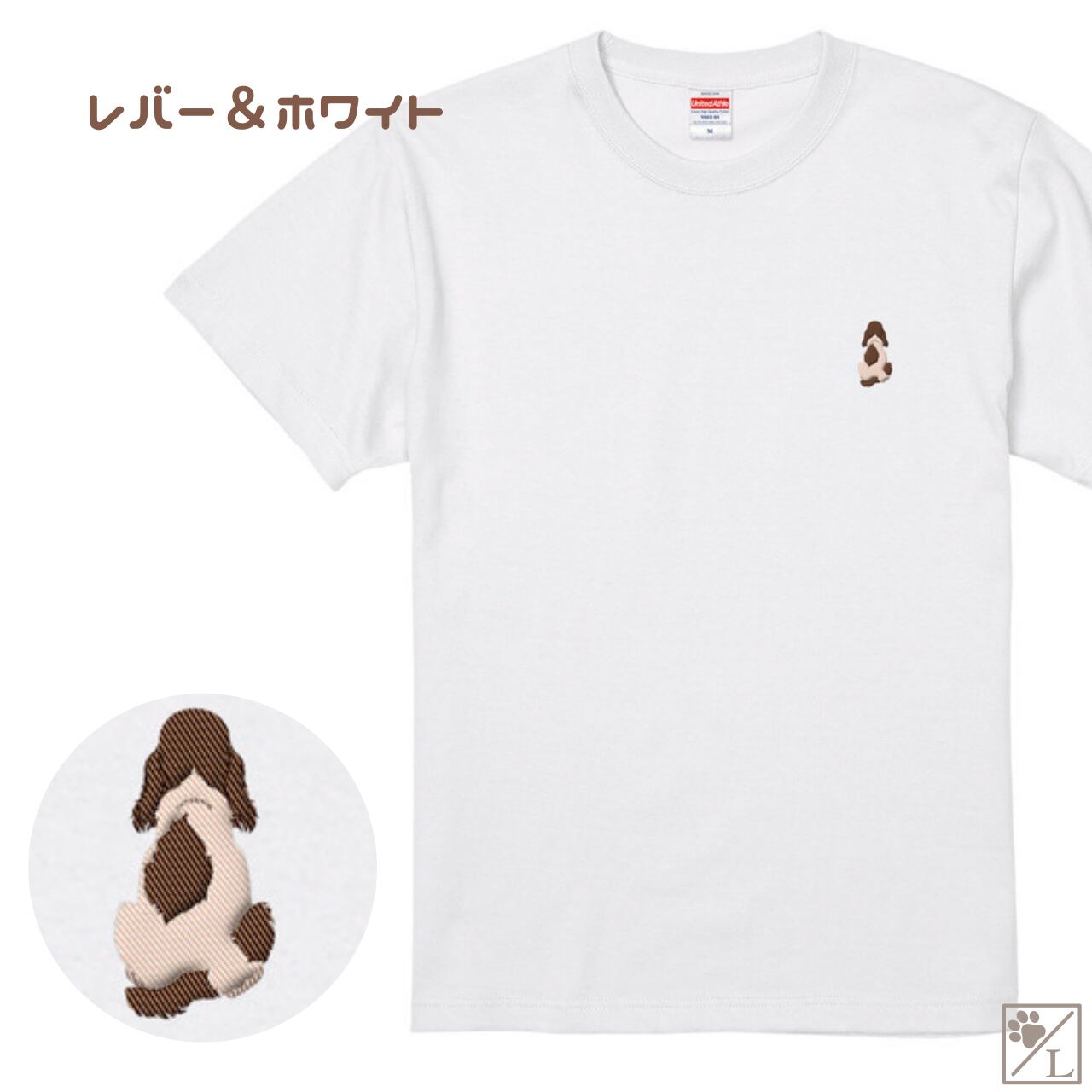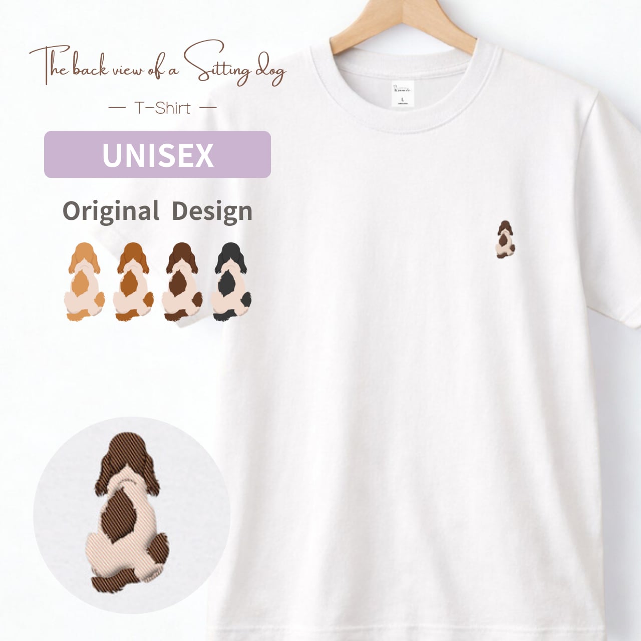 【イングリッシュコッカースパニエル】イングリッシュコッカー おすわり犬の後ろ姿 刺繍ワンポイントTシャツ|ユニセックス|オリジナルデザイン
