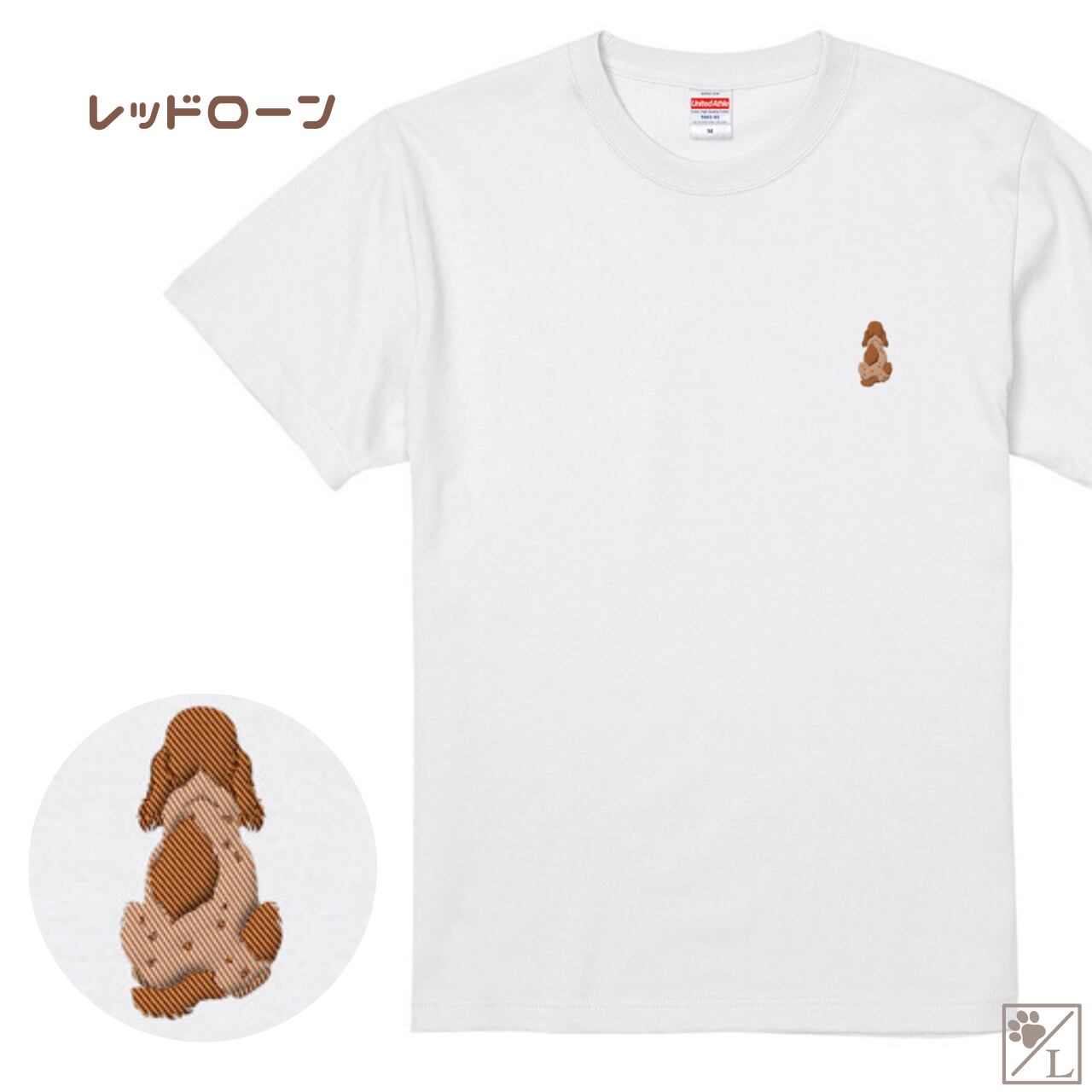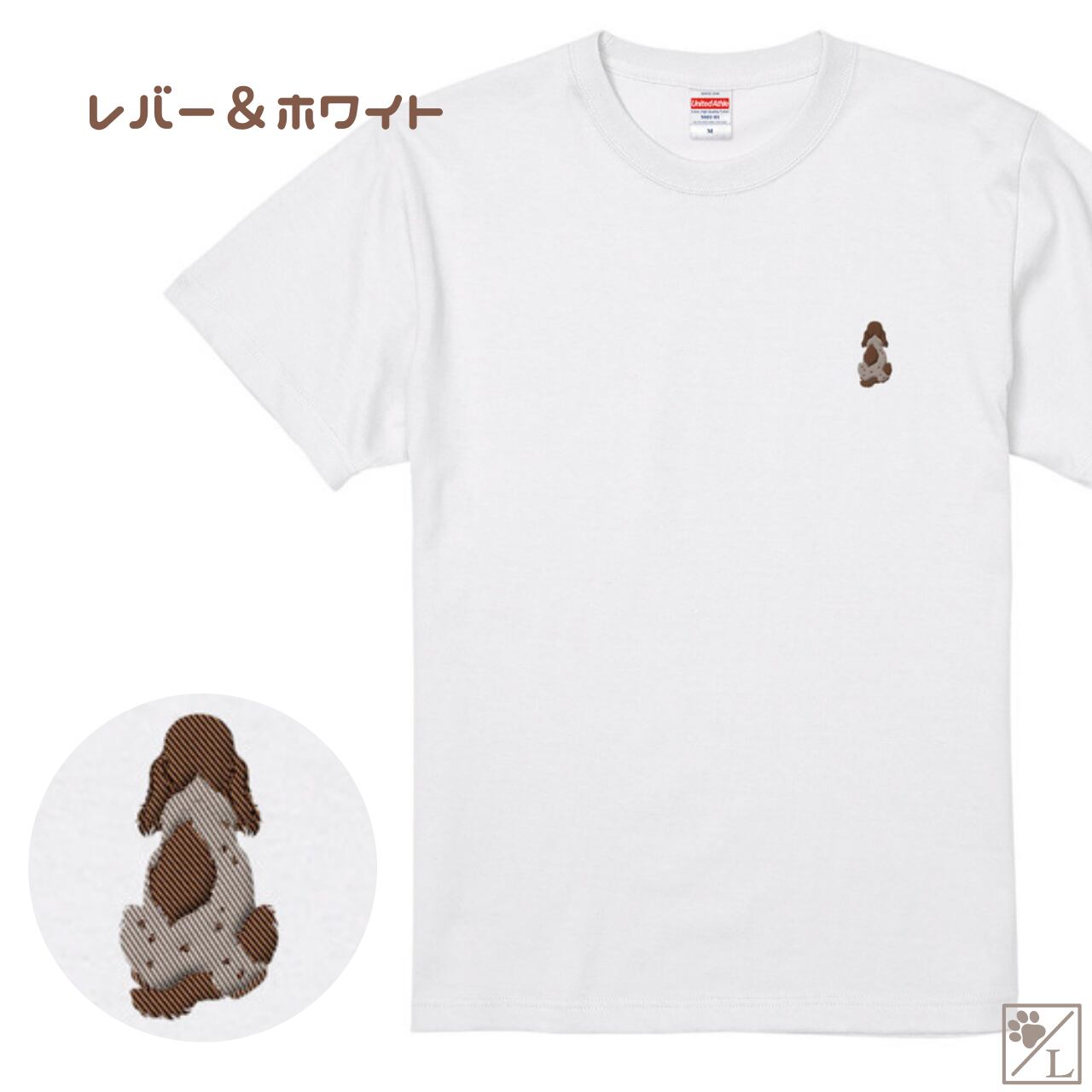 【イングリッシュコッカースパニエル】イングリッシュコッカー おすわり犬の後ろ姿 刺繍ワンポイントTシャツ|ユニセックス|オリジナルデザイン