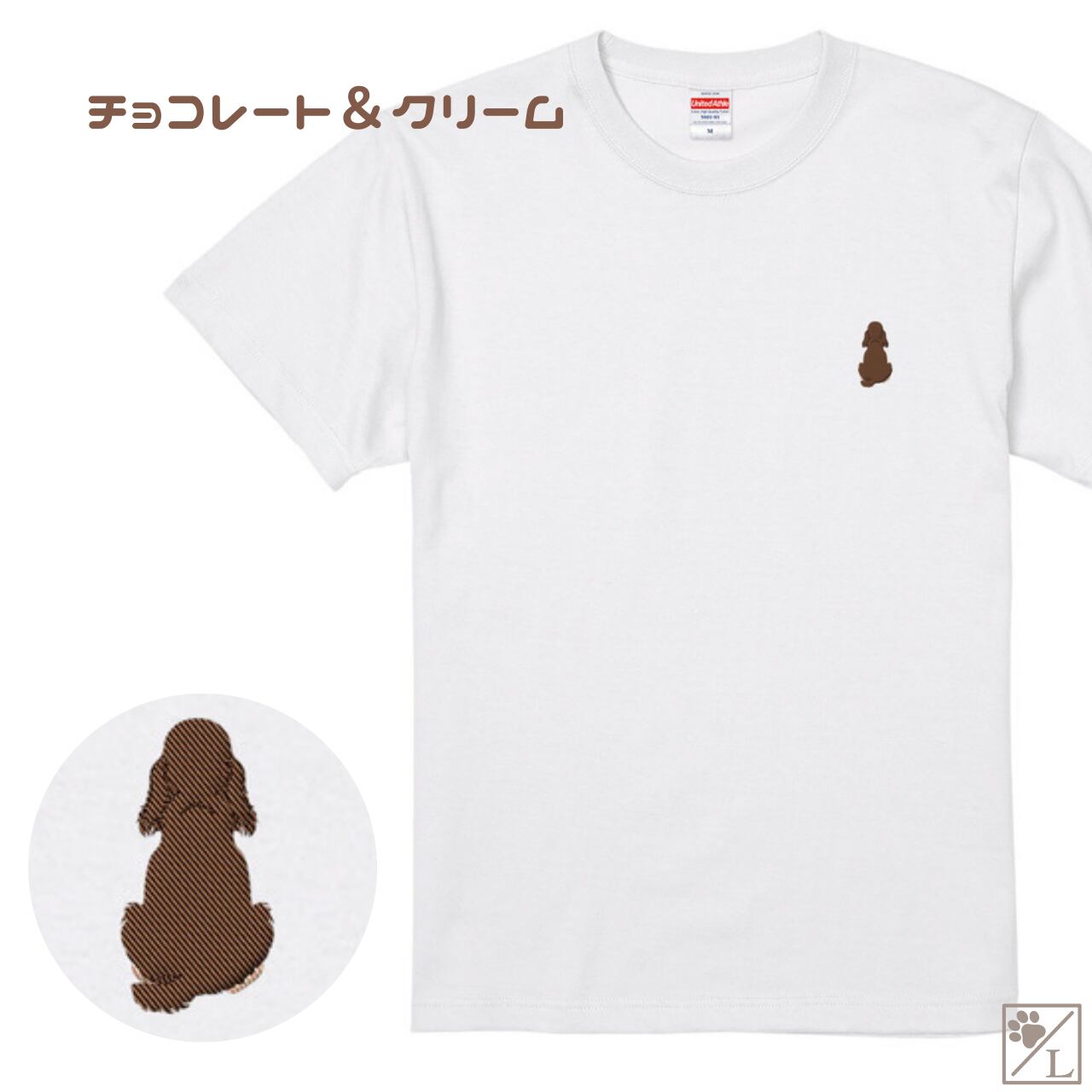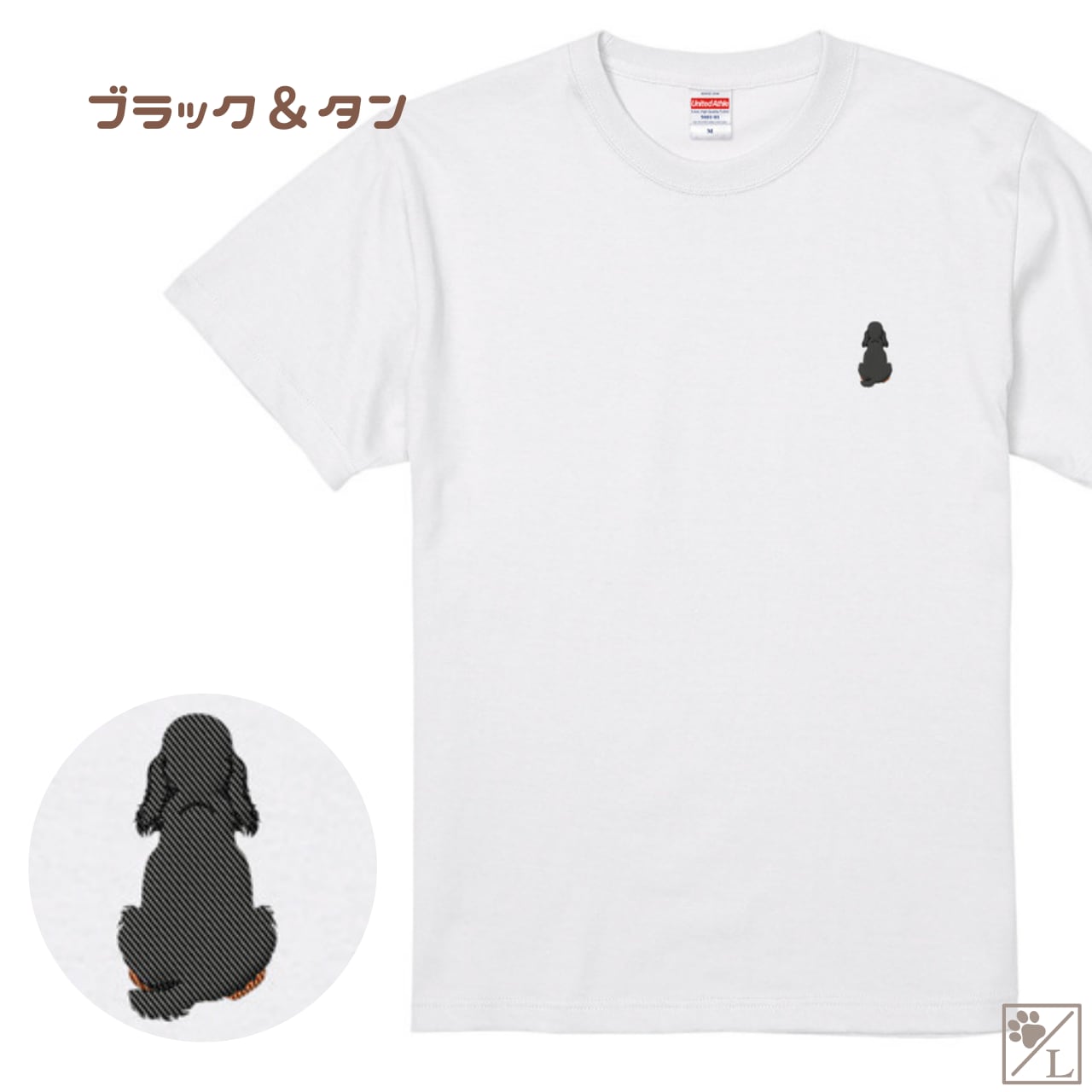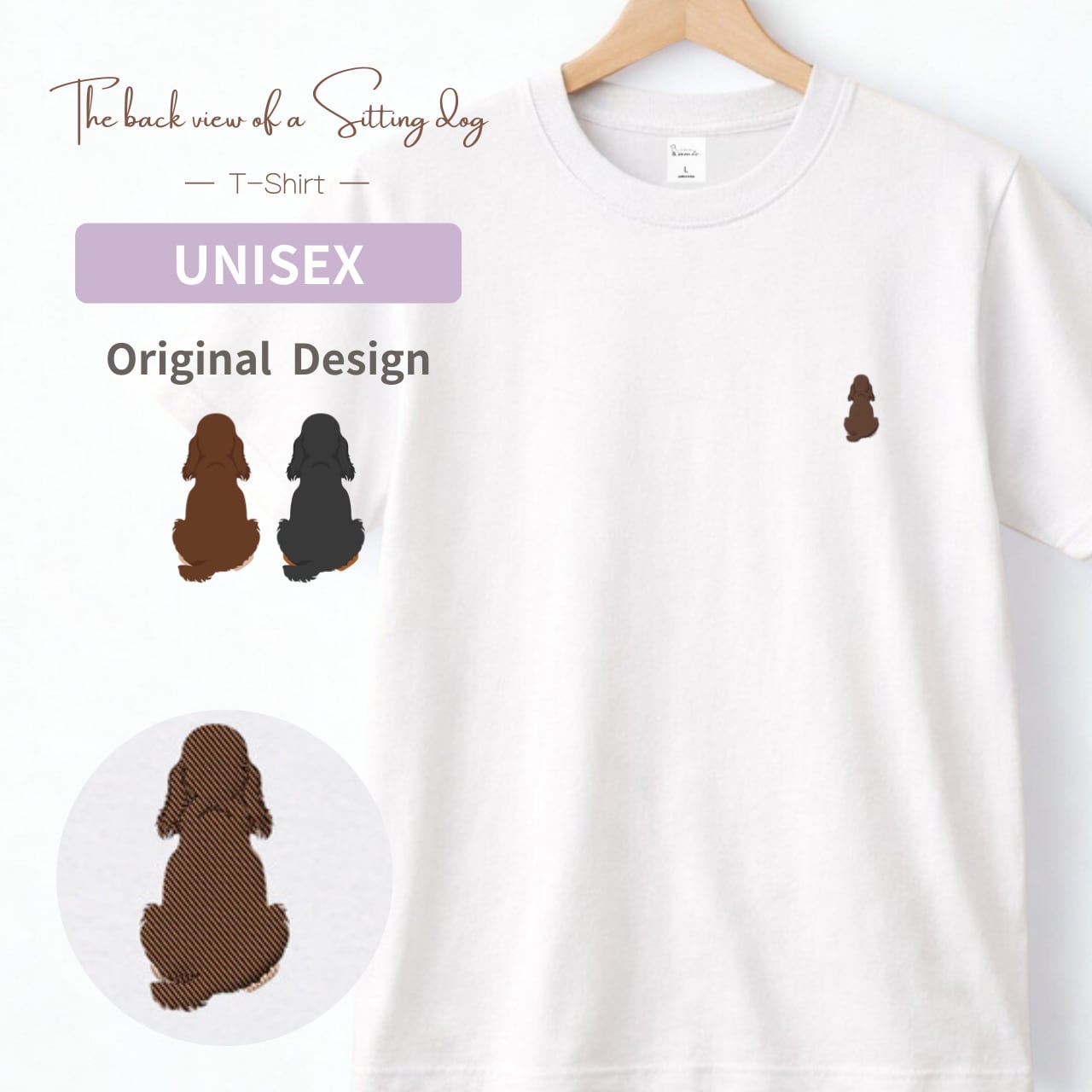 【イングリッシュコッカースパニエル】イングリッシュコッカー おすわり犬の後ろ姿 刺繍ワンポイントTシャツ|ユニセックス|オリジナルデザイン
