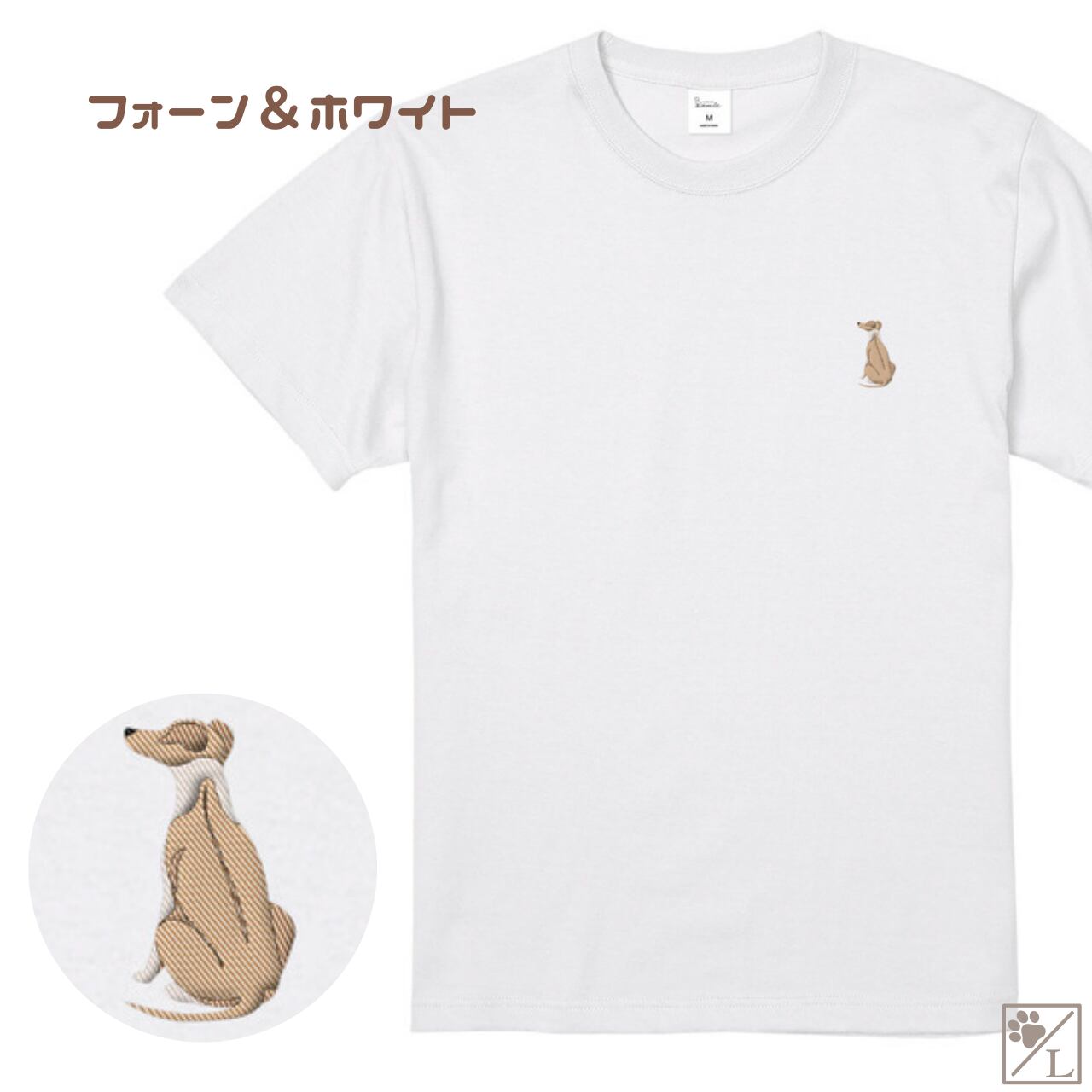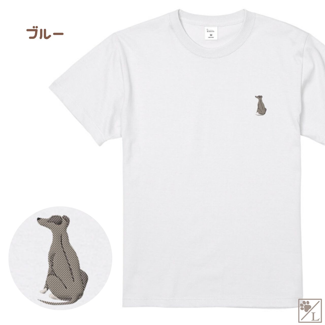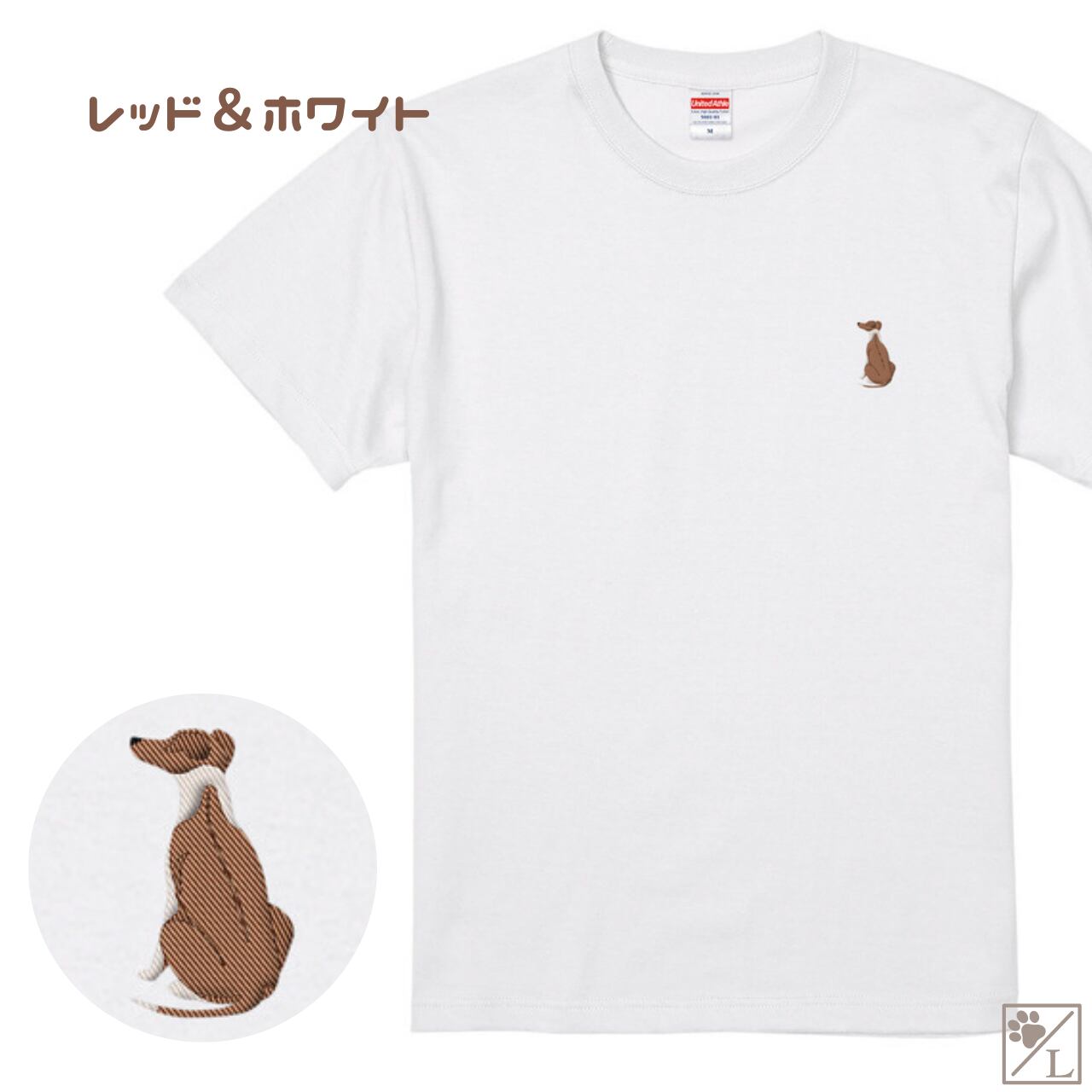 【ウィペット】おすわり犬の後ろ姿 刺繍ワンポイントTシャツ|ユニセックス|オリジナルデザイン