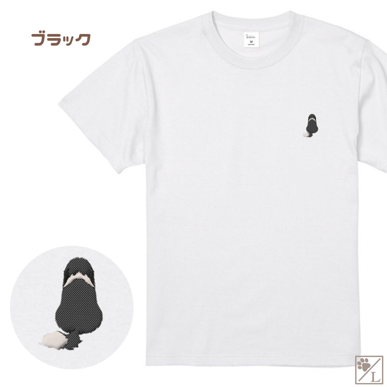 【オールドイングリッシュシープドッグ】オールド おすわり犬の後ろ姿 刺繍ワンポイントTシャツ|ユニセックス|オリジナルデザイン