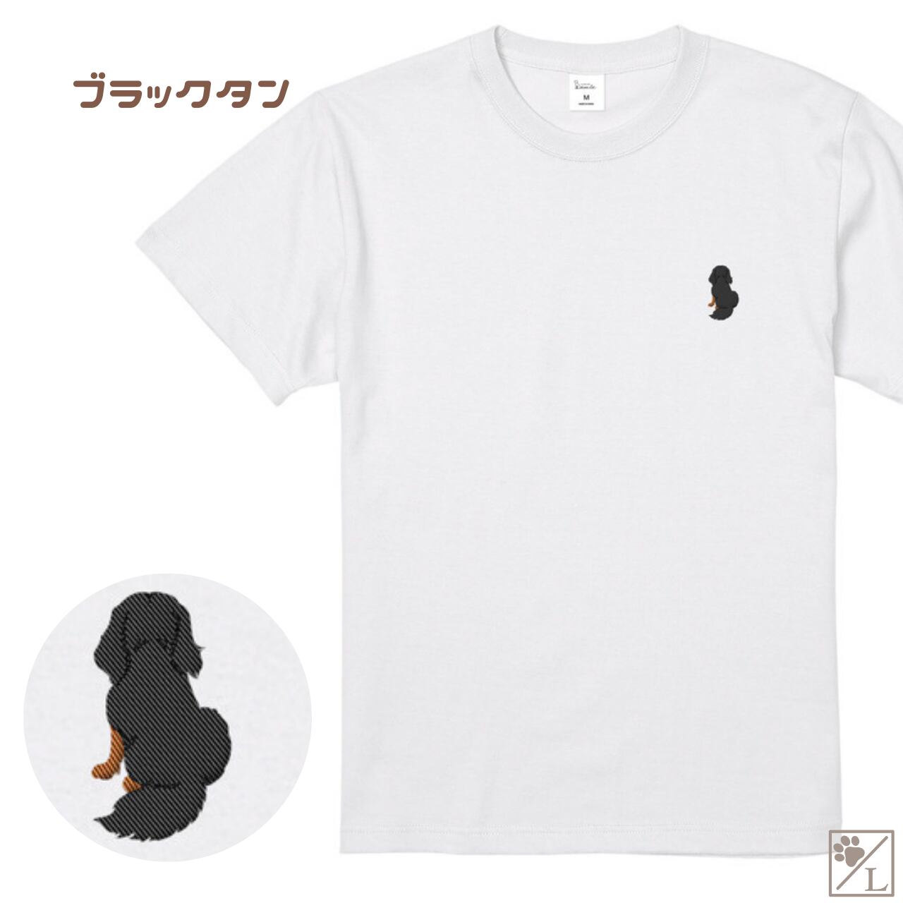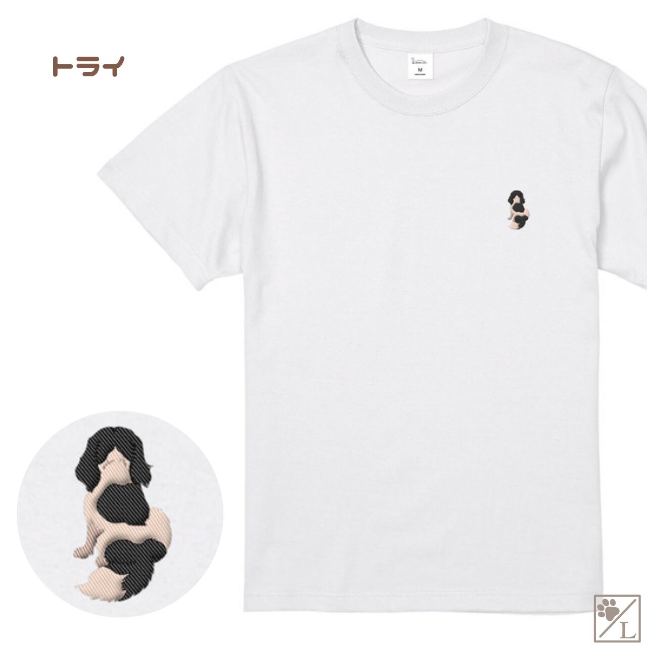 【キャバリアキングチャールズスパニエル】キャバリア おすわり犬の後ろ姿 刺繍ワンポイントTシャツ|ユニセックス|オリジナルデザイン