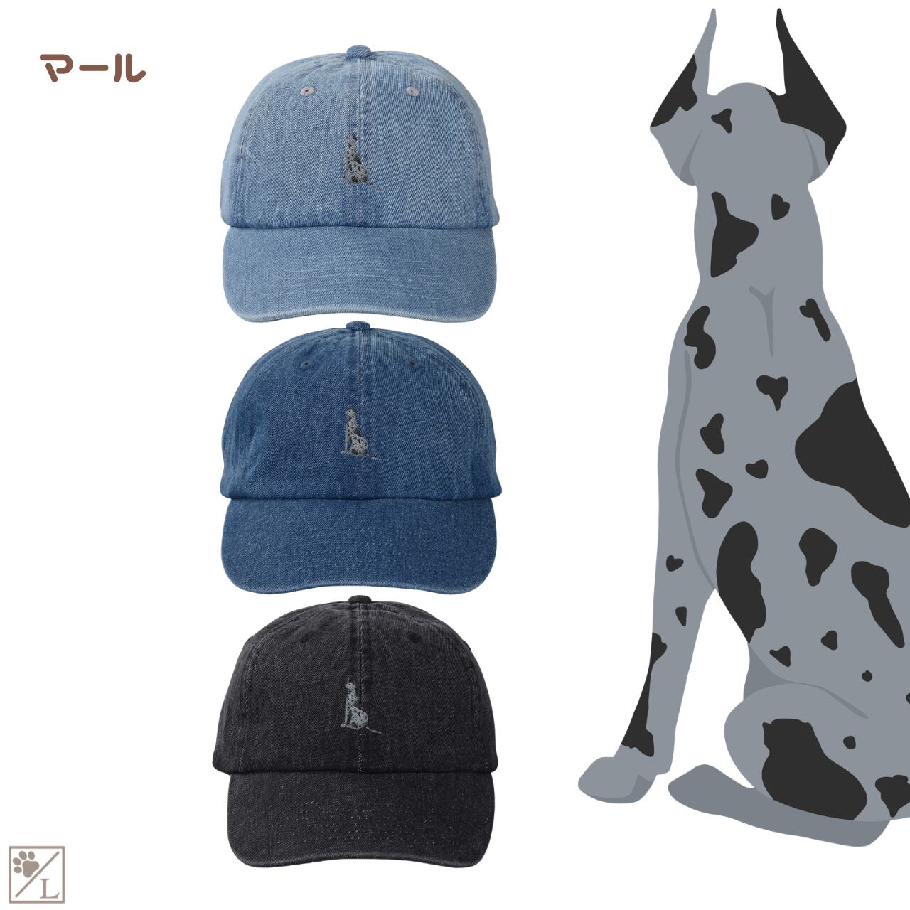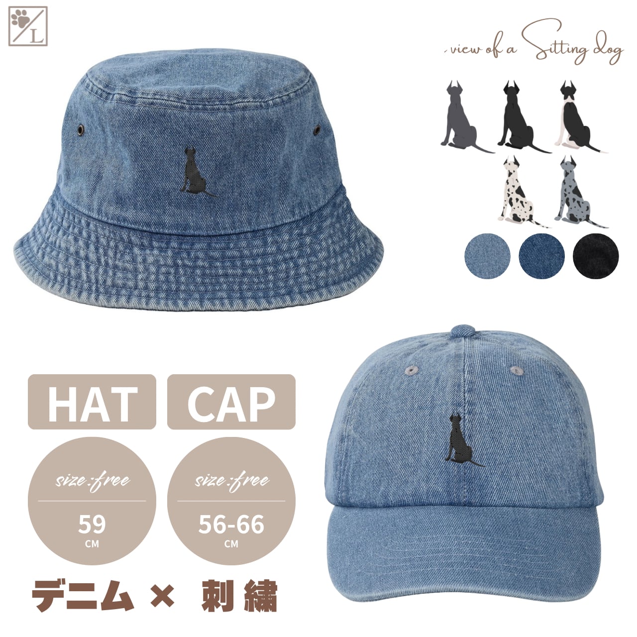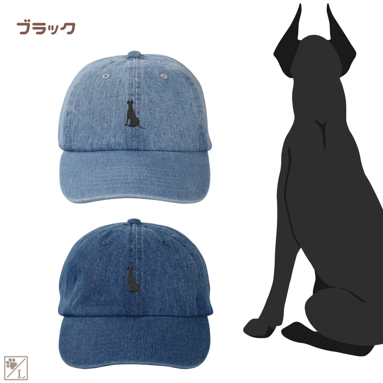 【グレートデーン】刺繍 犬の後ろ姿デニムキャップ・バケットハット|選べる3色|愛犬家に人気の帽子