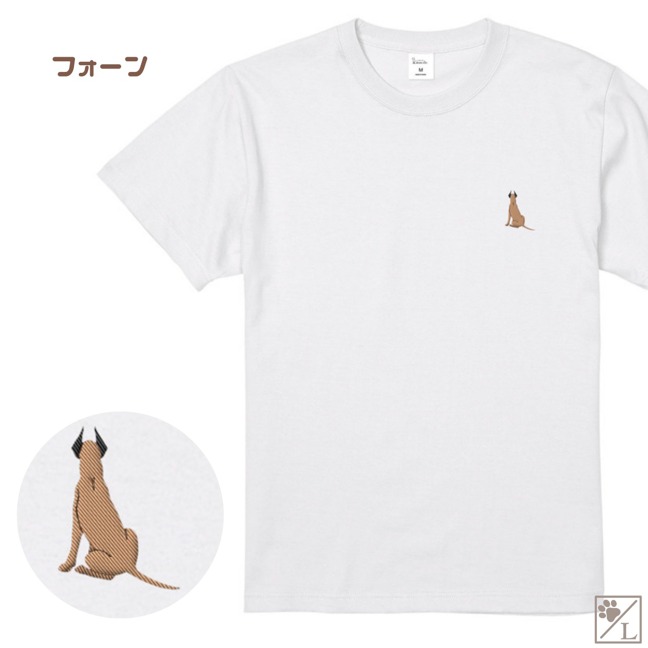 【グレートデーン】おすわり犬の後ろ姿 刺繍ワンポイントTシャツ|ユニセックス|オリジナルデザイン