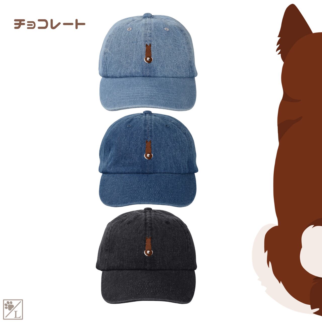 犬のおすわり後ろ姿を刺繍であしらった、シンプルで使いやすいデニムキャップ&ハットです。