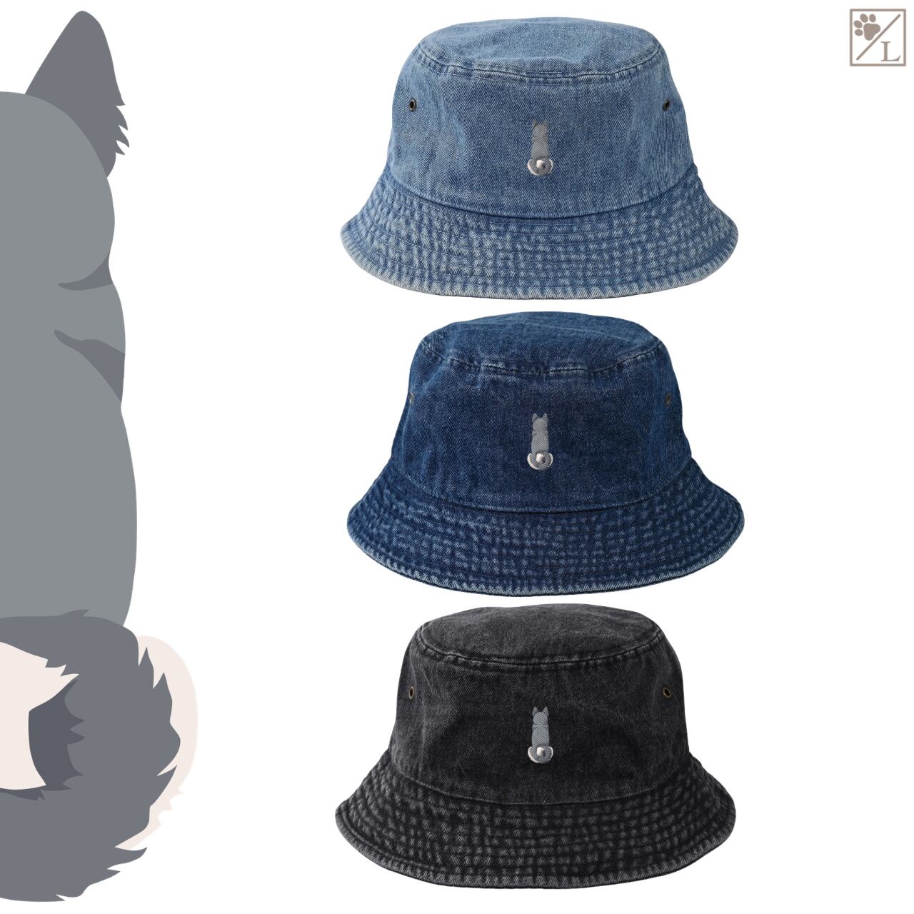 【シベリアンハスキー】ハスキー 刺繍 犬の後ろ姿デニムキャップ・バケットハット|選べる3色|愛犬家に人気の帽子