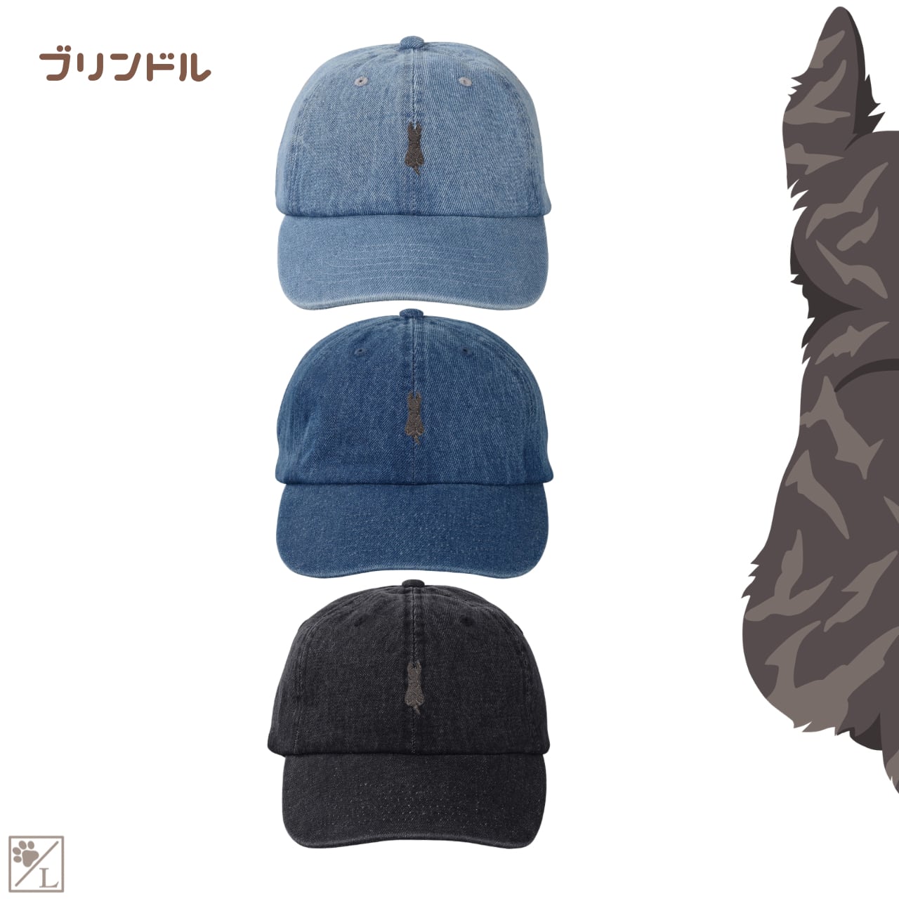 犬のおすわり後ろ姿を刺繍であしらった、シンプルで使いやすいデニムキャップ&ハットです。