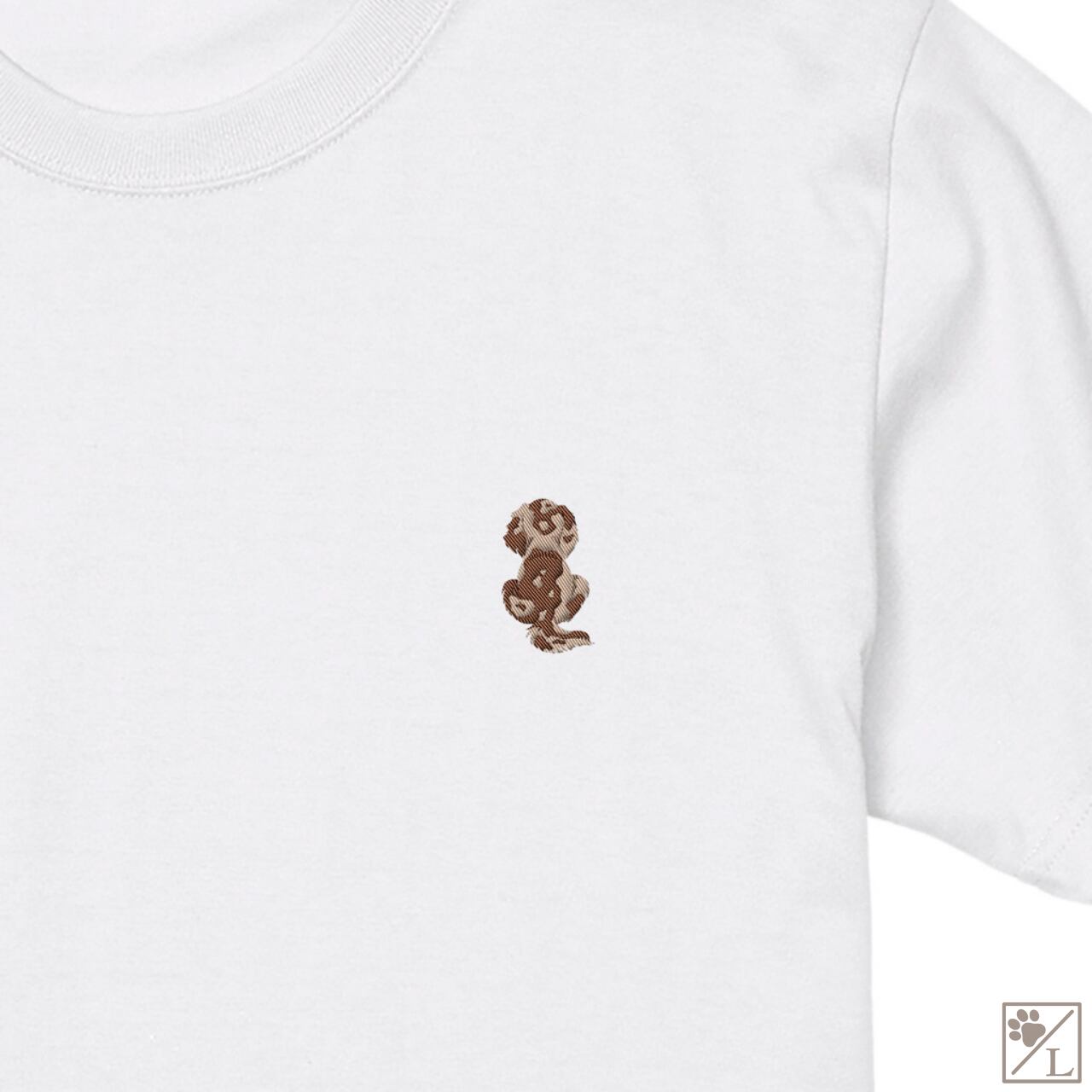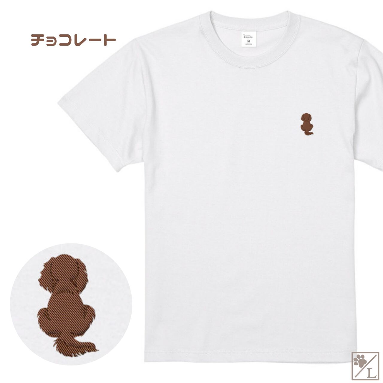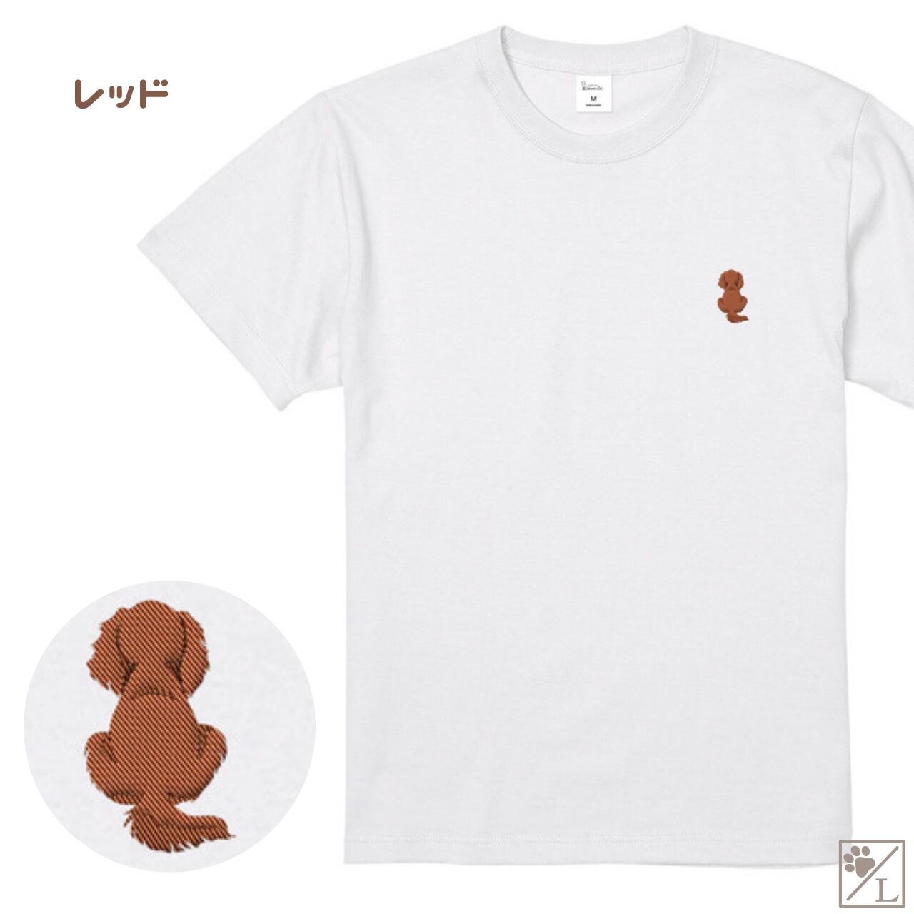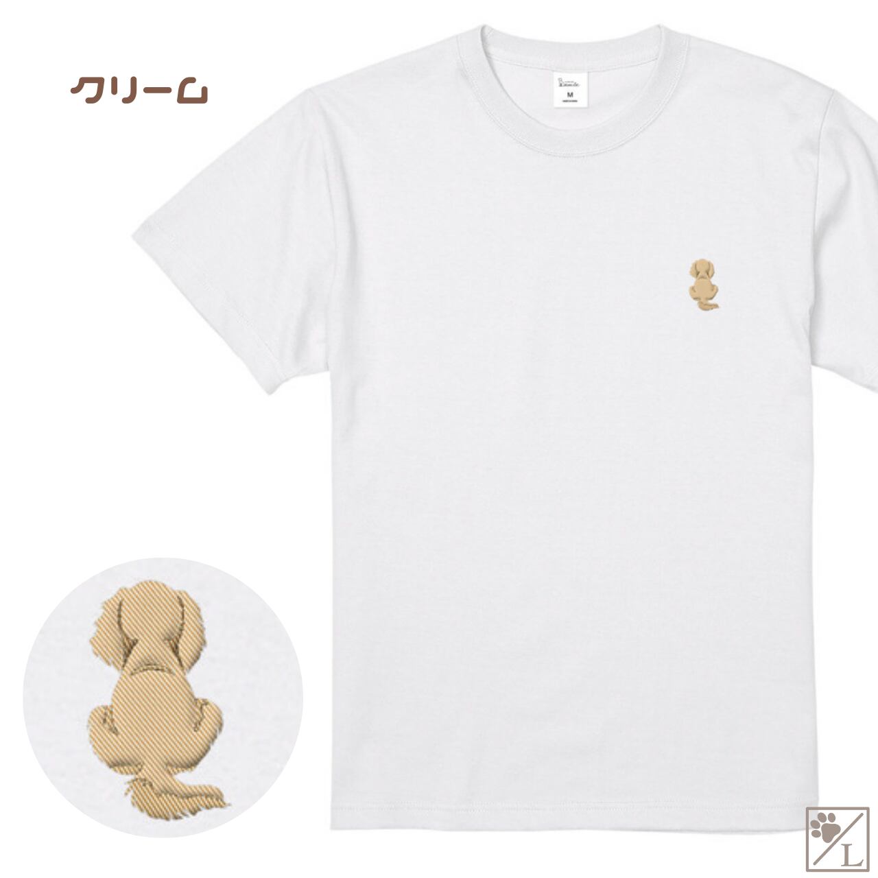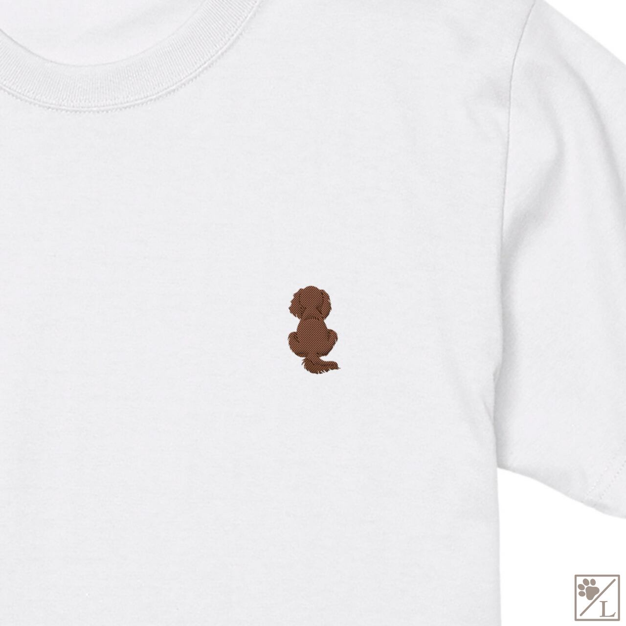 【ダックスフンド / ロング】ダックス おすわり犬の後ろ姿 刺繍ワンポイントTシャツ|ユニセックス|オリジナルデザイン