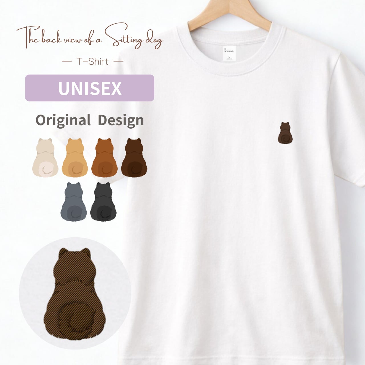 【チャウチャウ】おすわり犬の後ろ姿 刺繍ワンポイントTシャツ|ユニセックス|オリジナルデザイン
