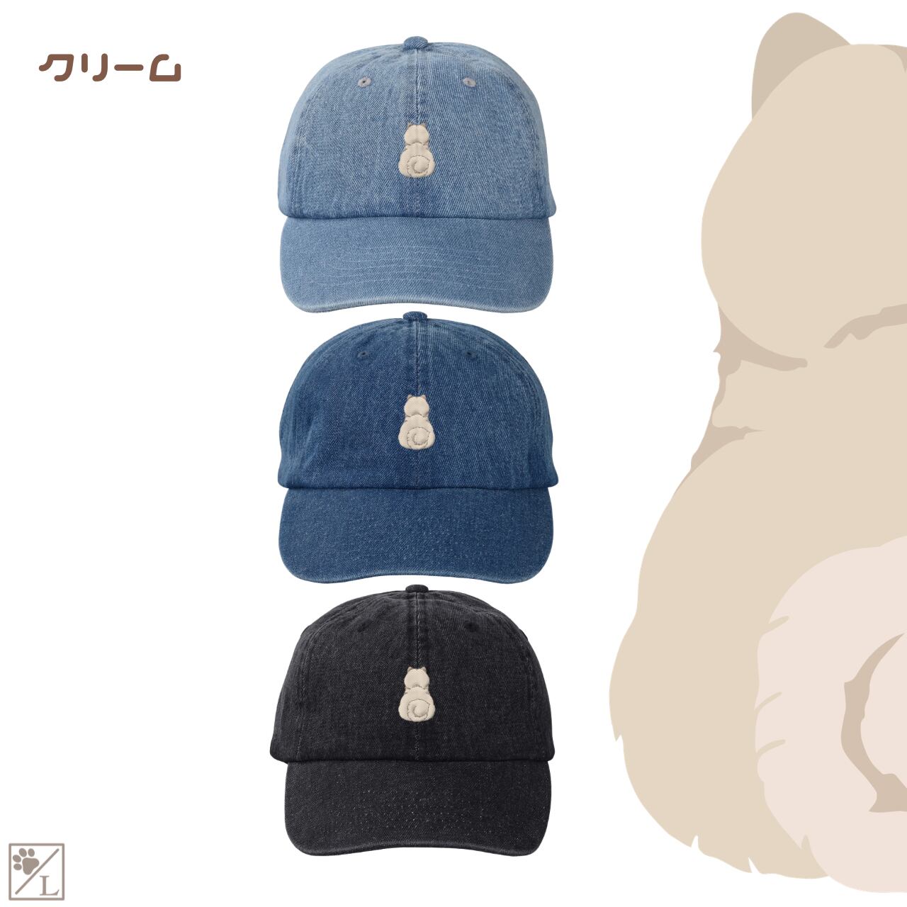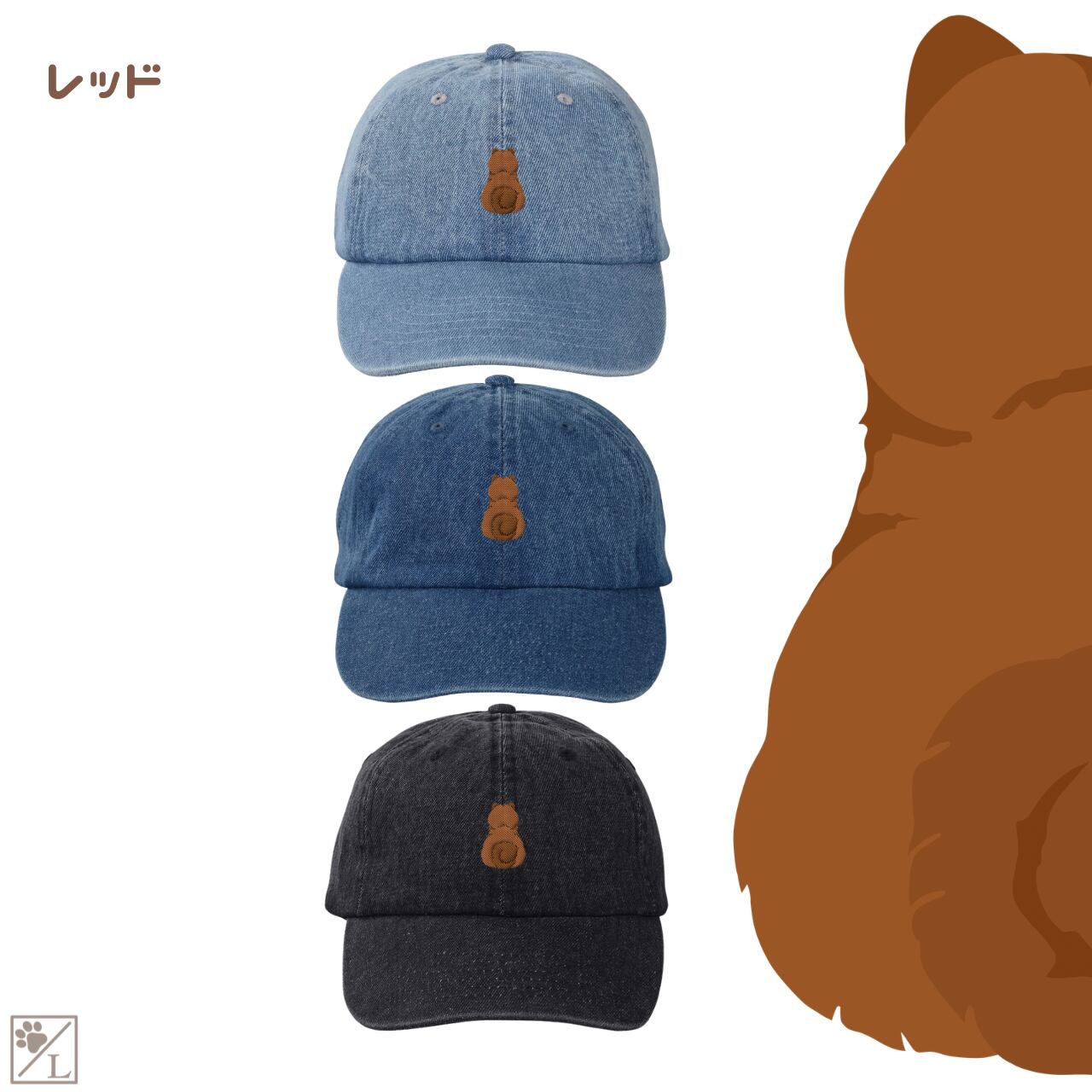 【チャウチャウ】刺繍 犬の後ろ姿デニムキャップ・バケットハット|選べる3色|愛犬家に人気の帽子