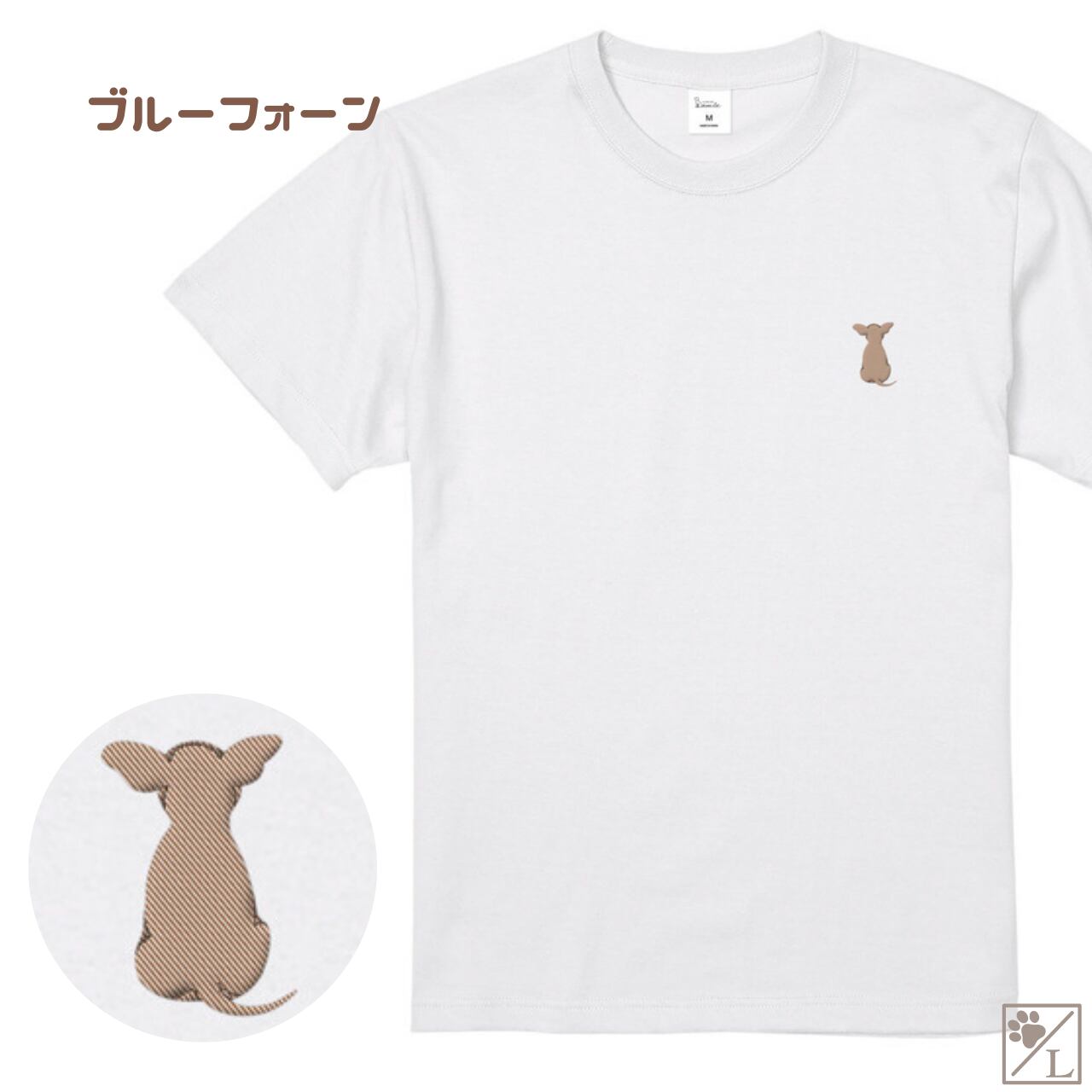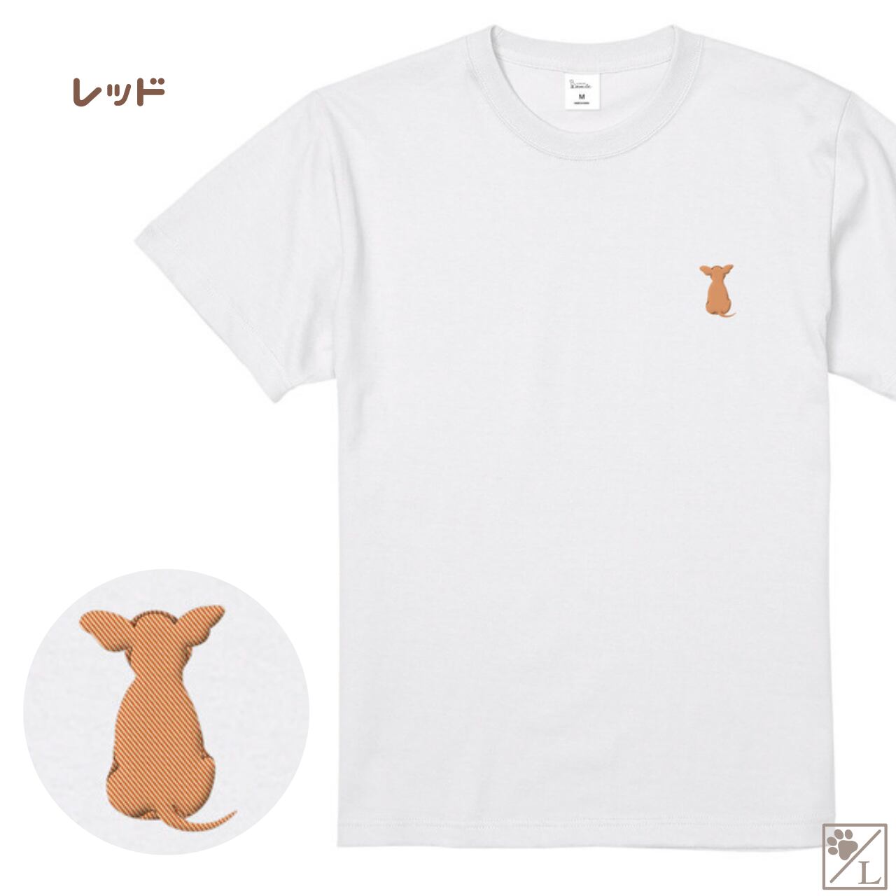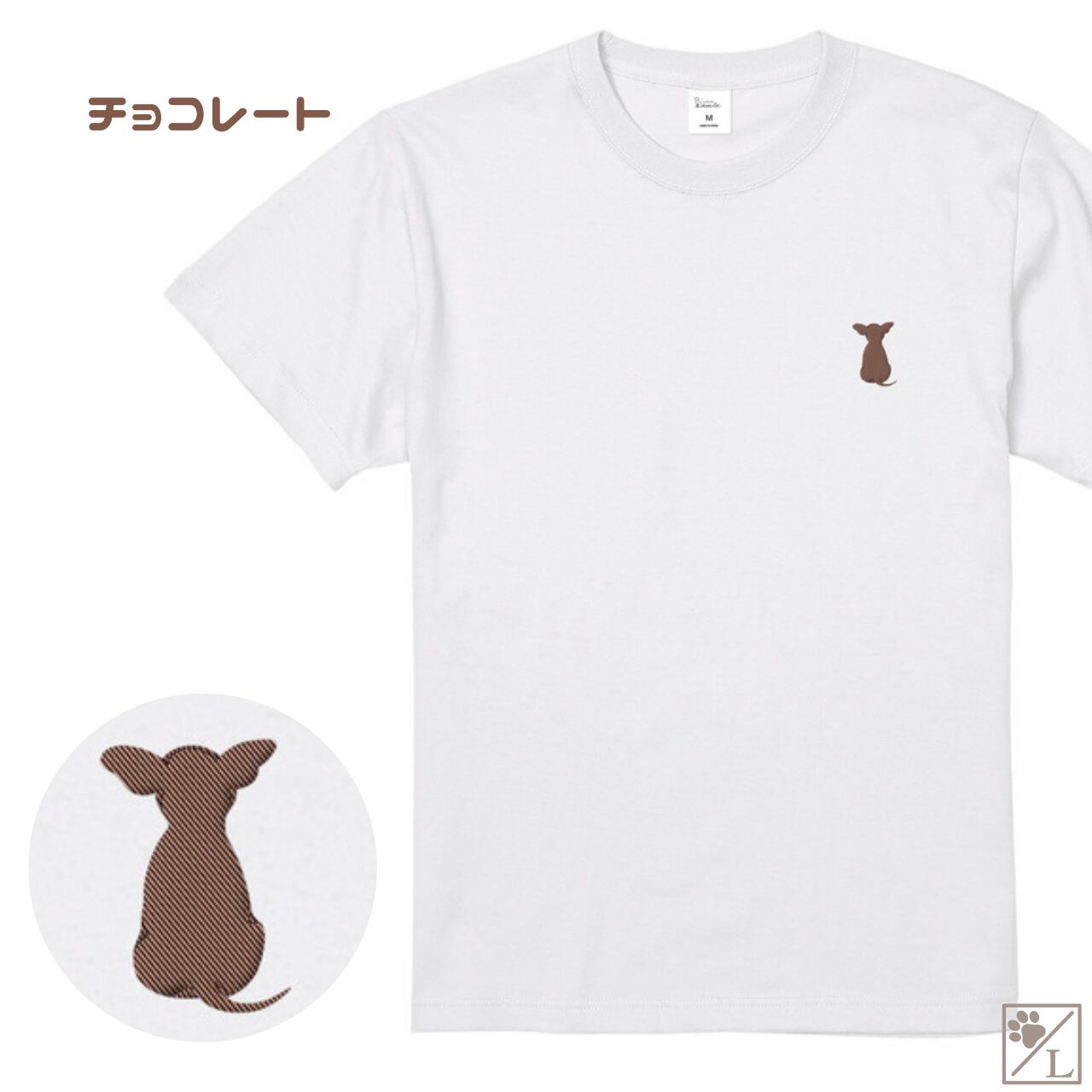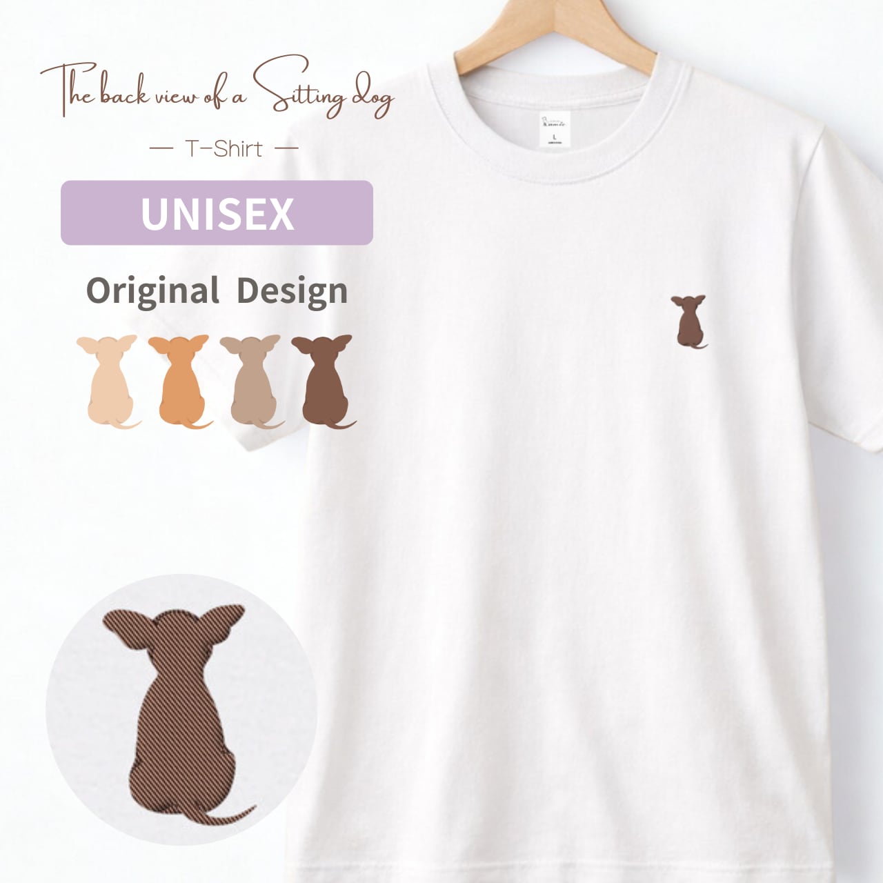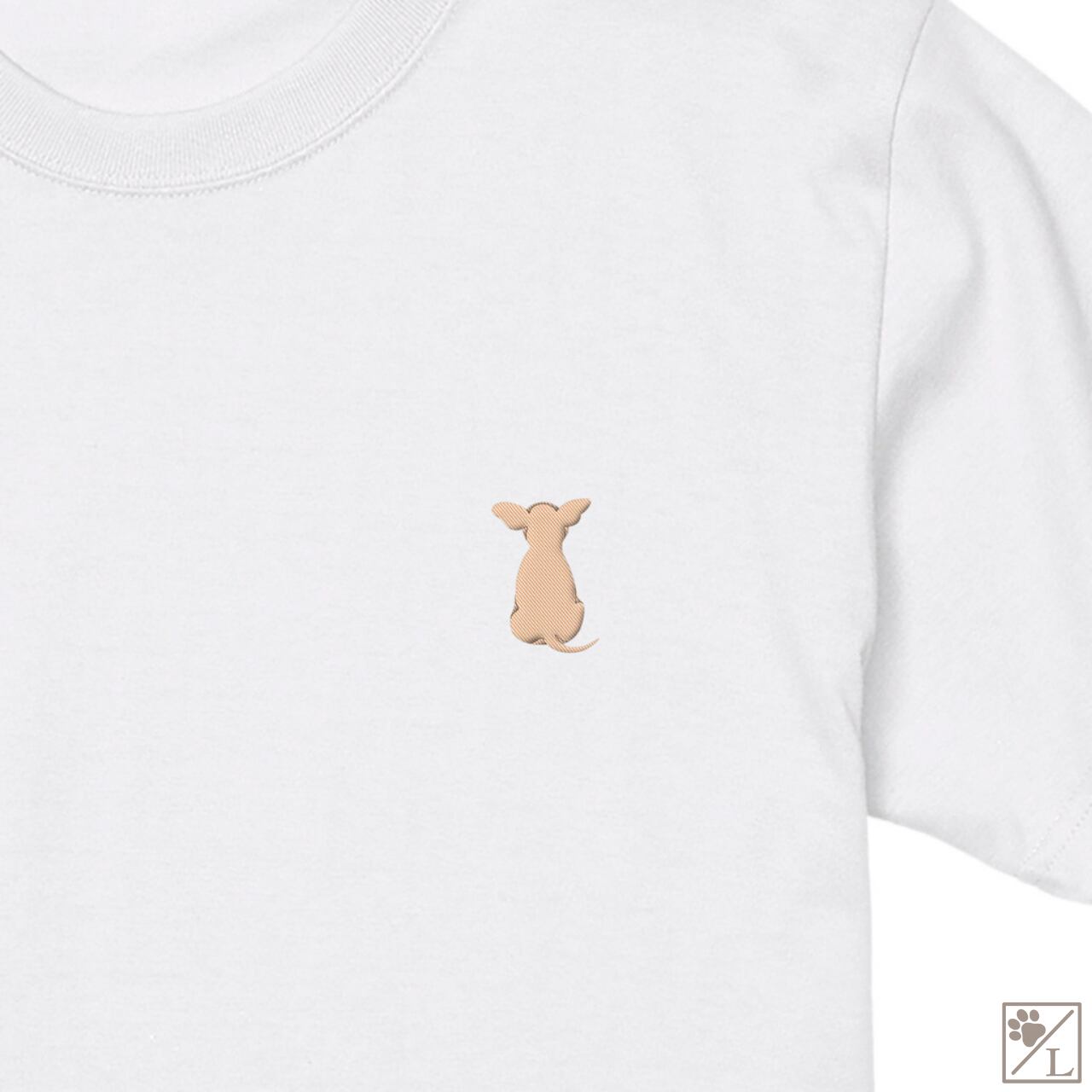 【チワワ / スムース】おすわり犬の後ろ姿 刺繍ワンポイントTシャツ|ユニセックス|オリジナルデザイン
