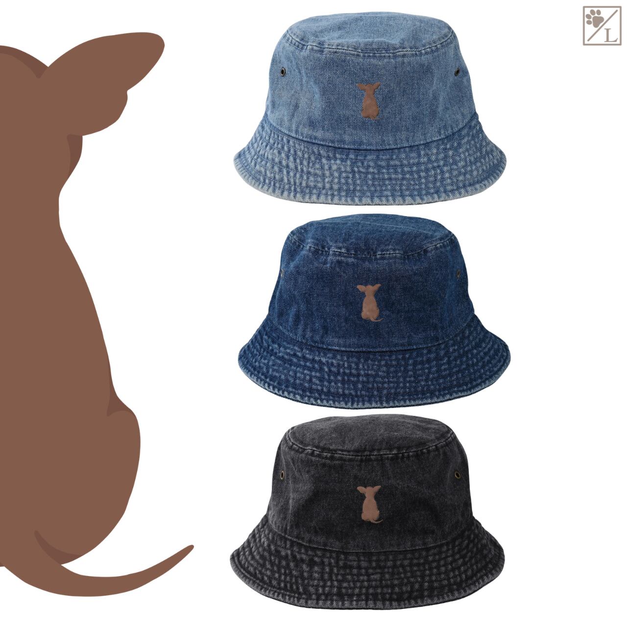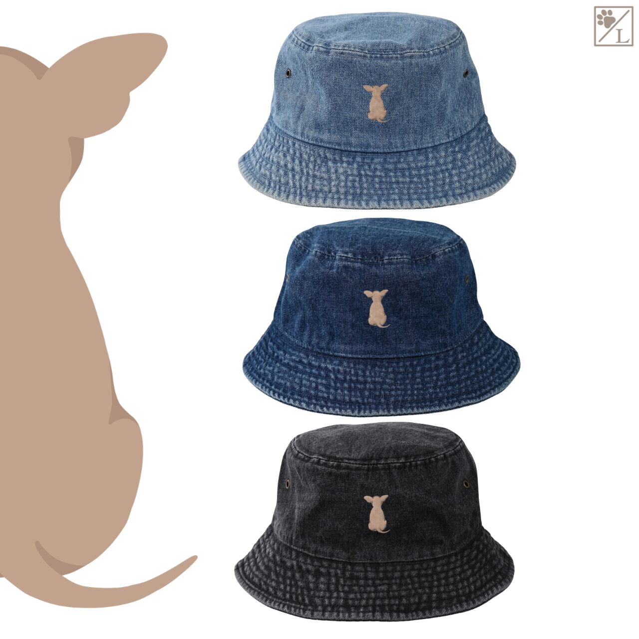 【チワワ / スムース】刺繍 犬の後ろ姿デニムキャップ・バケットハット|選べる3色|愛犬家に人気の帽子