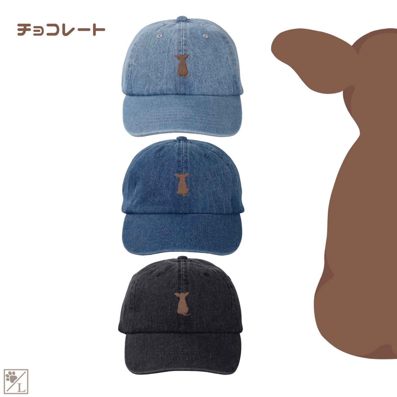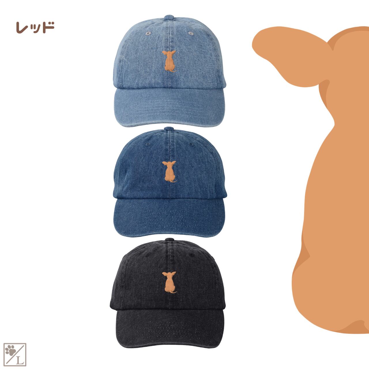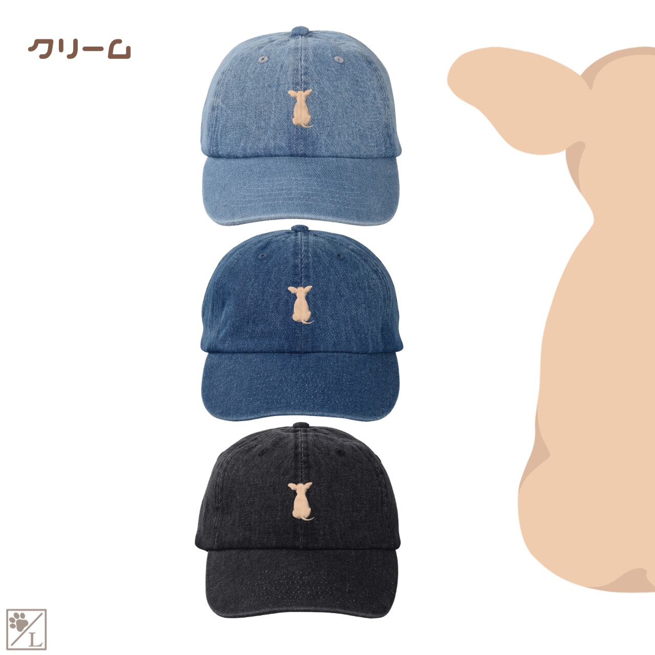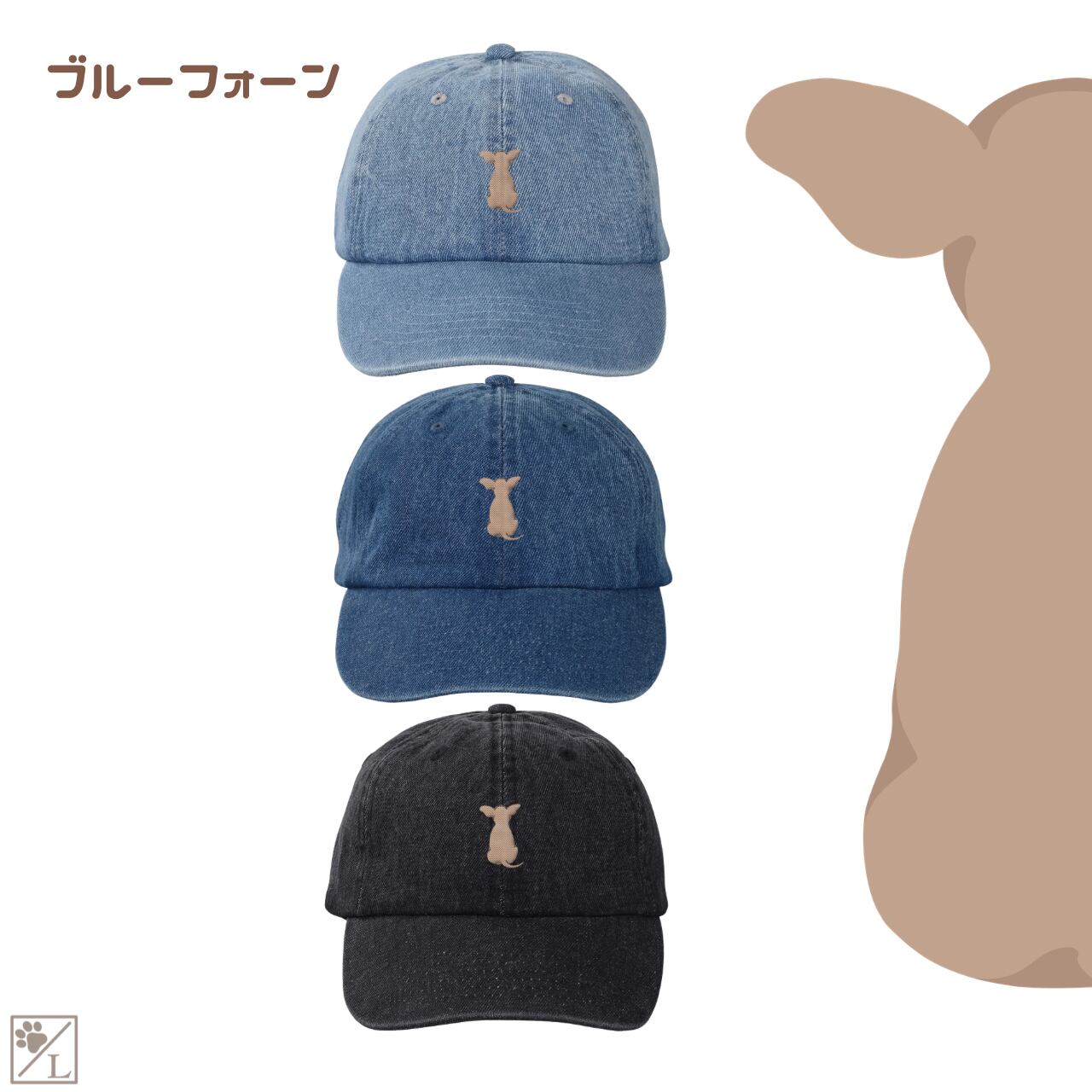 犬のおすわり後ろ姿を刺繍であしらった、シンプルで使いやすいデニムキャップ&ハットです。