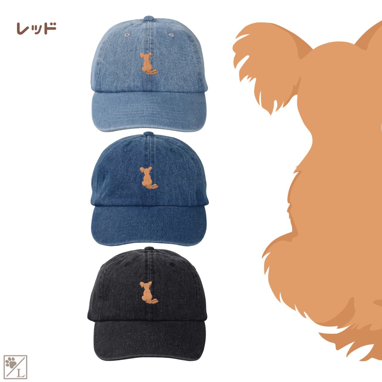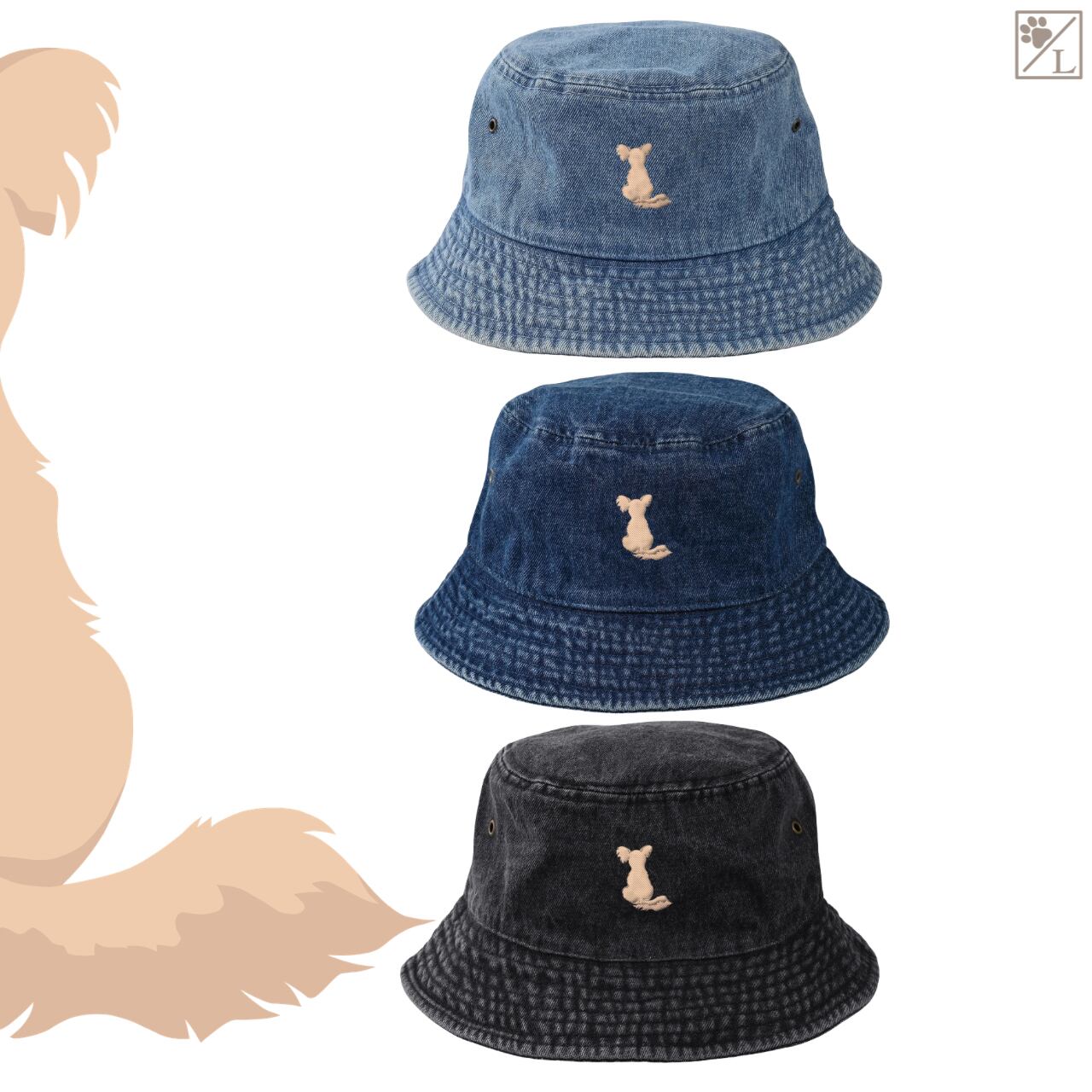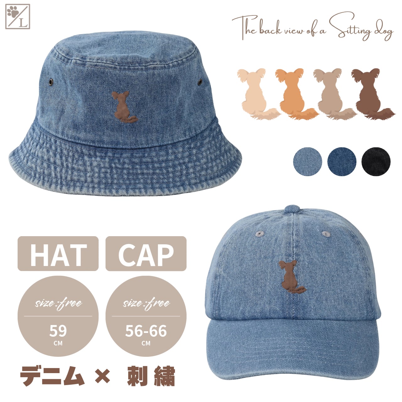 【チワワ / ロング】刺繍 犬の後ろ姿デニムキャップ・バケットハット|選べる3色|愛犬家に人気の帽子