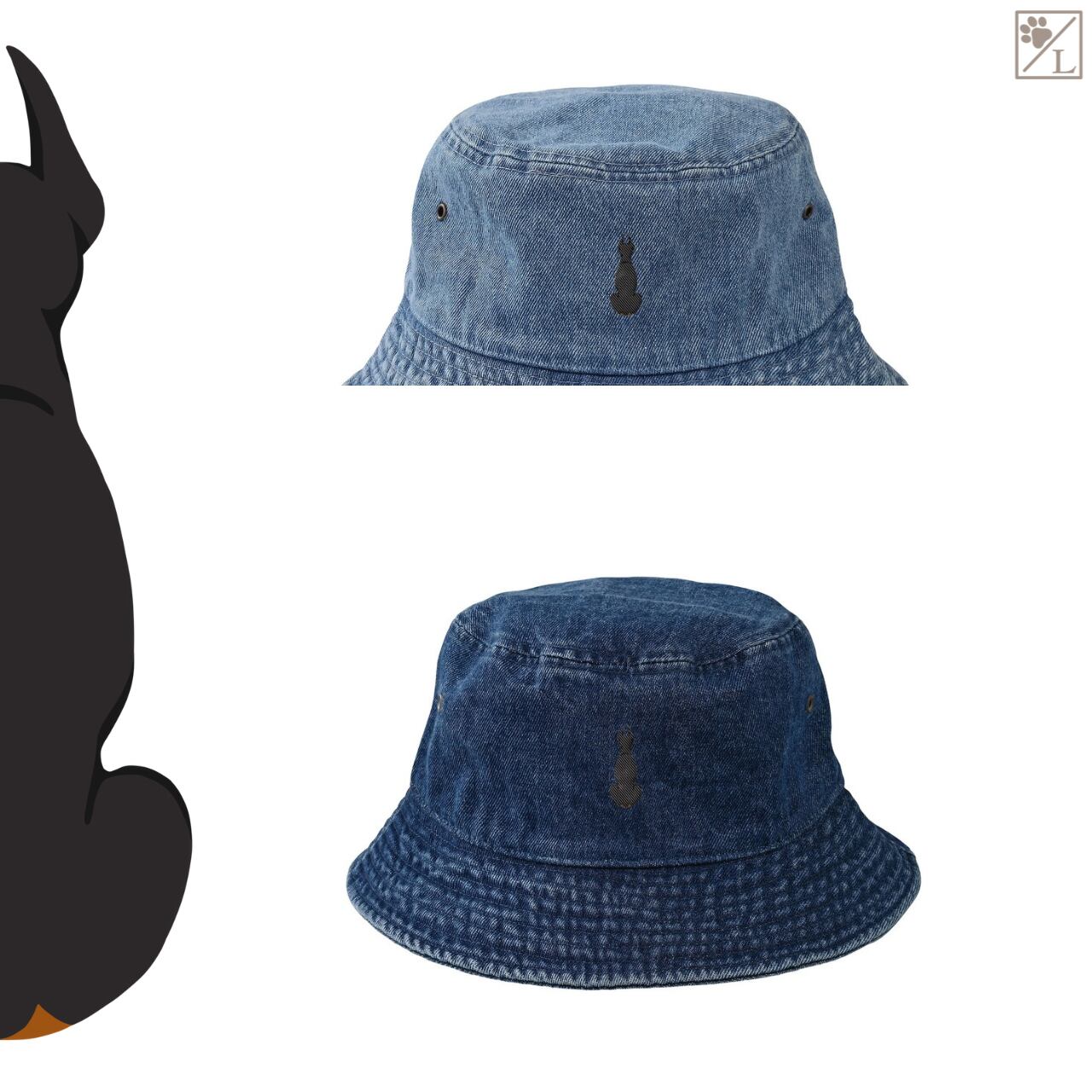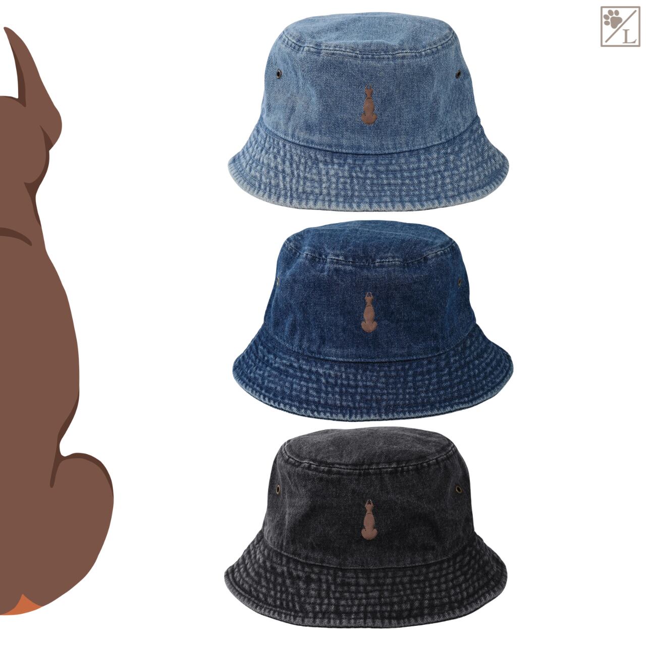 【ドーベルマン / 立ち耳&短い尾】刺繍 犬の後ろ姿デニムキャップ・バケットハット|選べる3色|愛犬家に人気の帽子