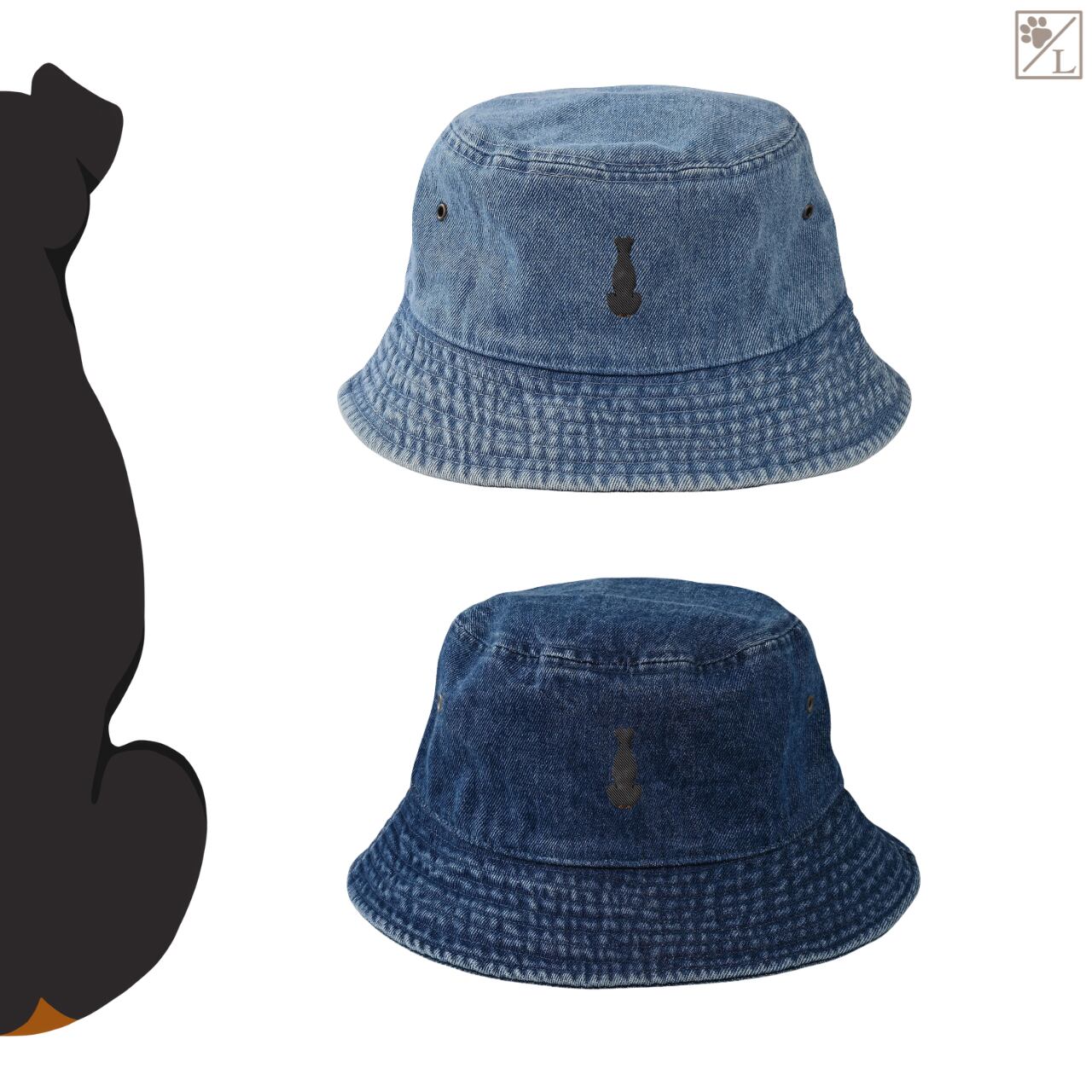 【ドーベルマン / 折れ耳&短い尾】刺繍 犬の後ろ姿デニムキャップ・バケットハット|選べる3色|愛犬家に人気の帽子