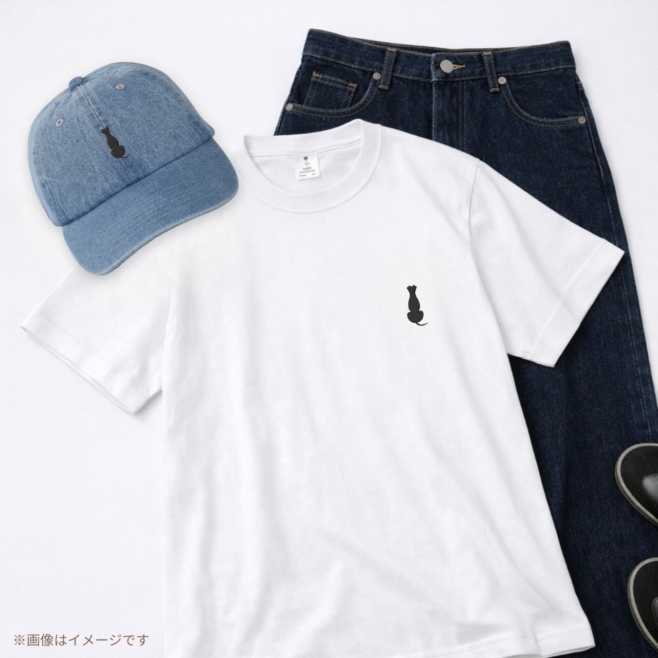 犬のおすわり後ろ姿を刺繍であしらった、シンプルで使いやすいデニムキャップ&ハットです。